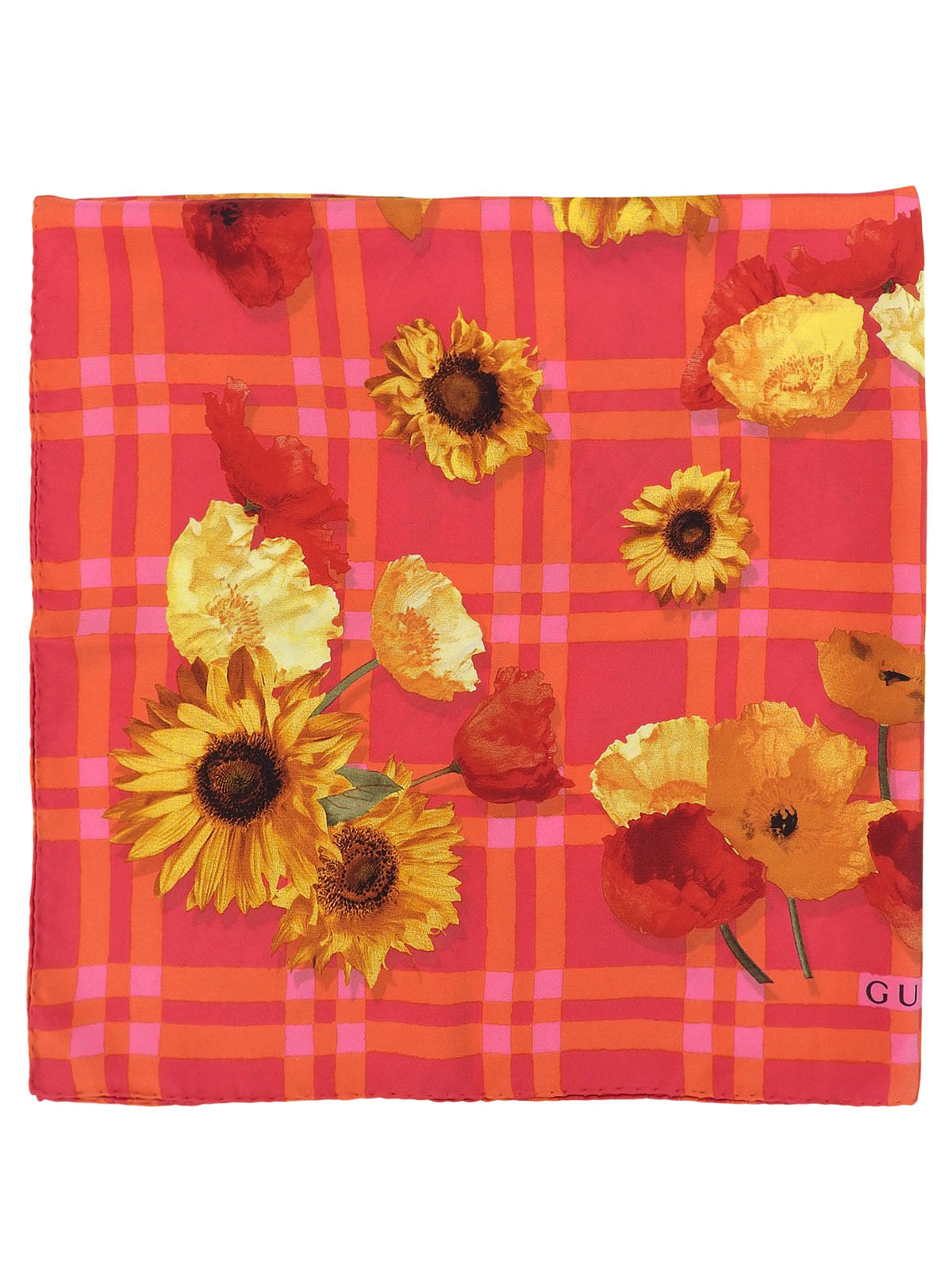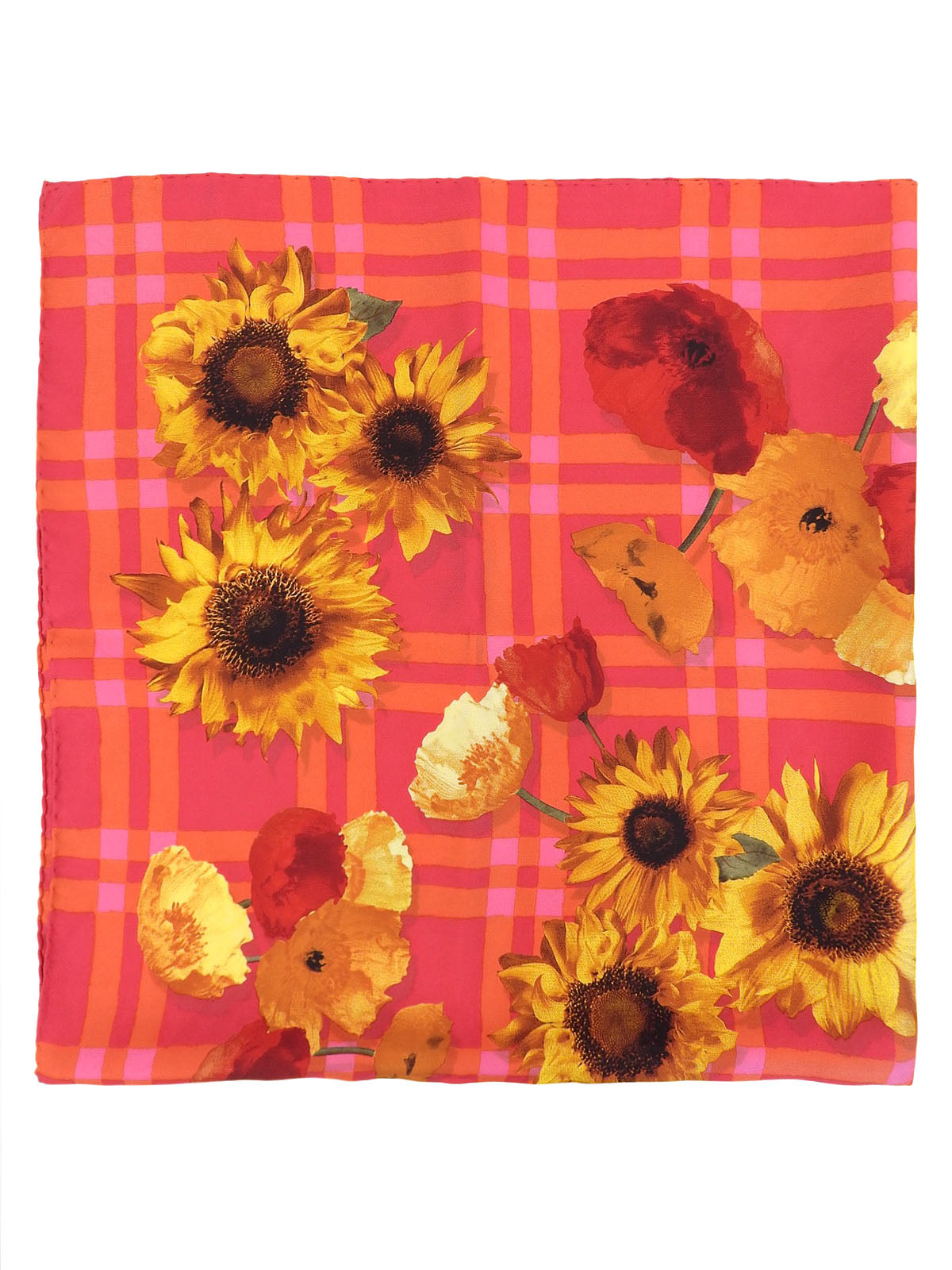 粉色/橙色/多色花朵格纹围巾