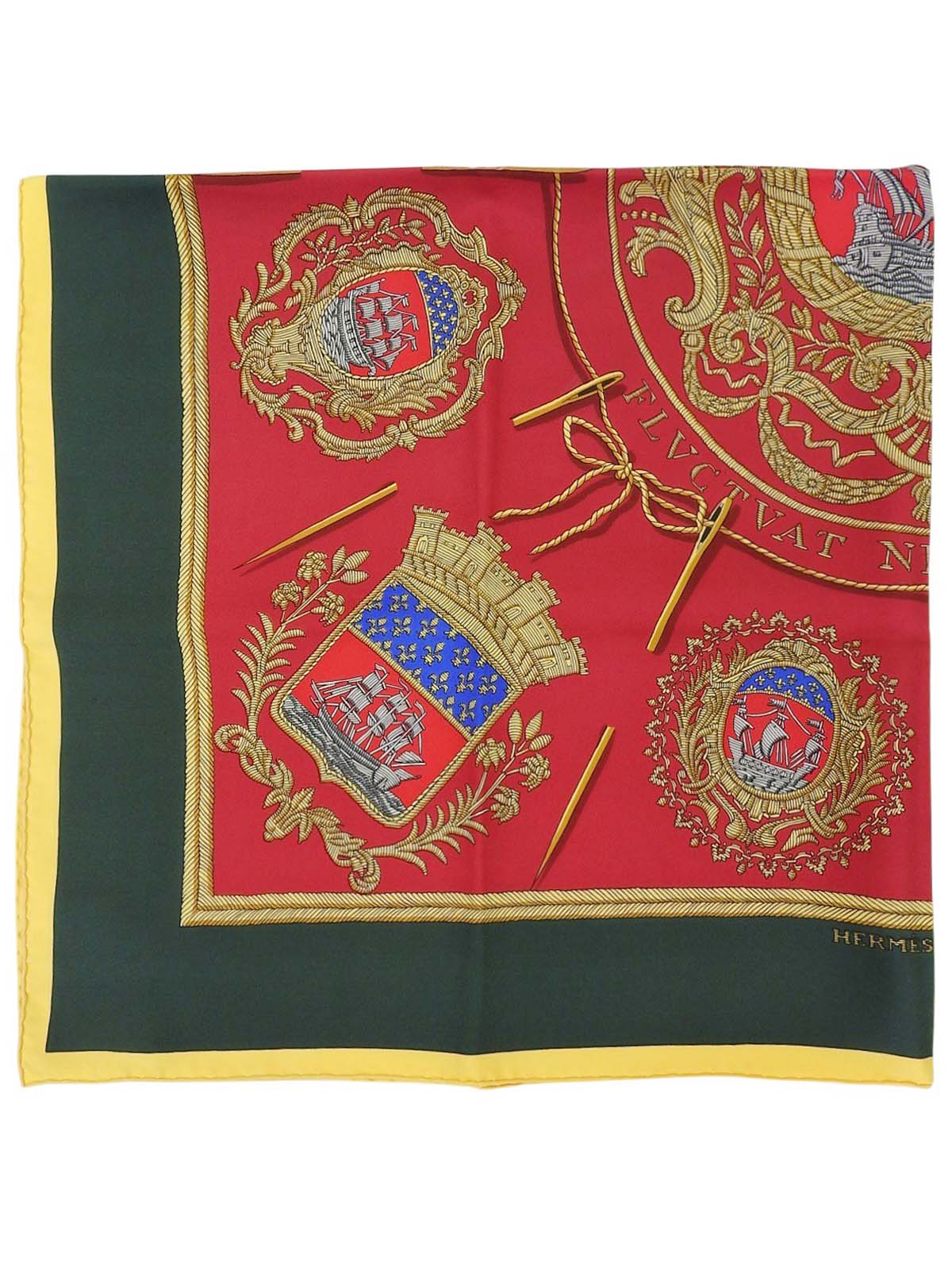 Carré 90 Les Armes de Paris 图案围巾红/绿/黄
