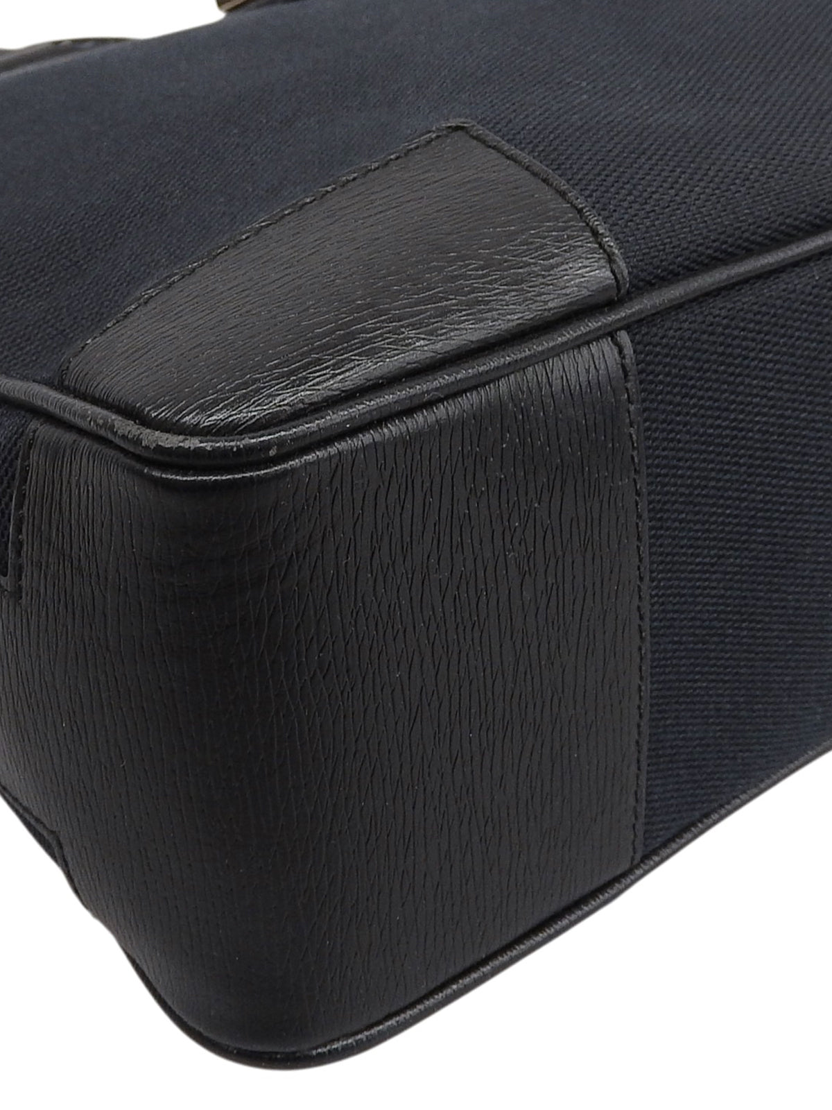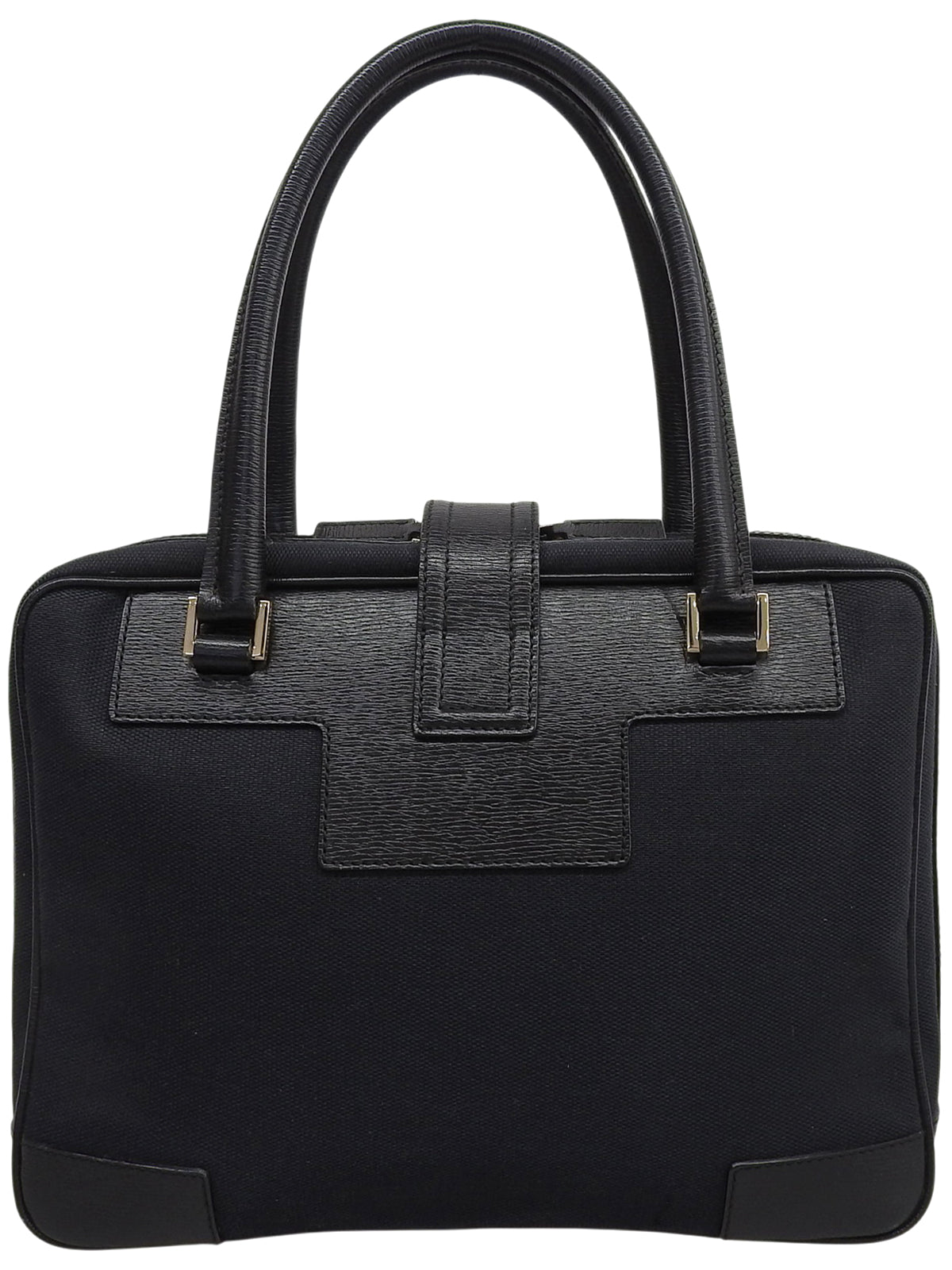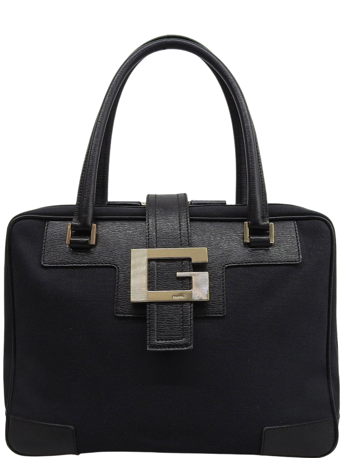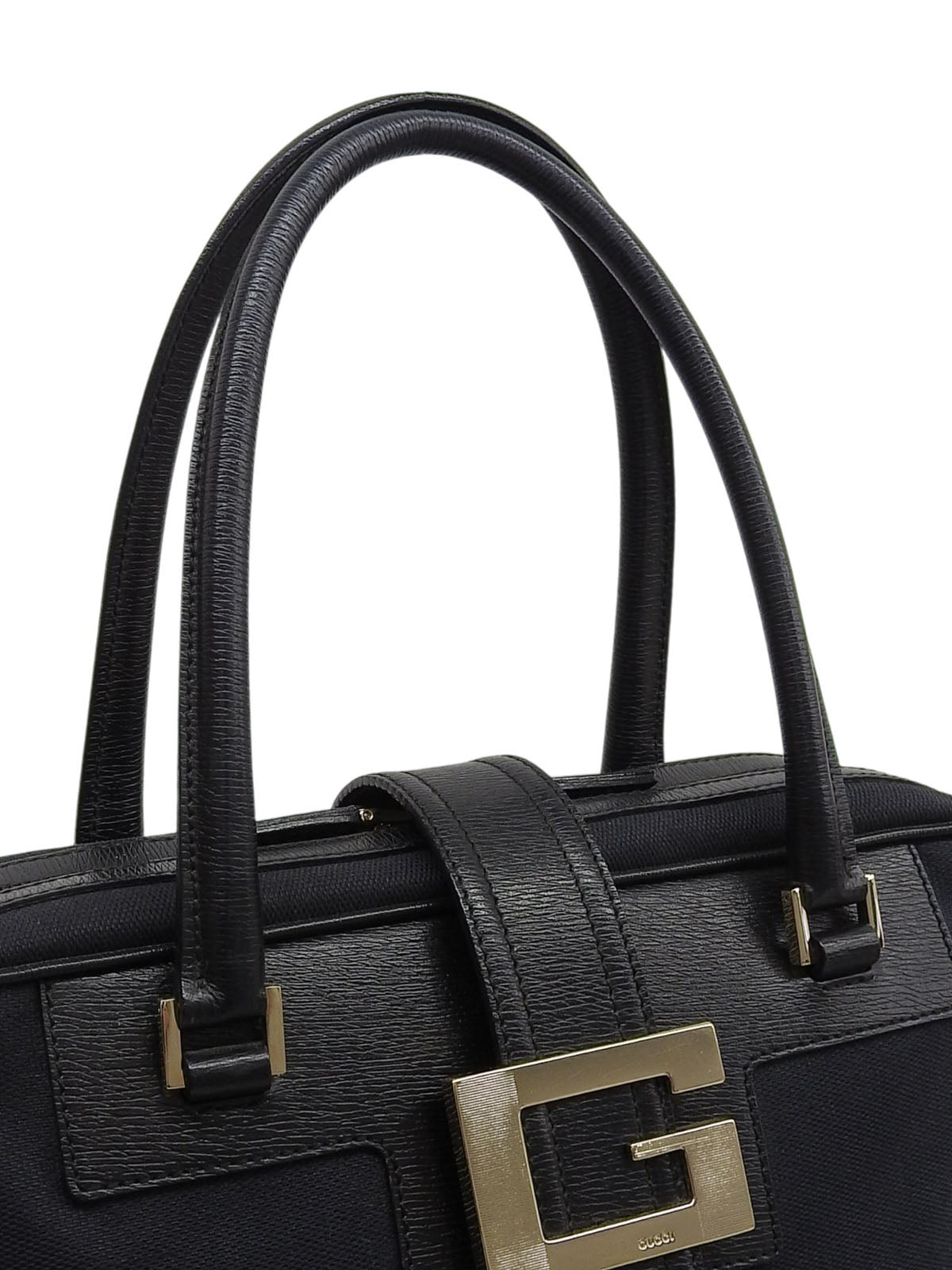 黑色帆布和皮革拼接 G 标志铭牌手提包