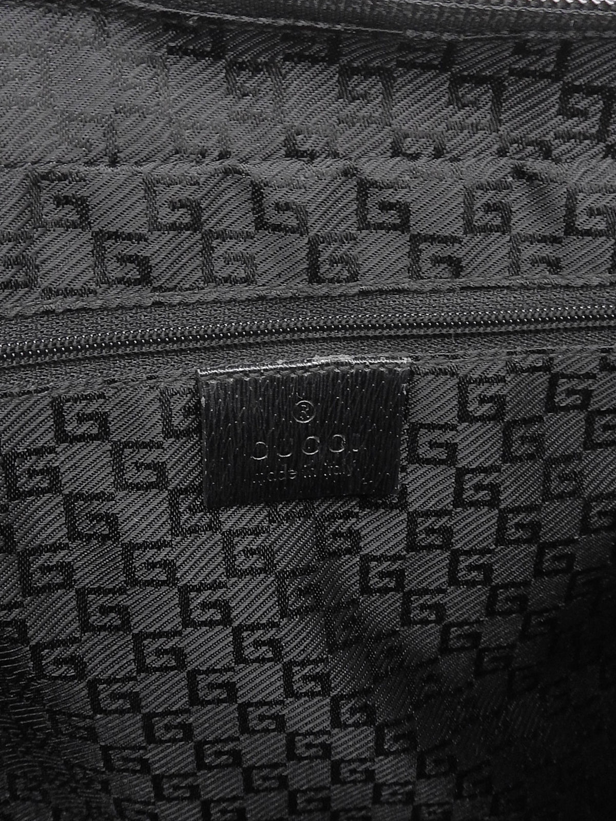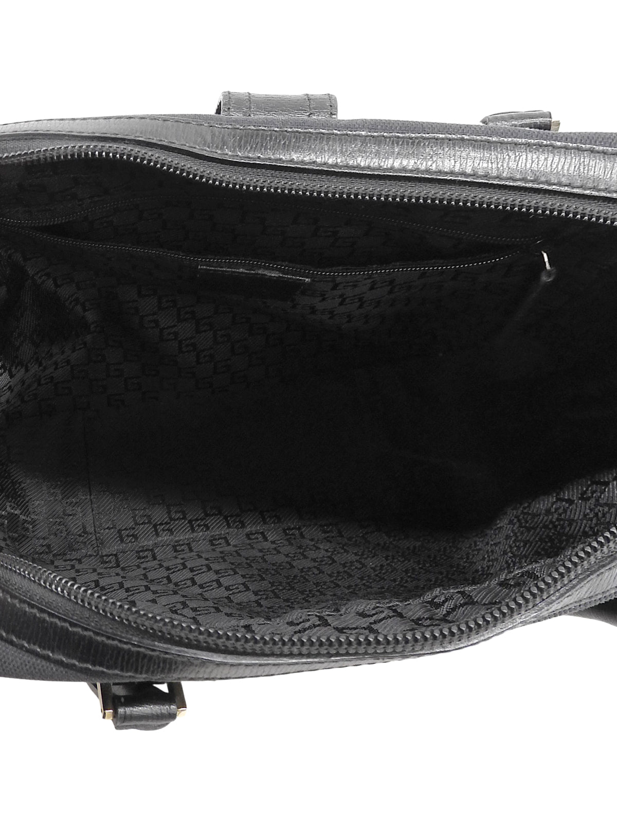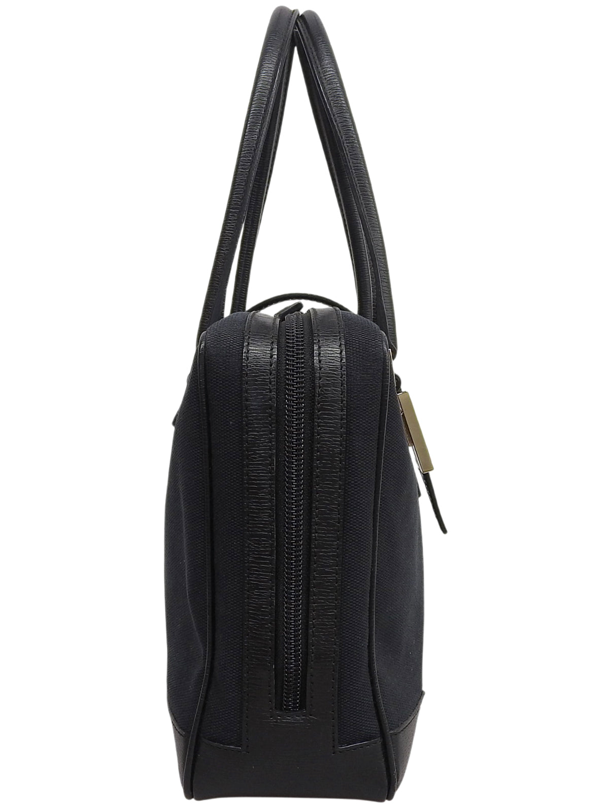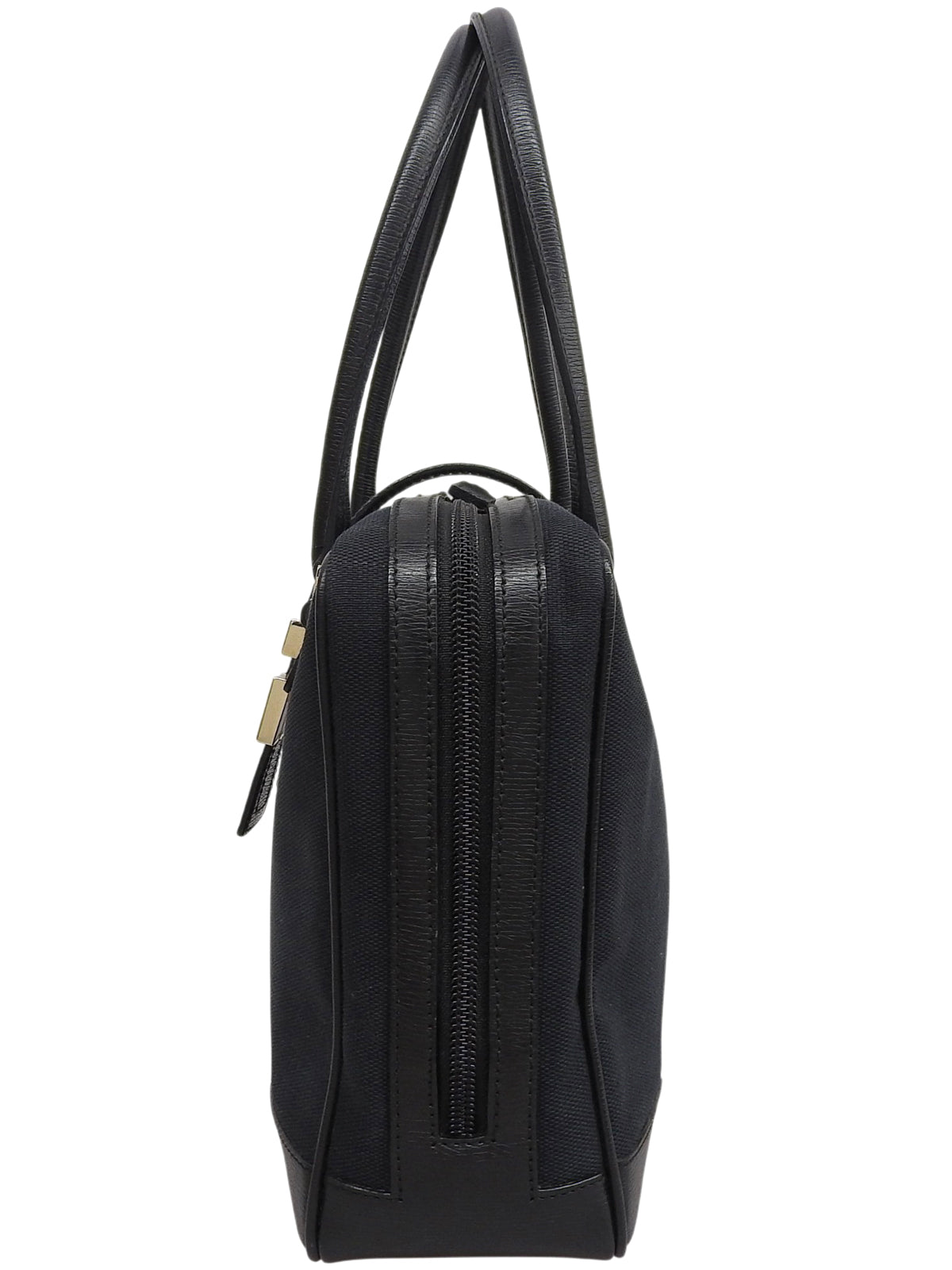 黑色帆布和皮革拼接 G 标志铭牌手提包