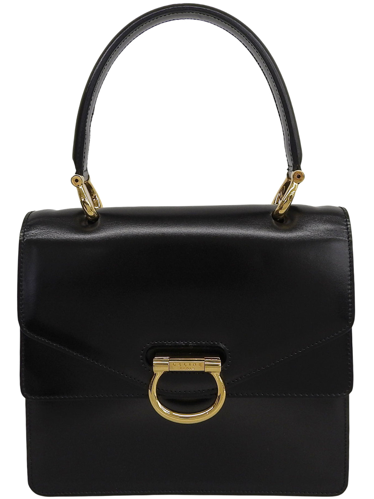 黑色Logo铭牌双盖手提包