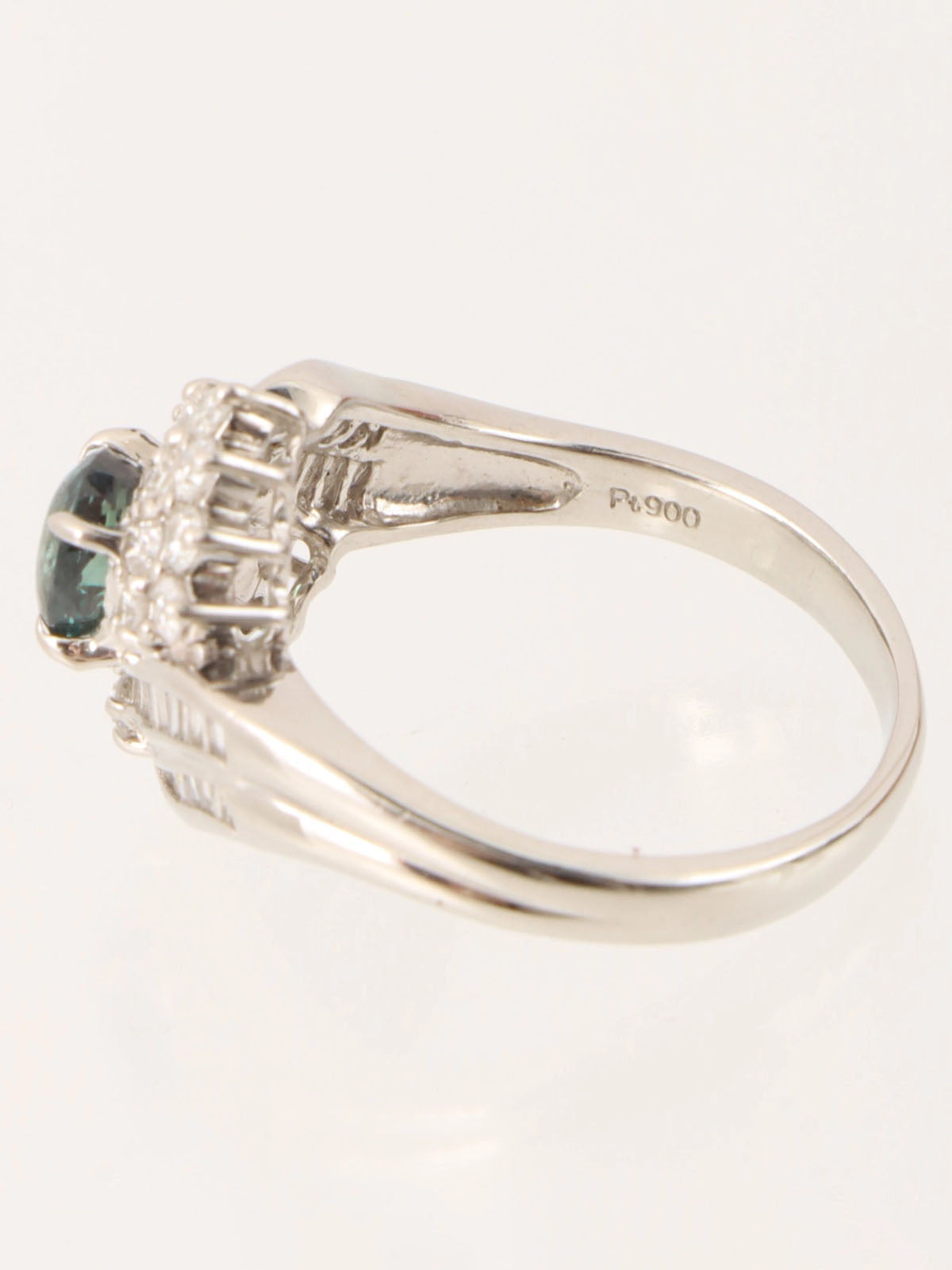 铂金紫翠玉钻石设计图案戒指 蓝色/银色