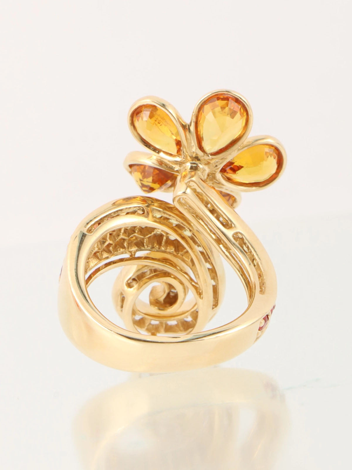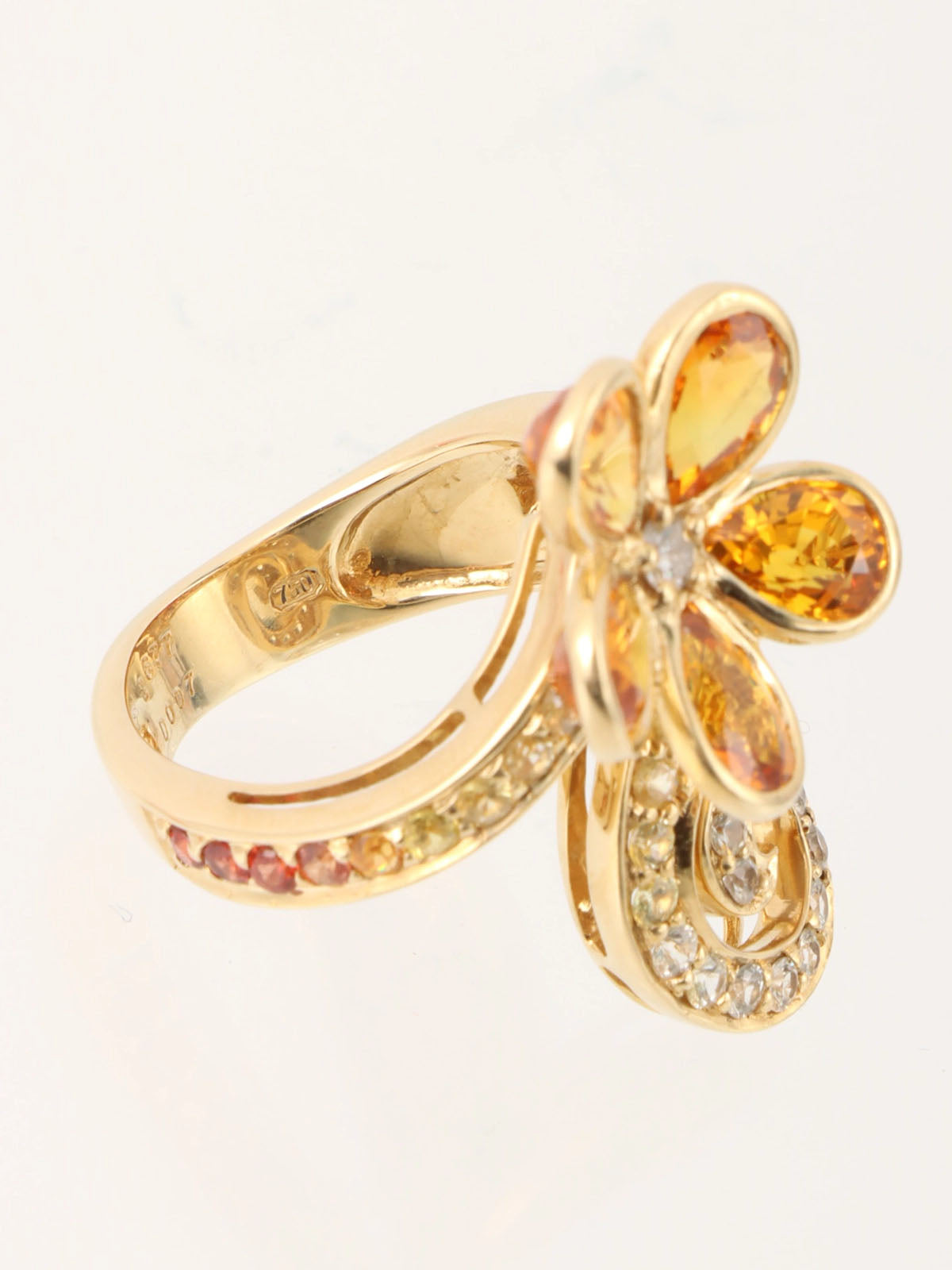 18K 蓝宝石和钻石花朵图案戒指(橙色/金色)