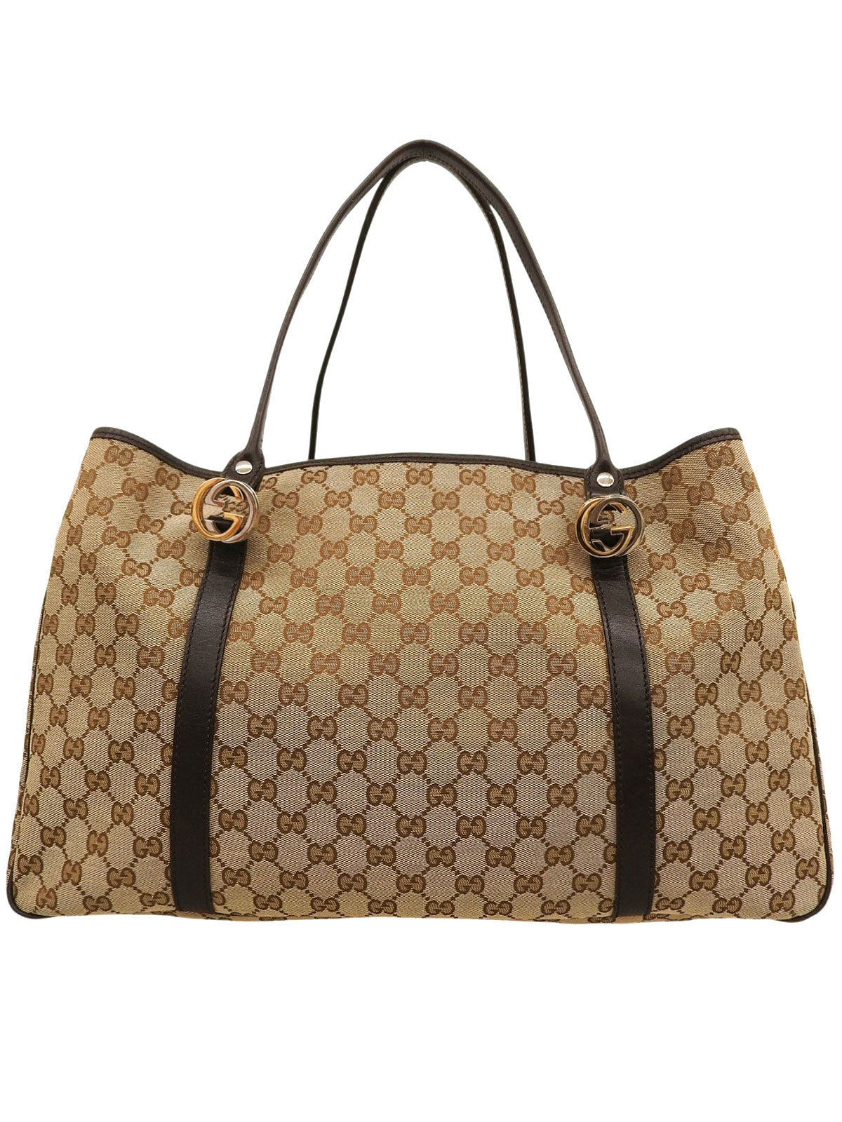 米色帆布 GG 互扣图案手提包