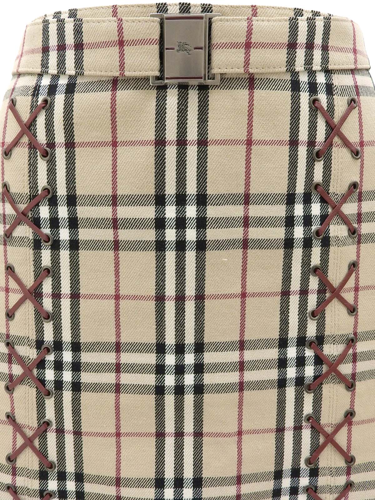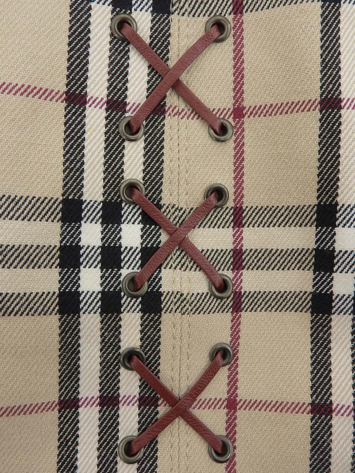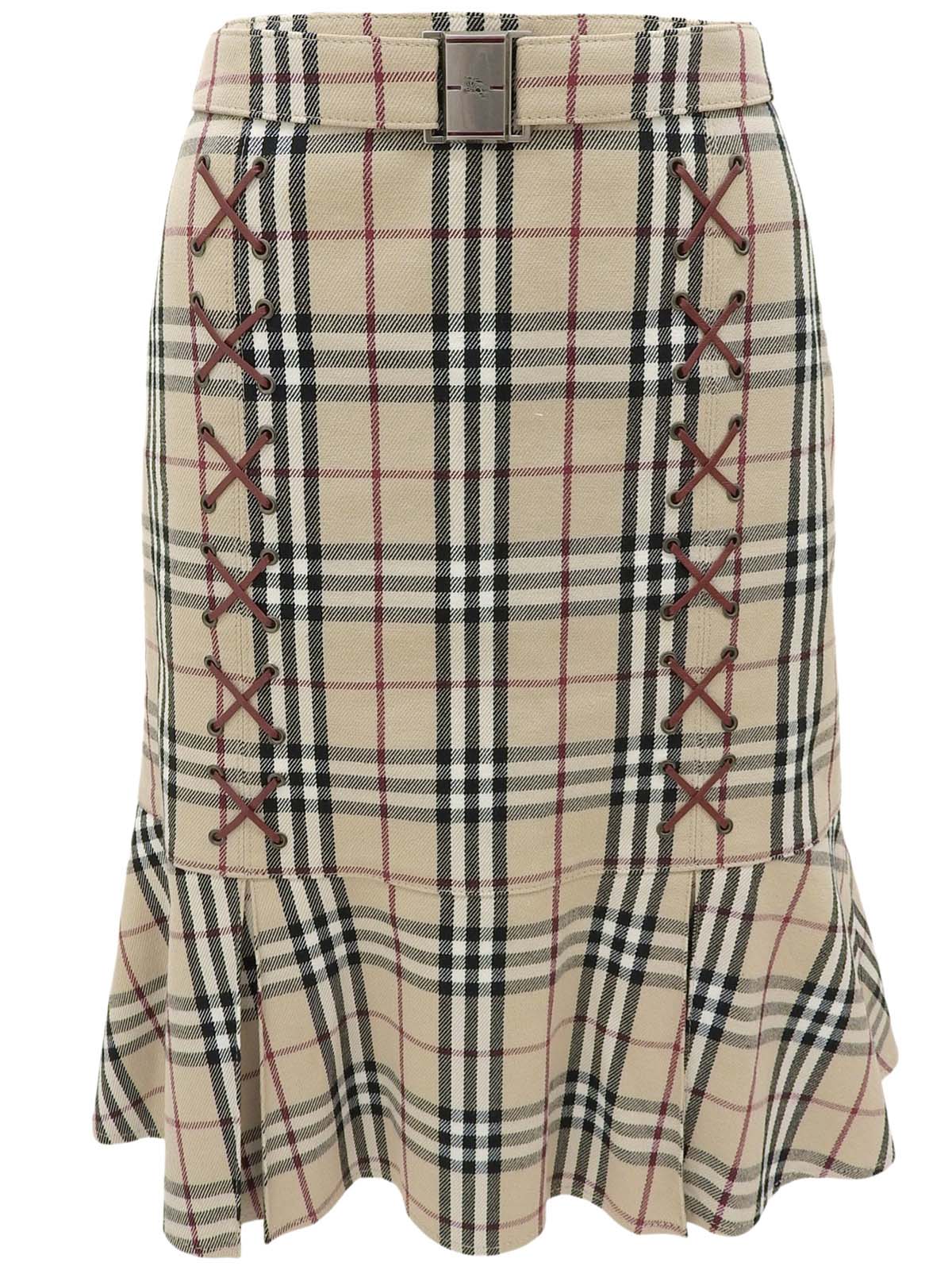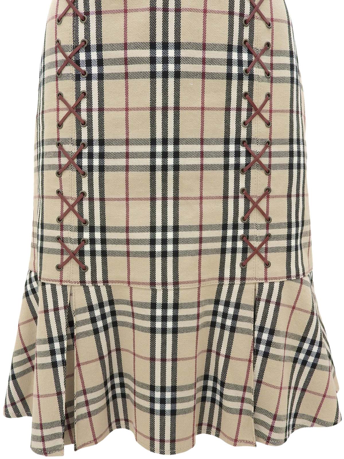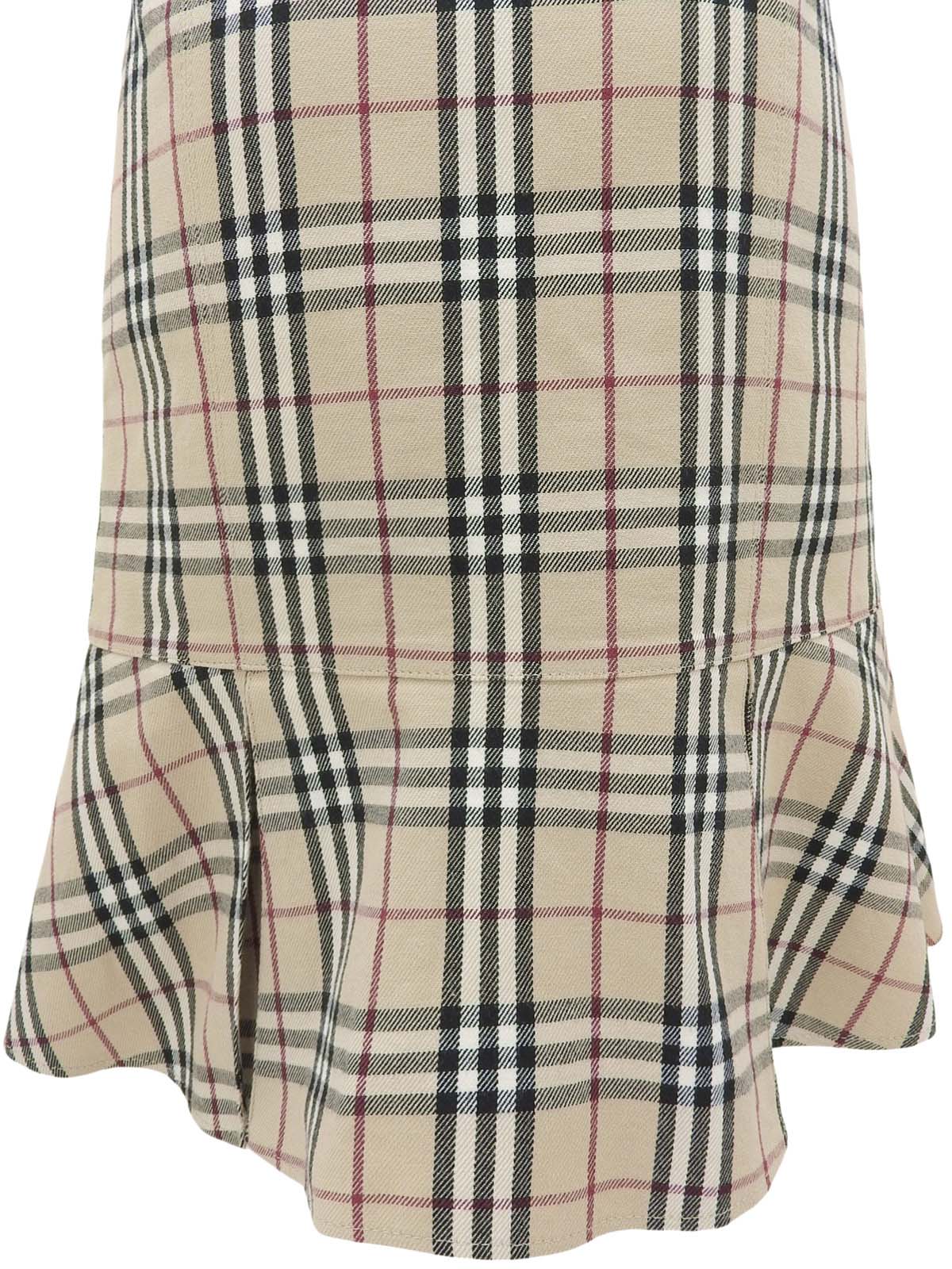 米色格纹喇叭裙