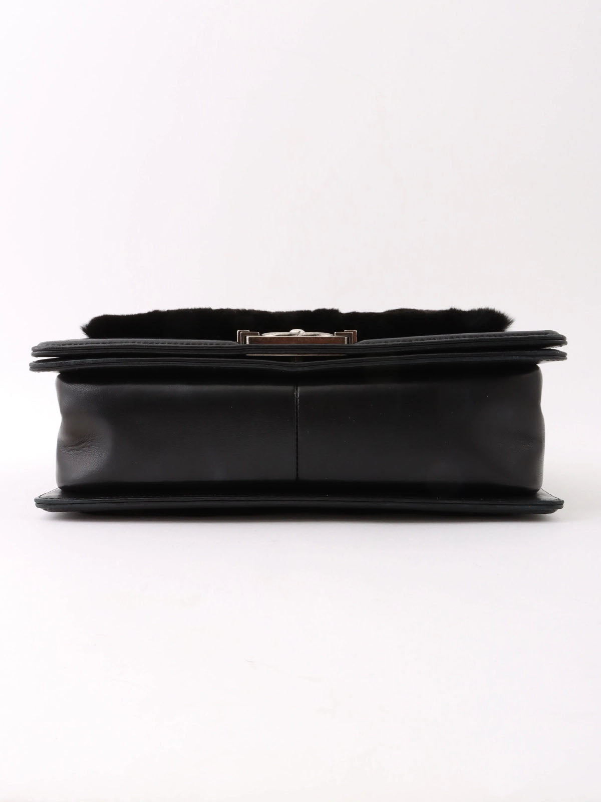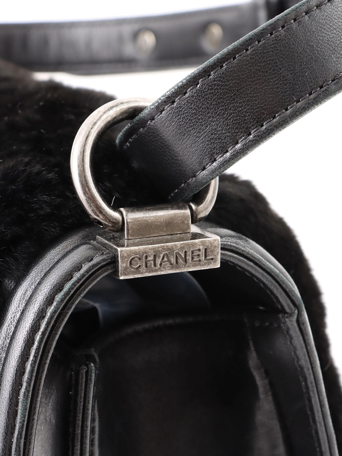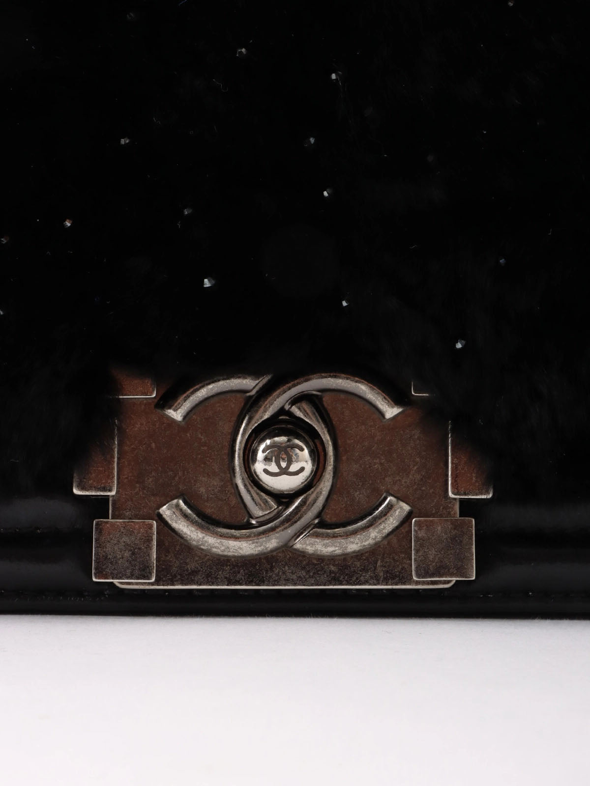 2015 水钻皮毛皮革组合男孩 Chanel 链条单肩包黑色