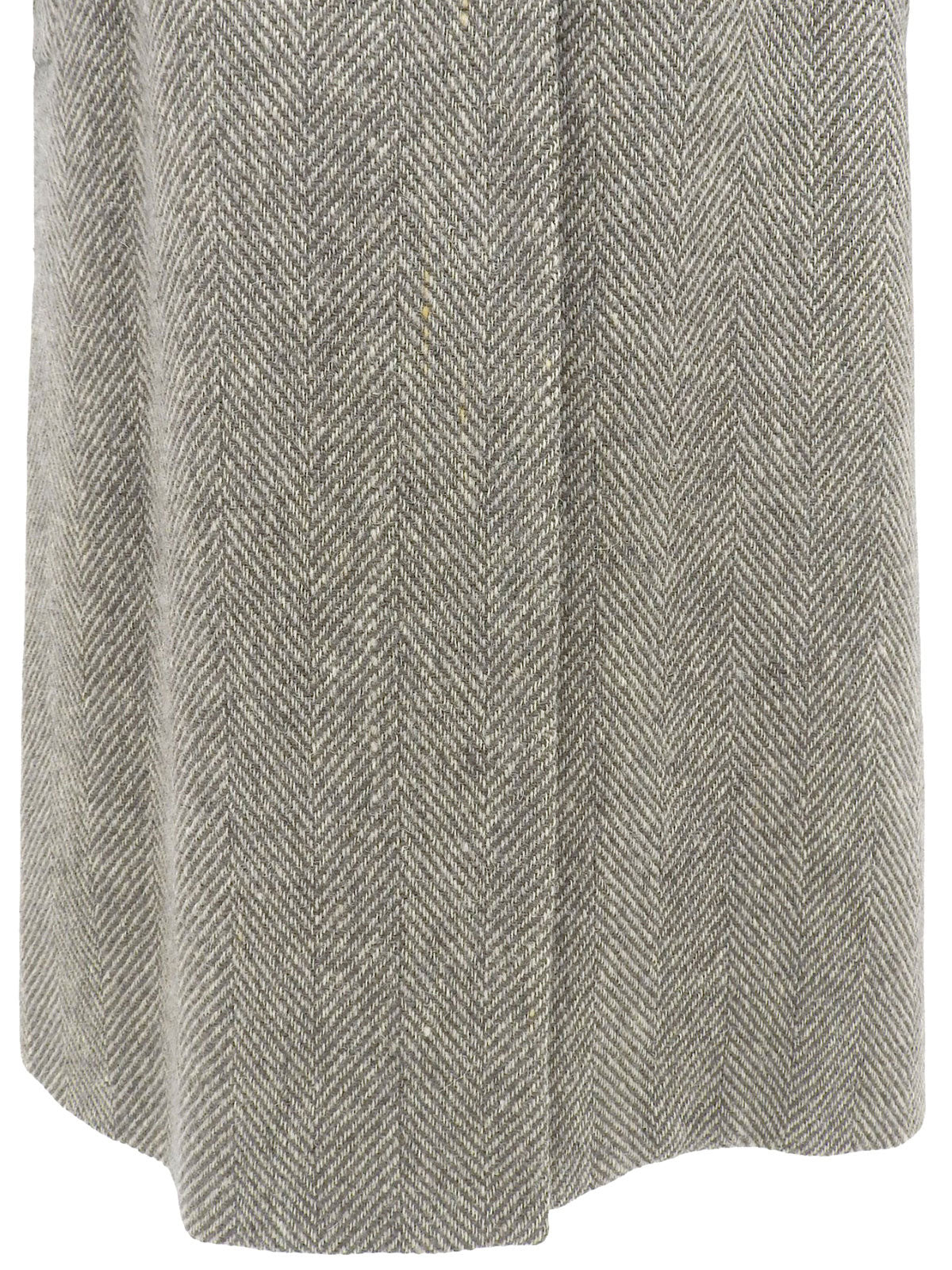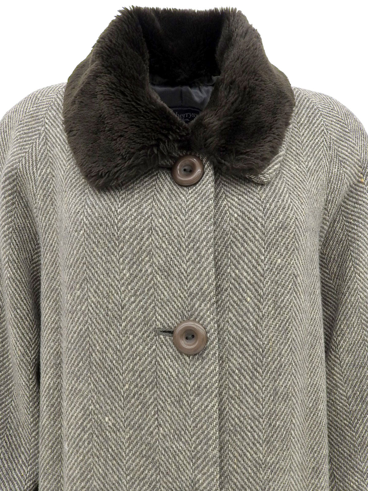 人字纹毛领长外套 灰色/象牙色