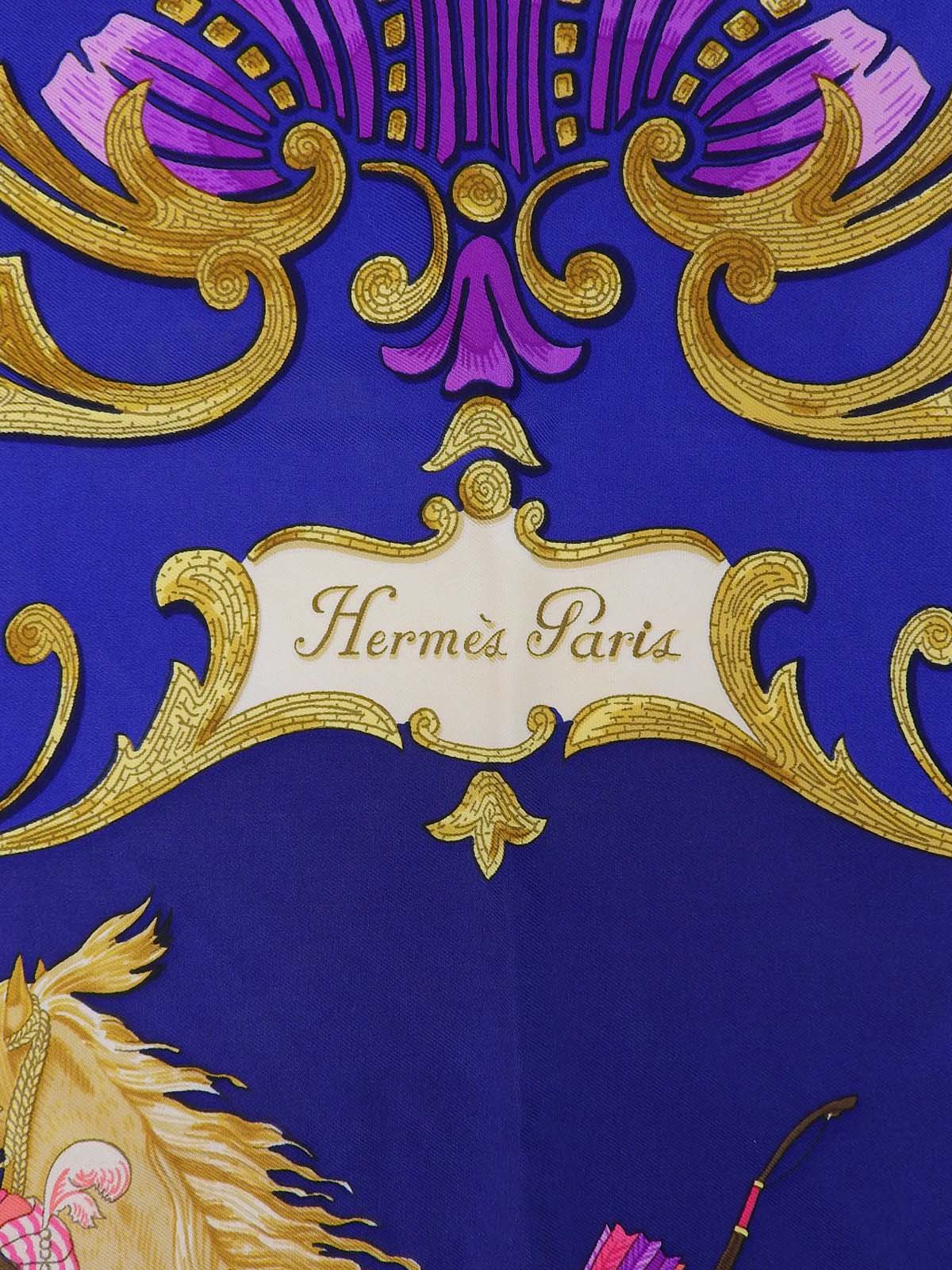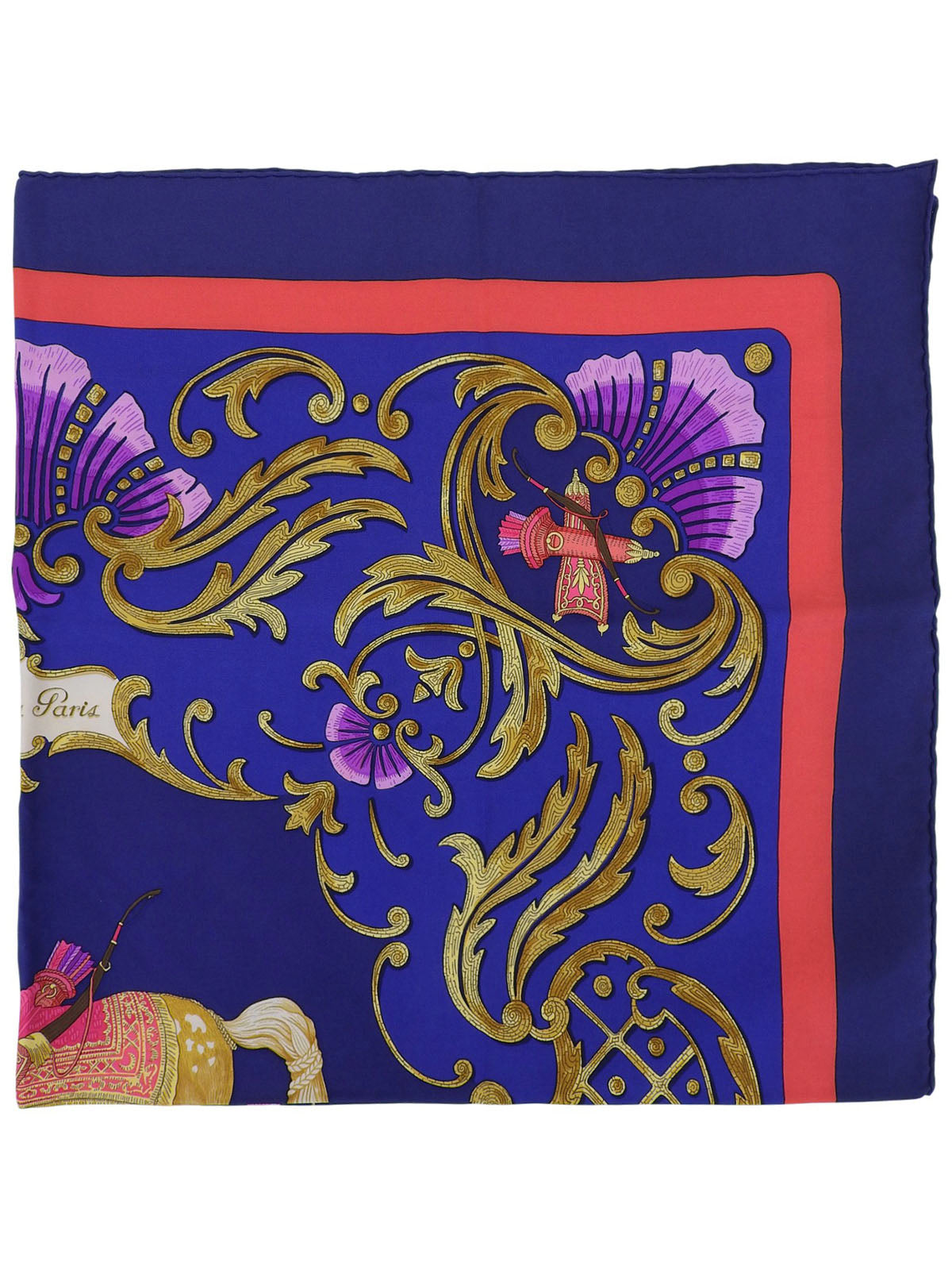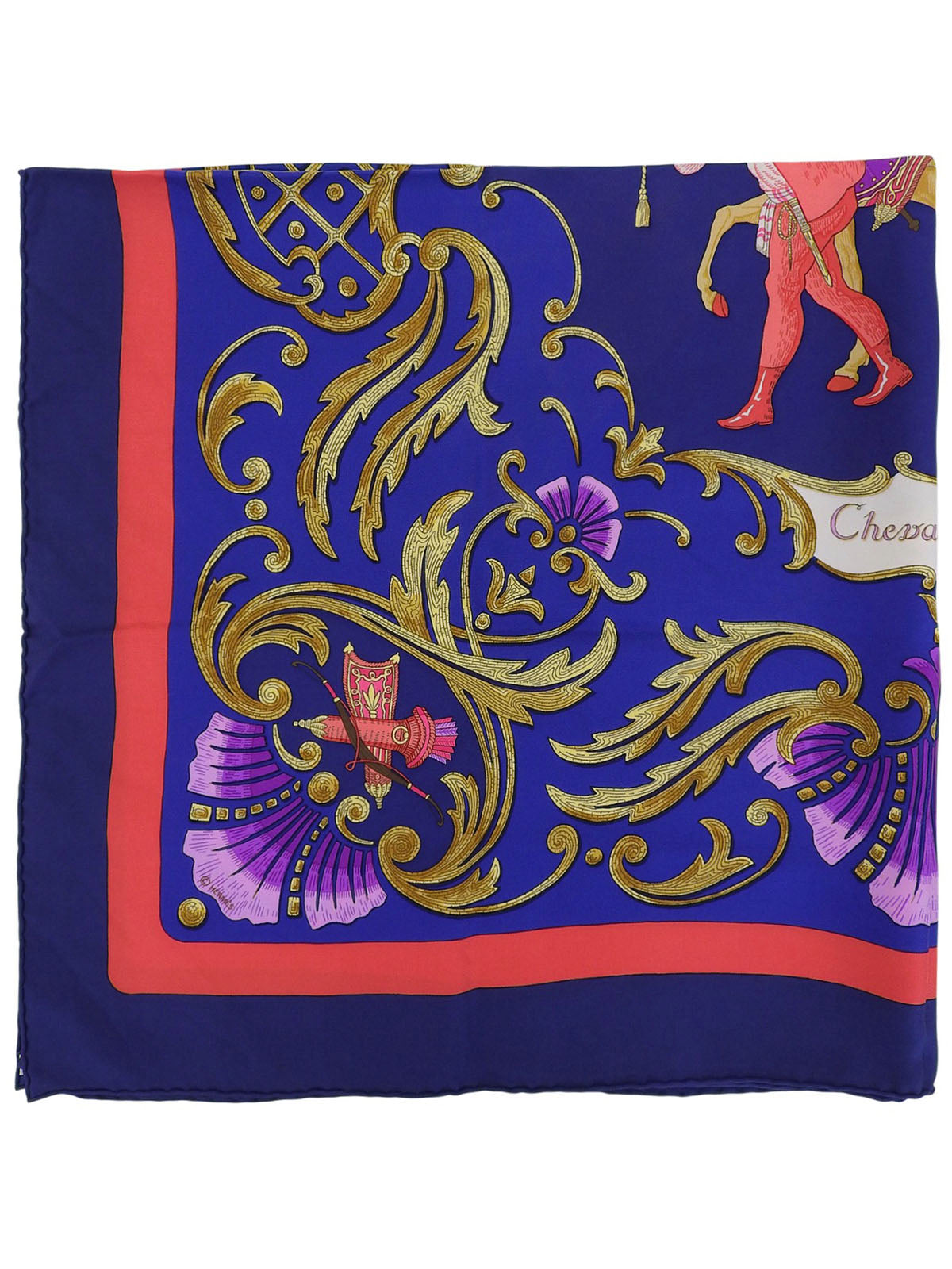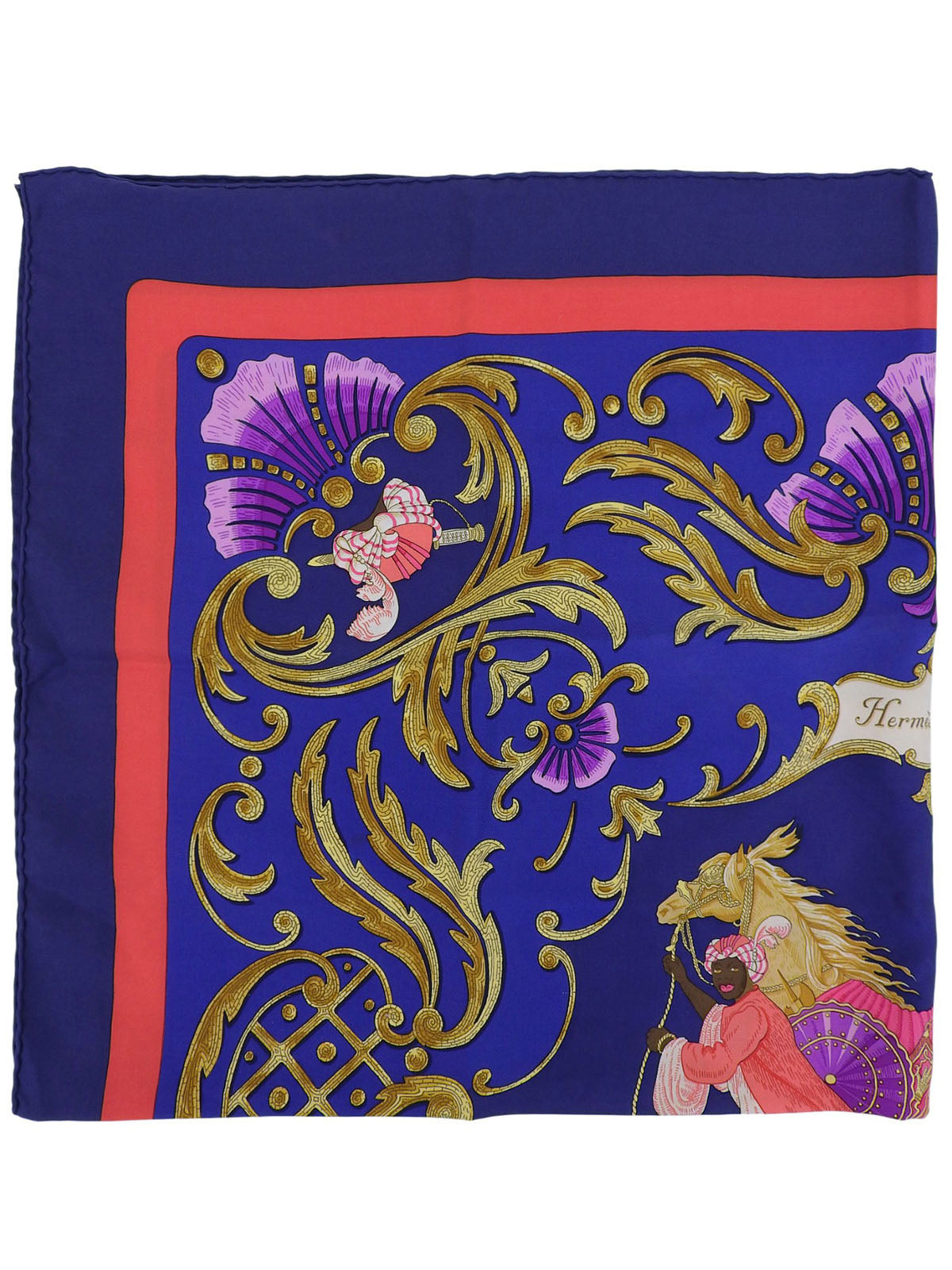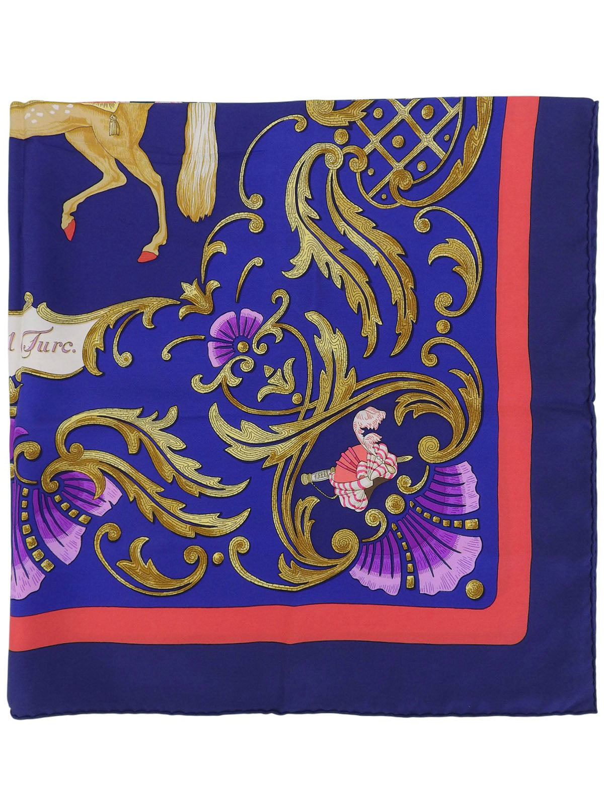 Carré 90 Cheval Turk 图案围巾,海军蓝/多色