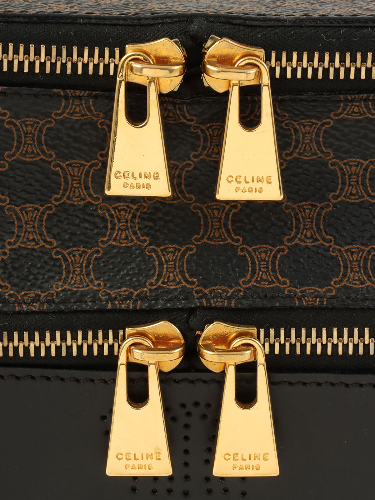Macadam图案Logo缝线化妆包 棕色/黑色