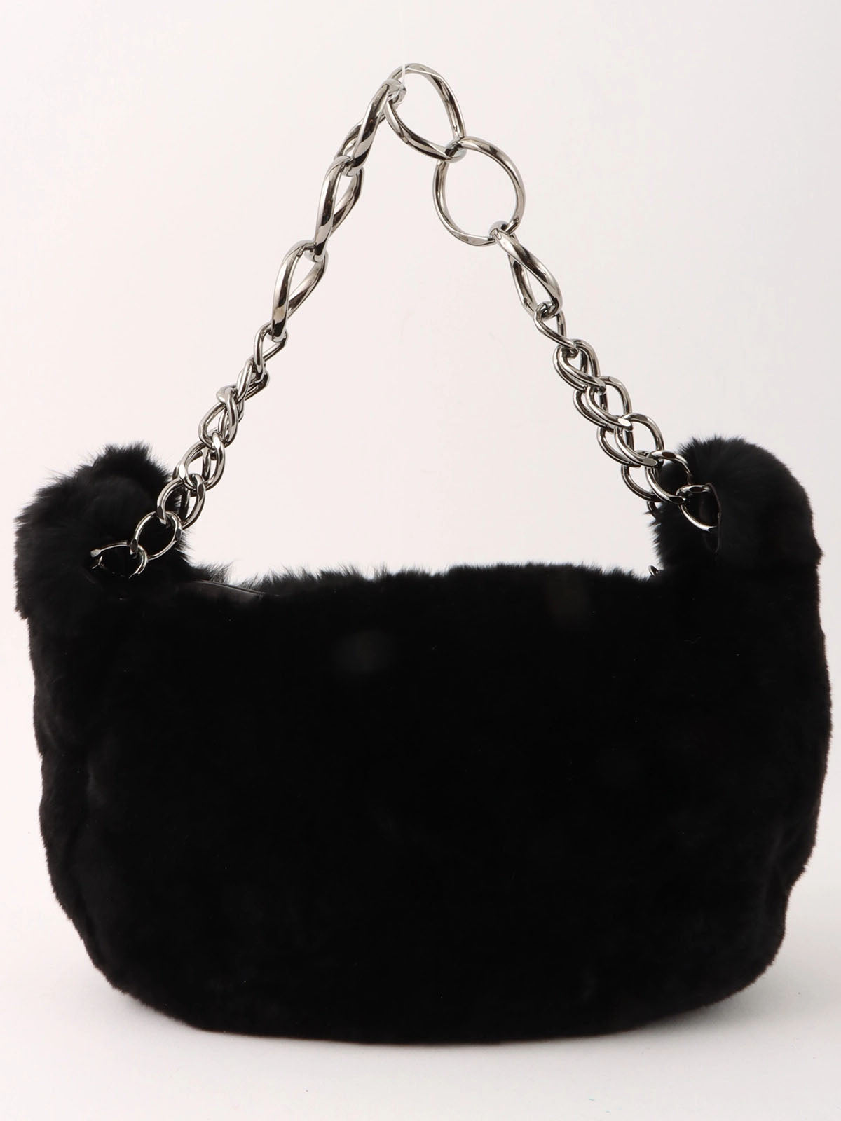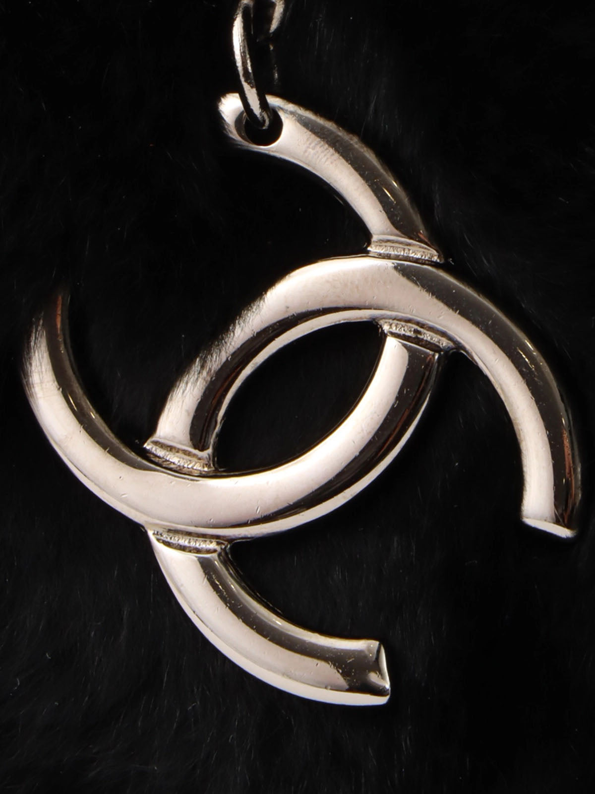 2001 Lapin 毛皮 CC 标志吊饰链条手提包 黑色