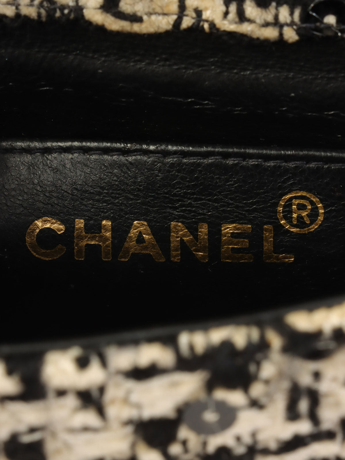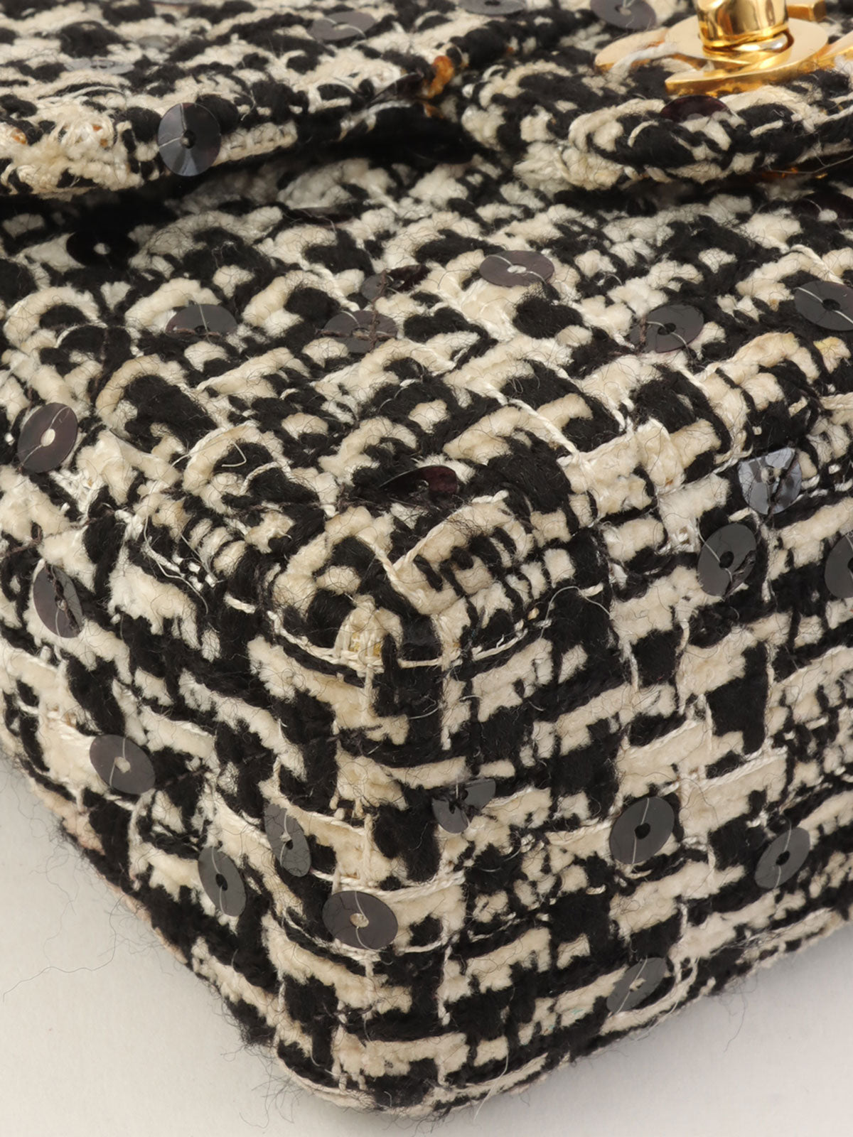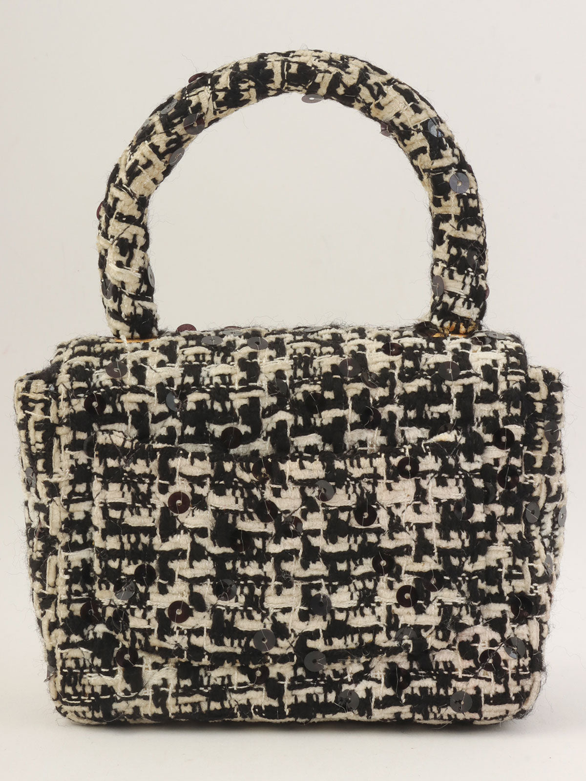 1992 年黑色/白色斜纹软呢亮片 CC 旋扣迷你手提包