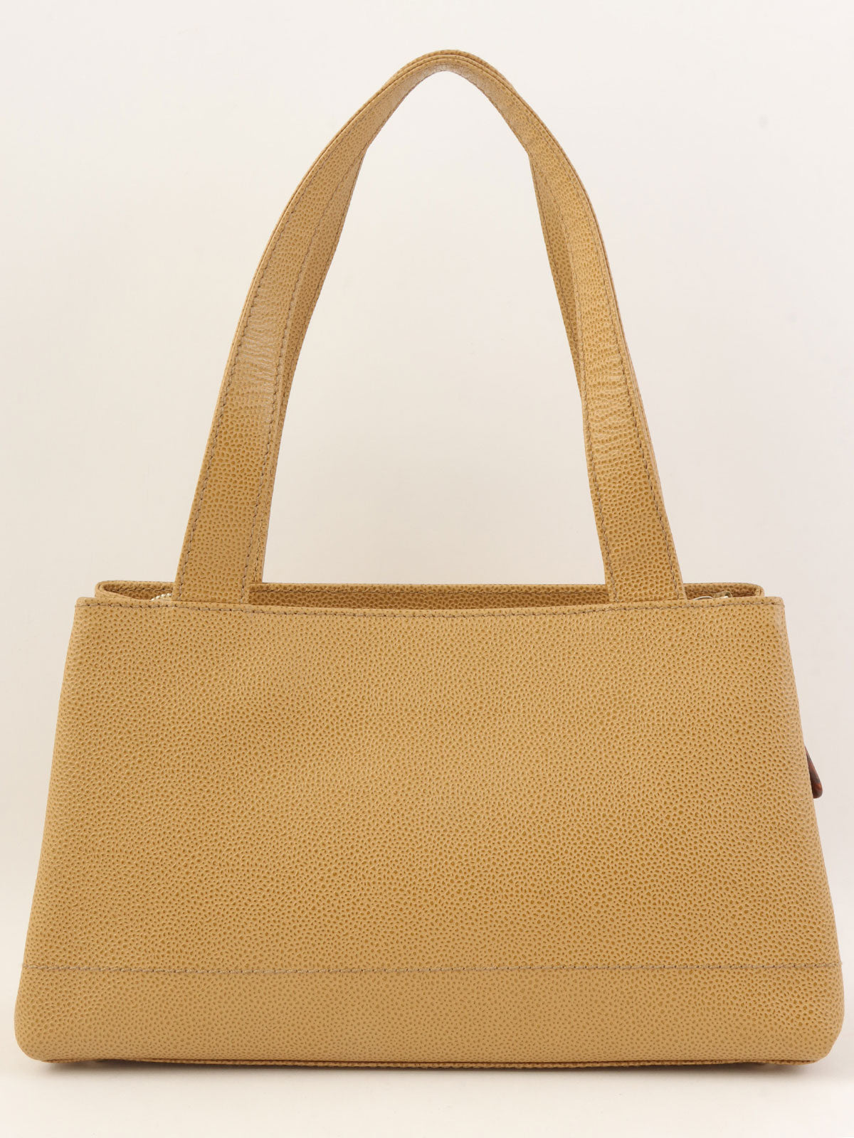 2001年鱼子酱皮CC标志缝线单肩包,米色