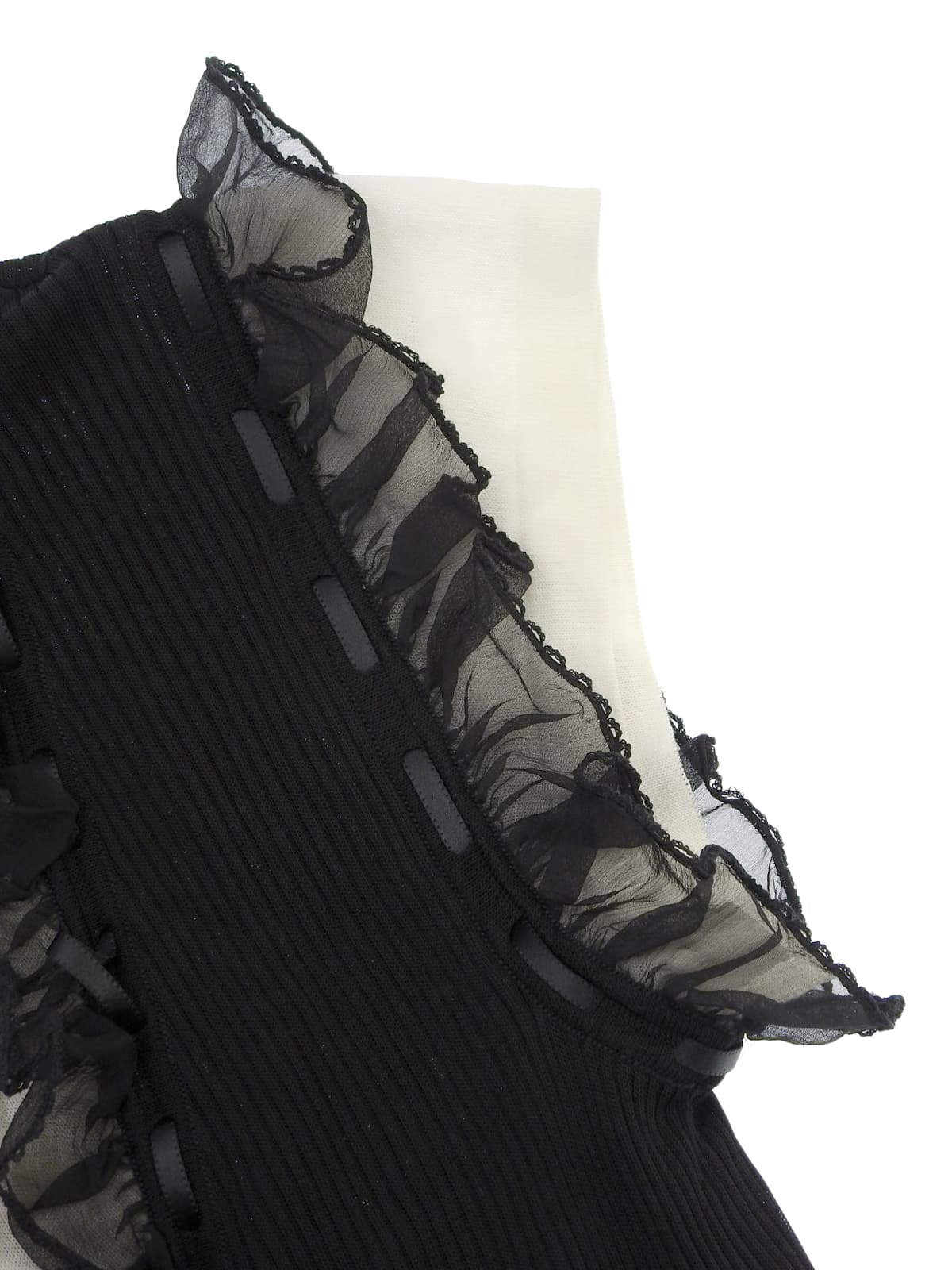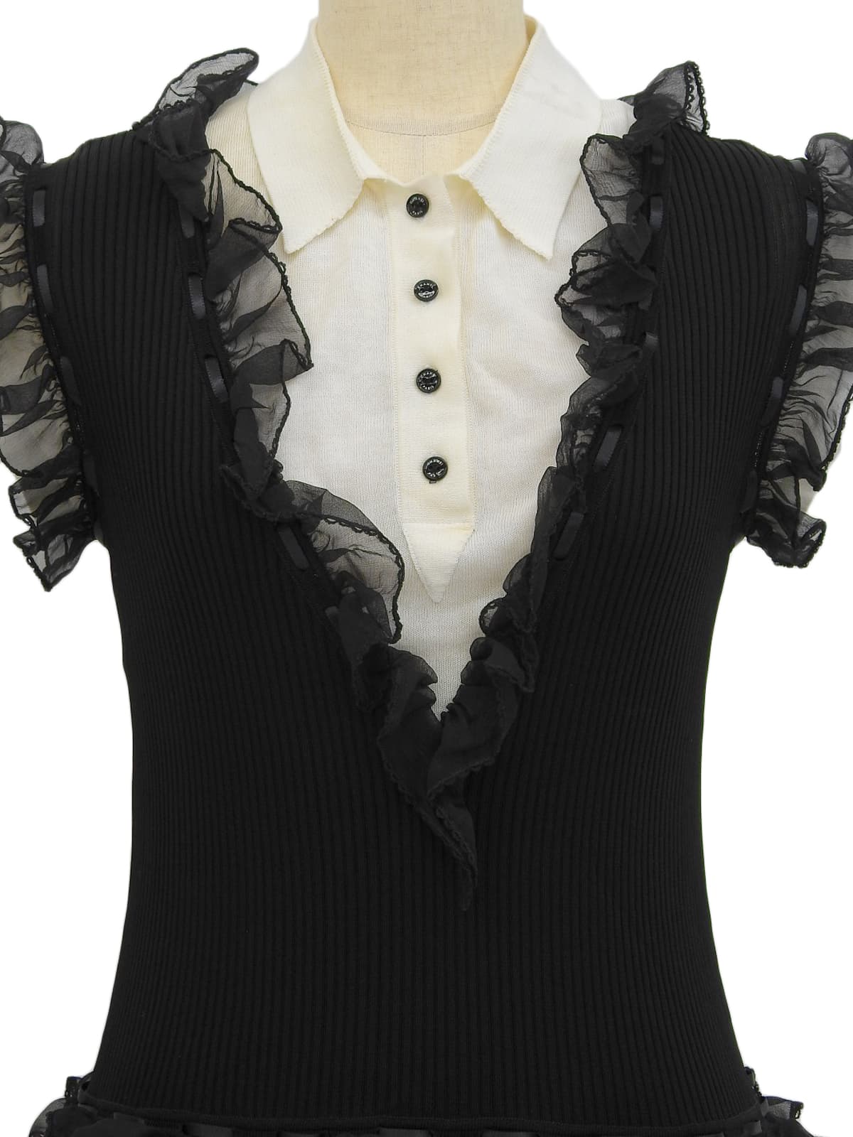 2007款黑白双色Logo纽扣荷叶边连衣裙