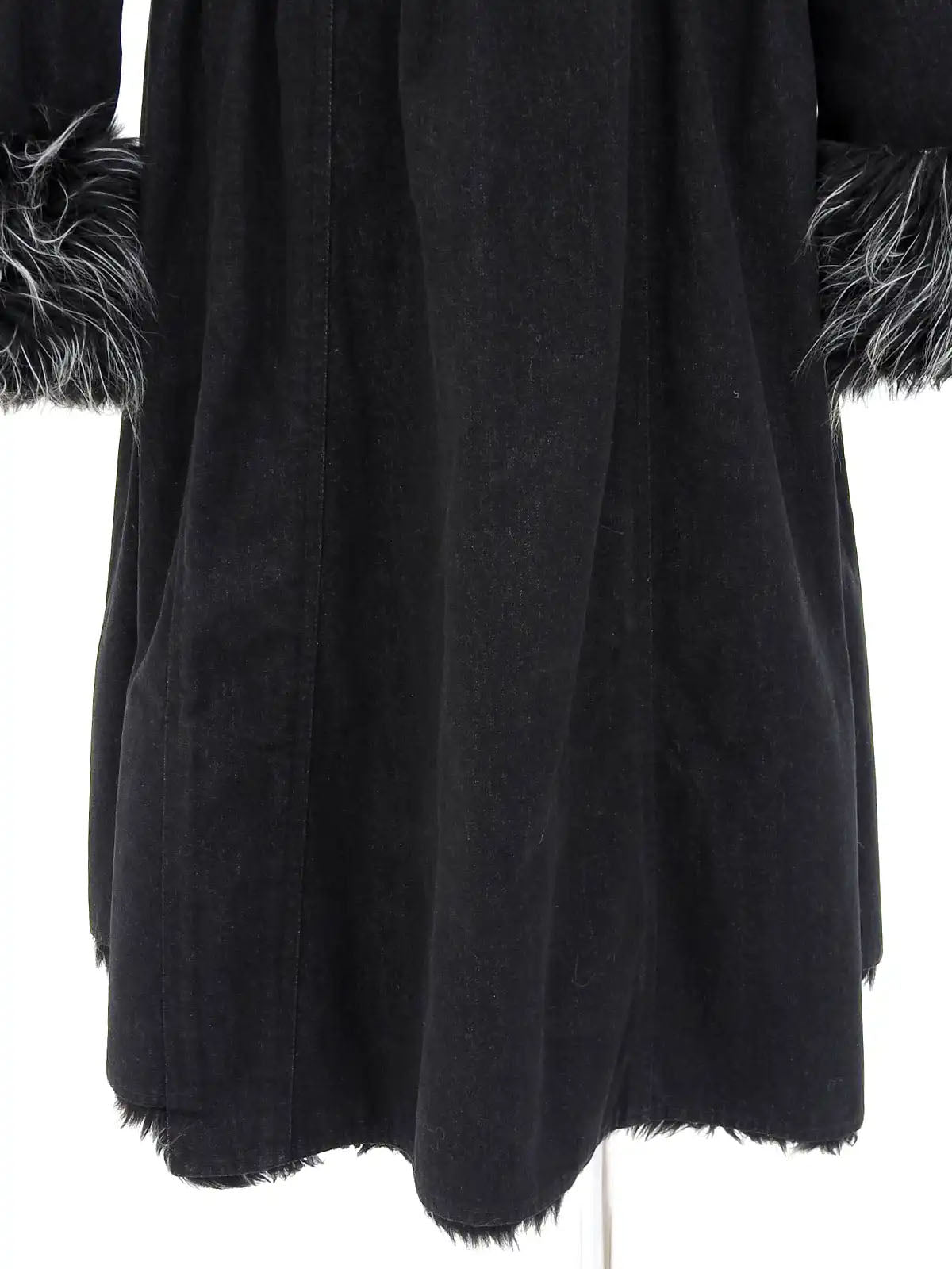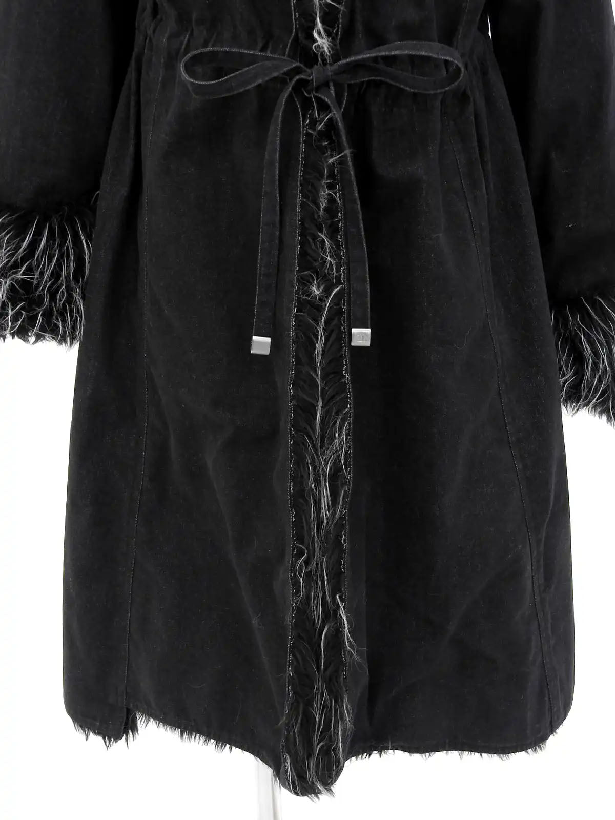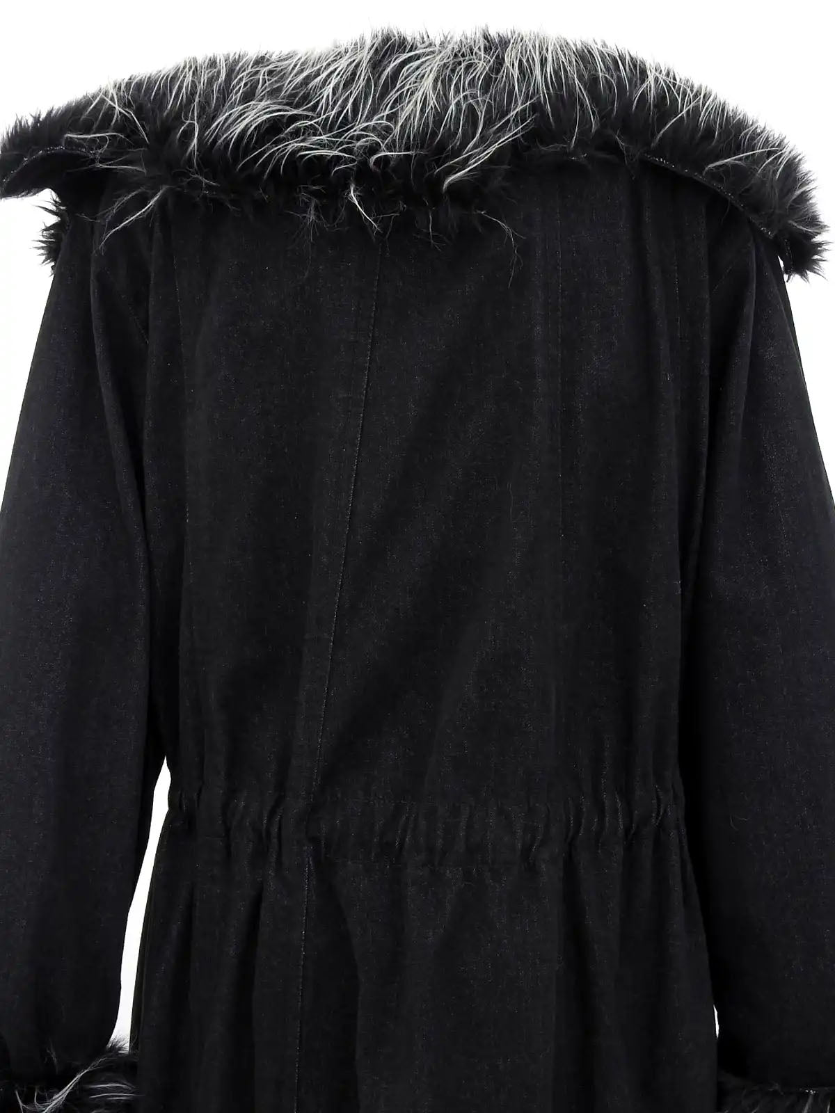 2002 牛仔皮草长款大衣 黑色