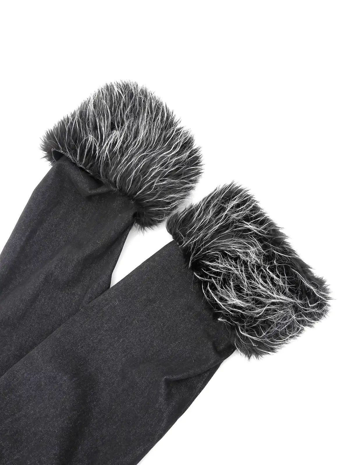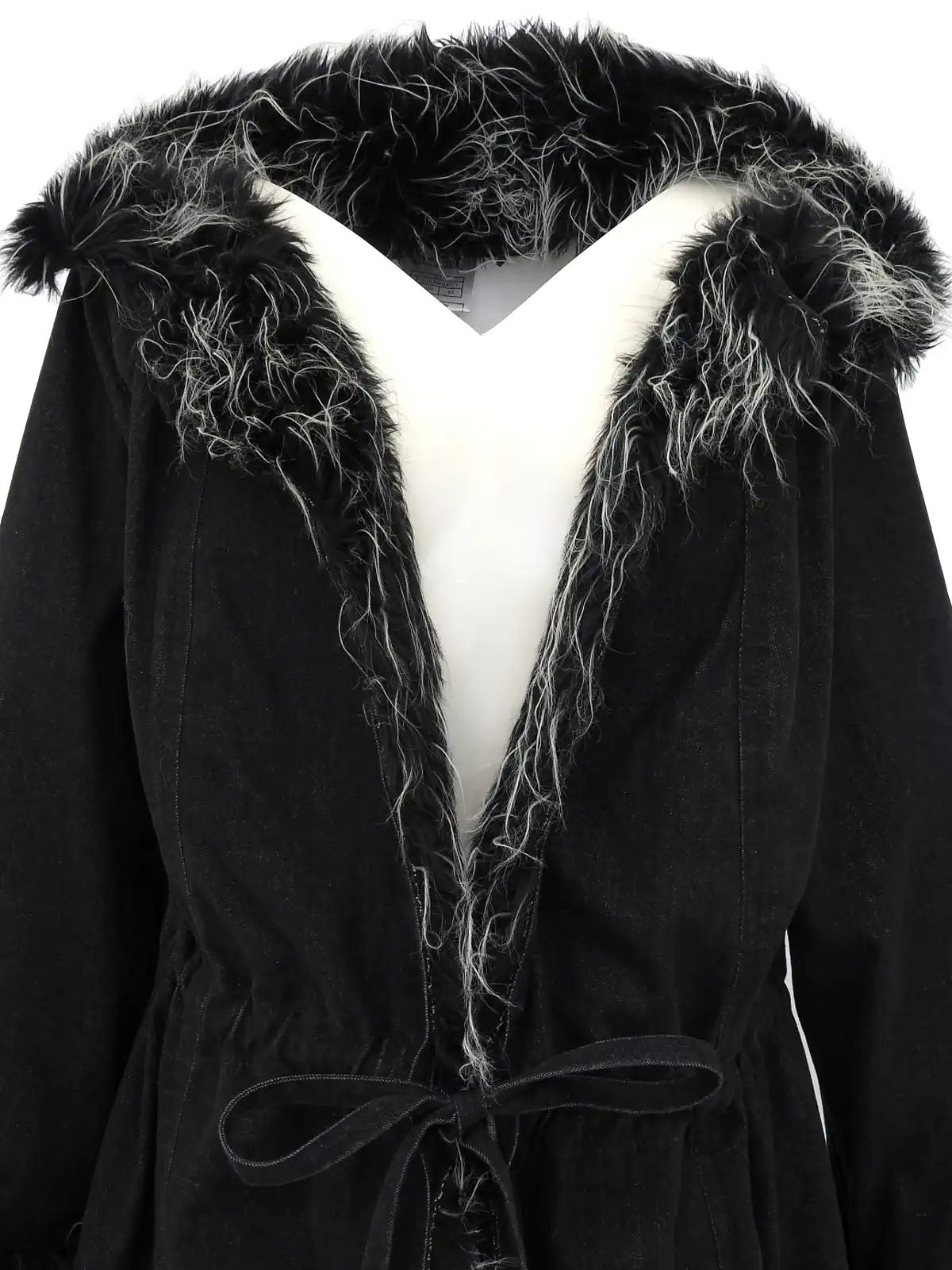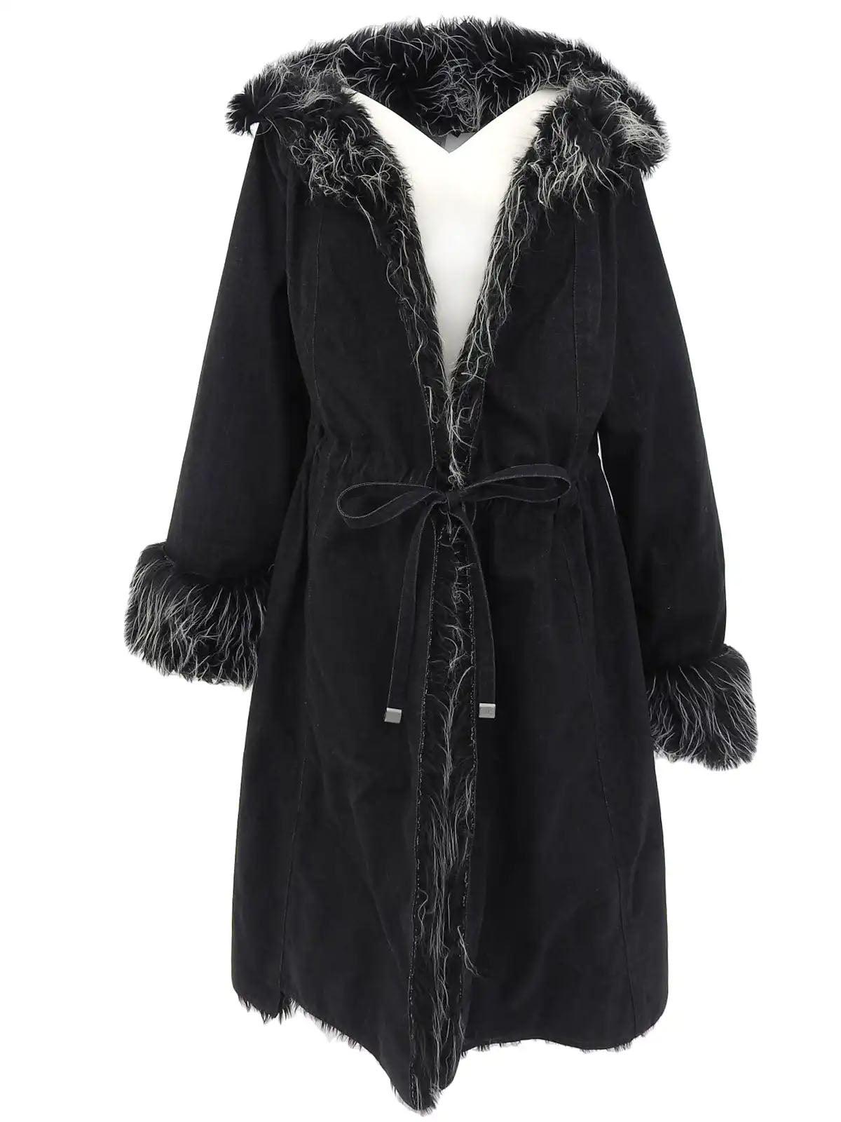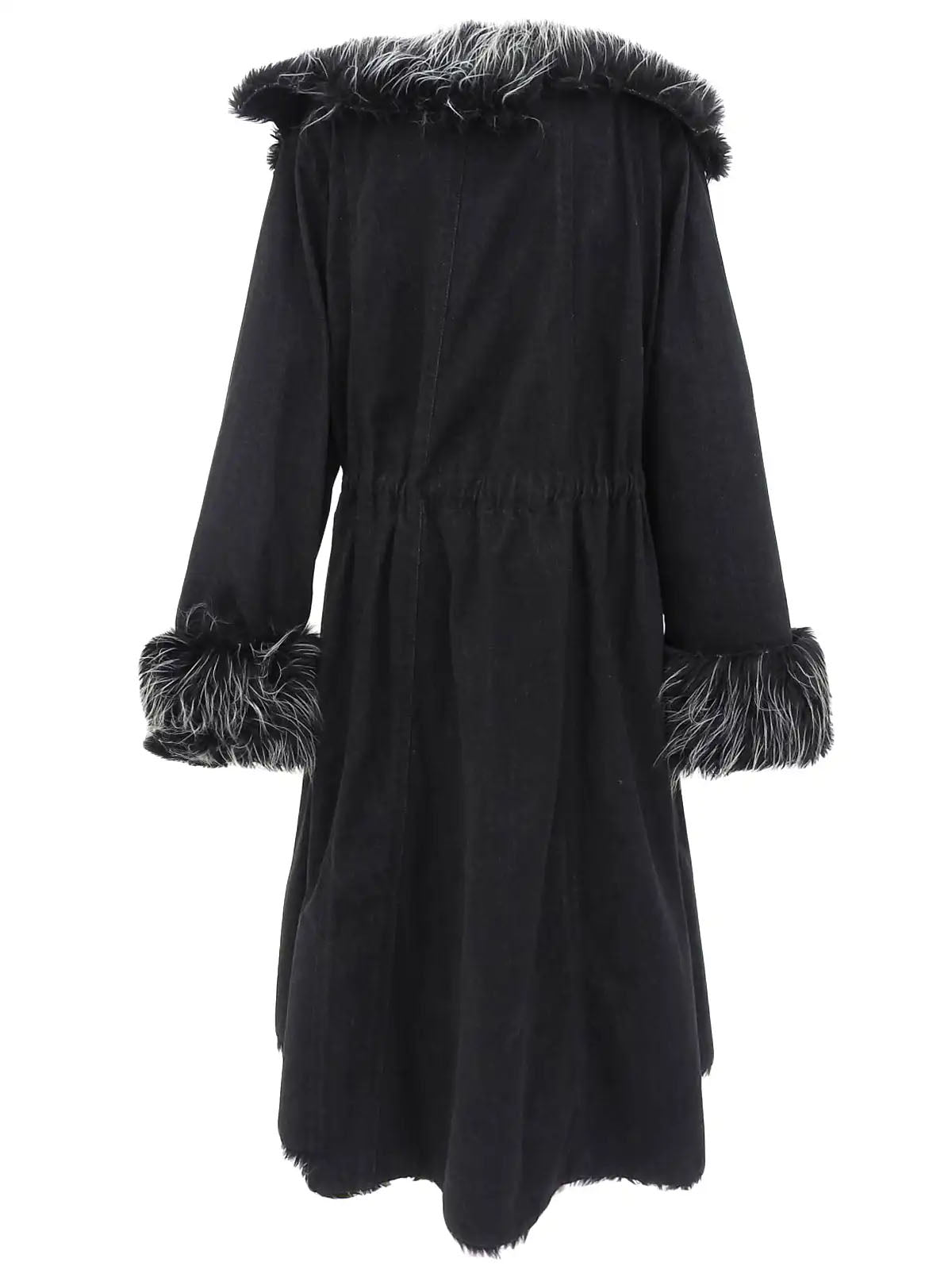 2002 牛仔皮草长款大衣 黑色
