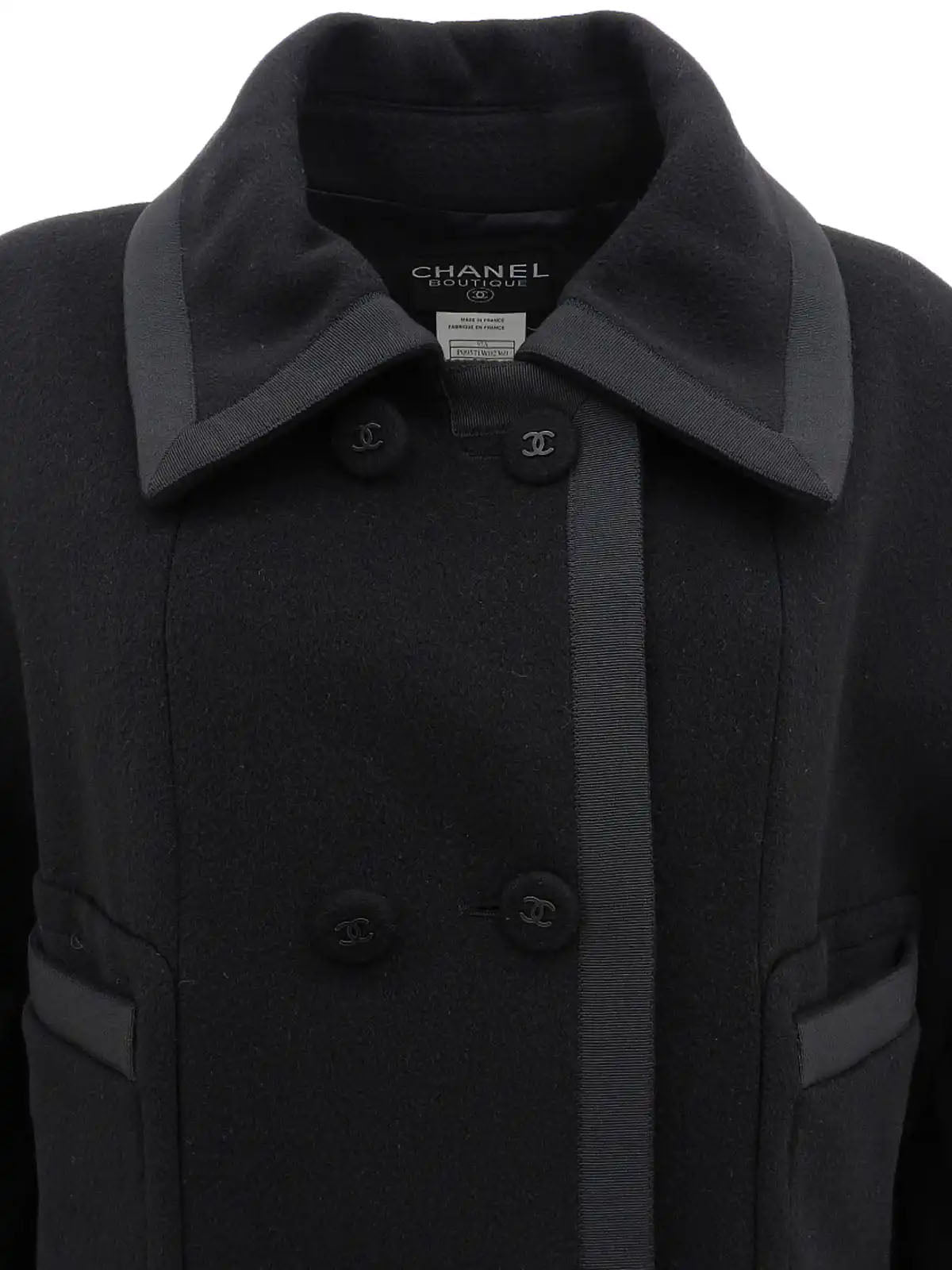 1997 羊绒 CC 标志纽扣长款大衣 黑色