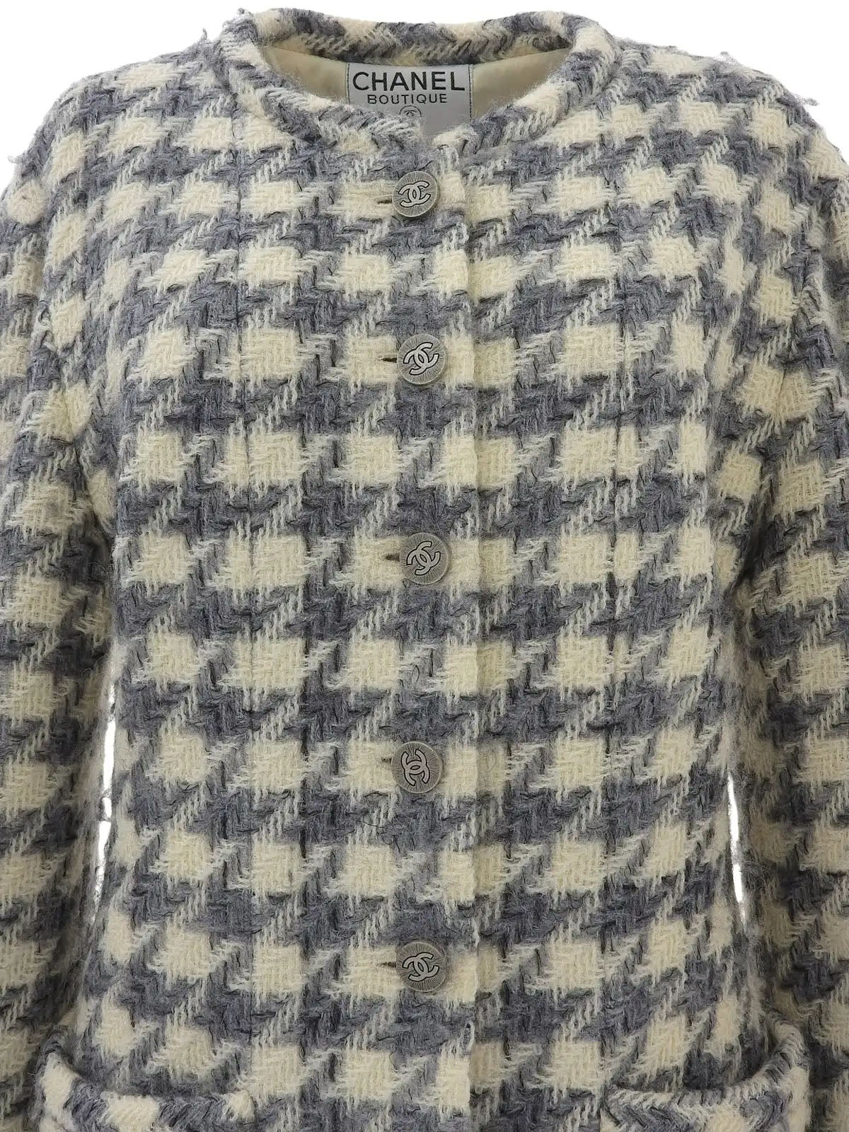 1998 千鸟格纹 CC 标志纽扣夹克 灰色/象牙色