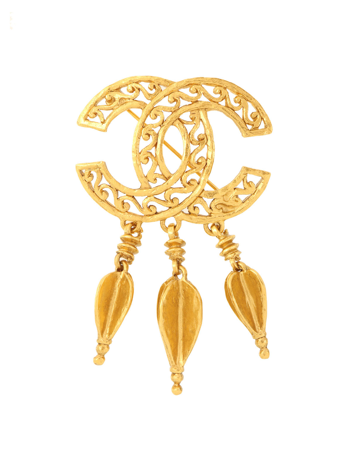 1995 年设计镂空 CC 标志金色摇摆胸针