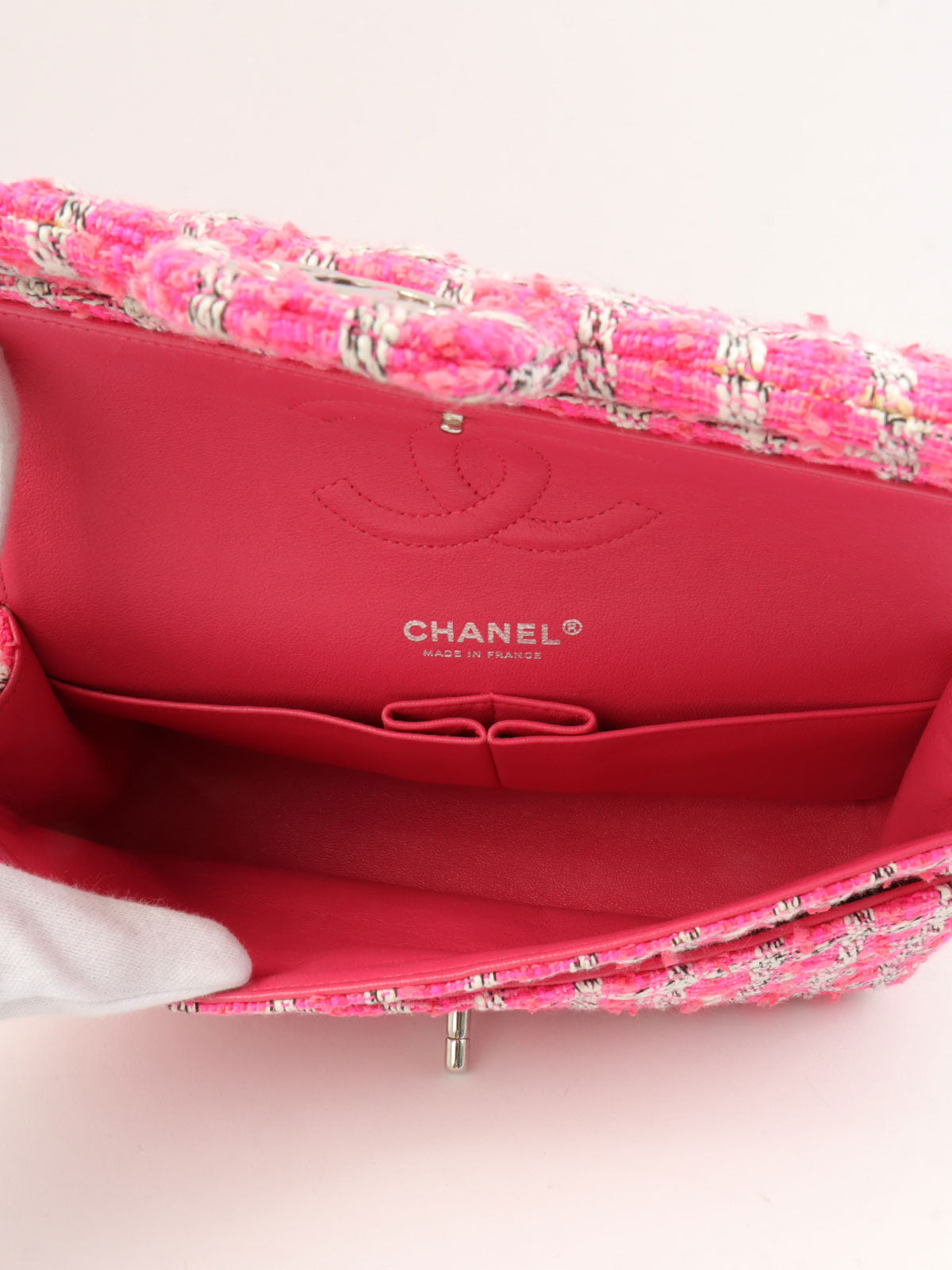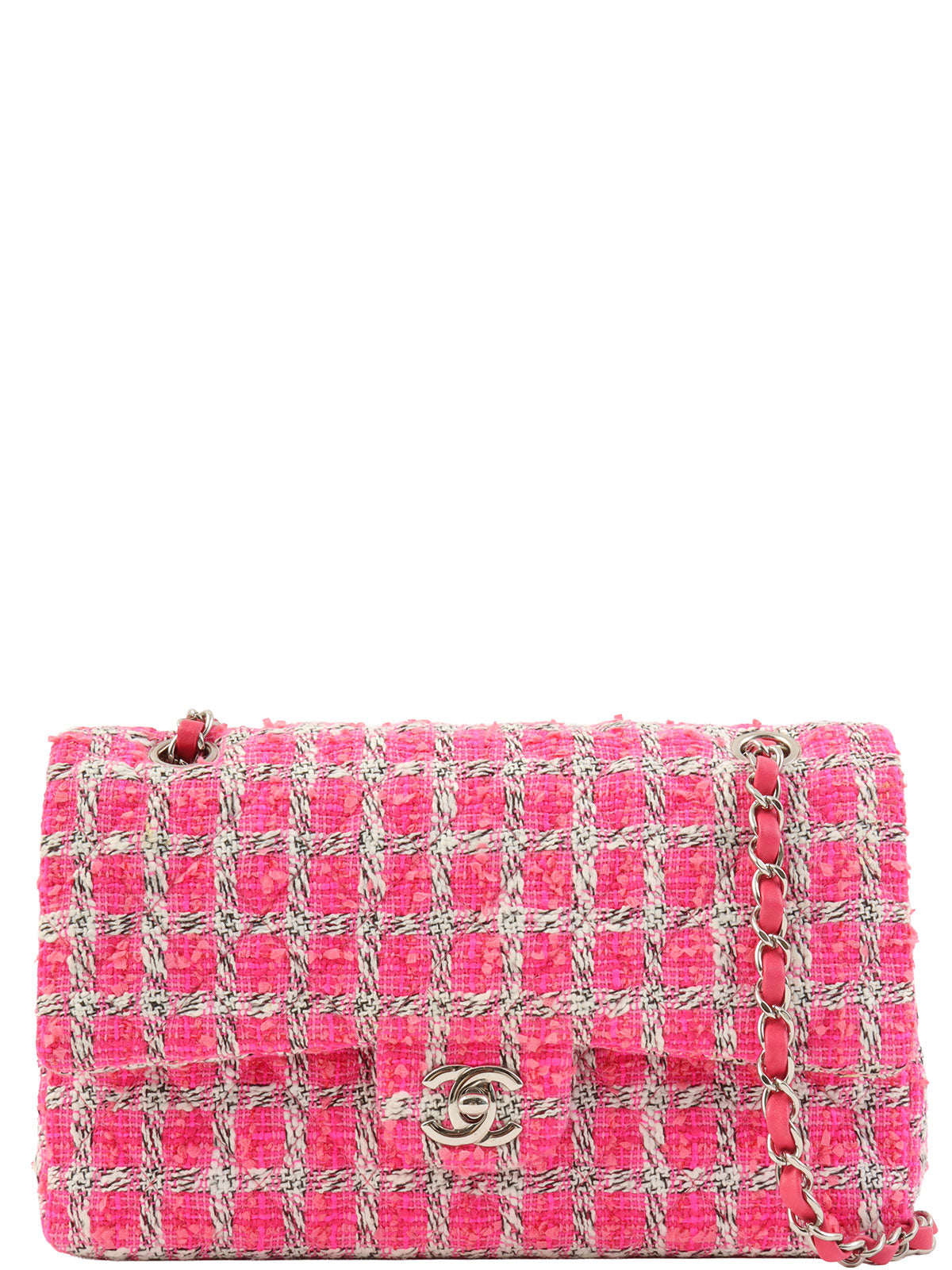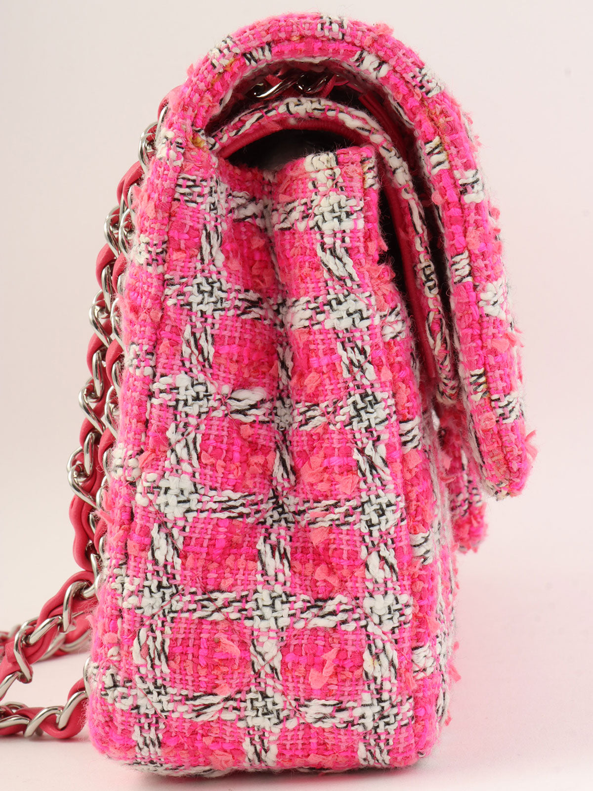 2014款粉色/白色斜纹软呢经典翻盖链条包,25号