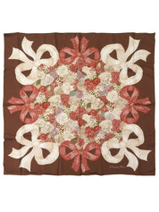 棕色/粉色/多色丝带玫瑰图案围巾