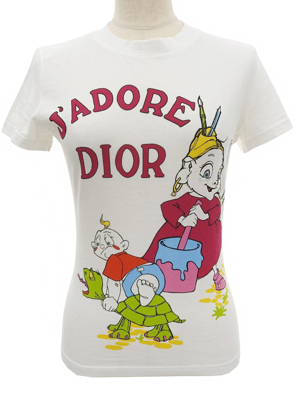 白色/多色动物纹短袖上衣