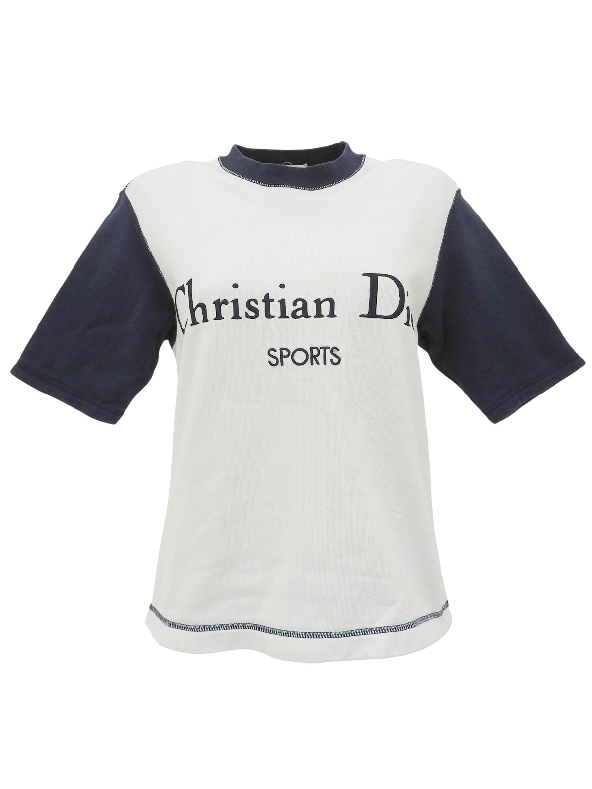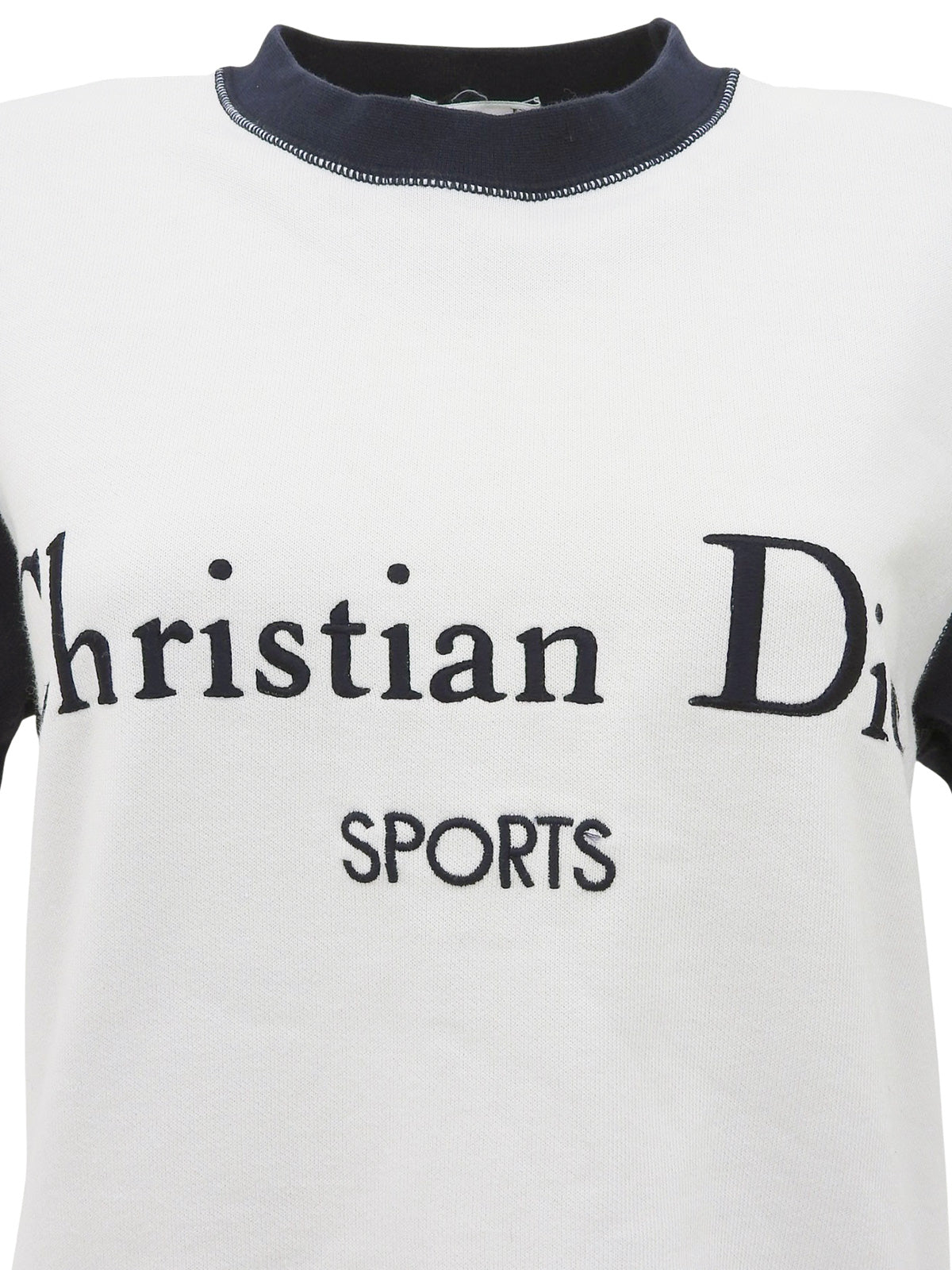 白色/藏青色双色刺绣logo短袖卫衣