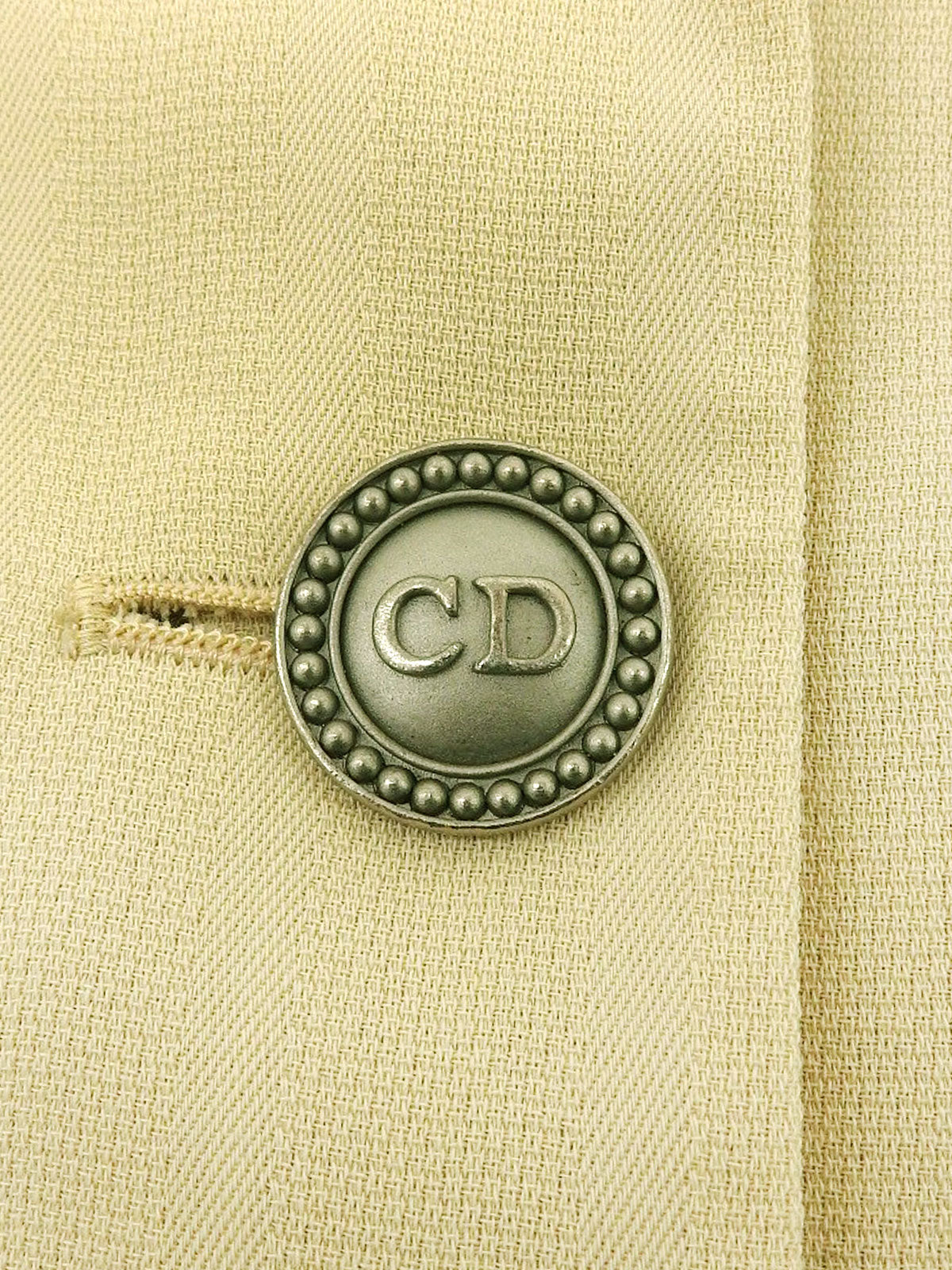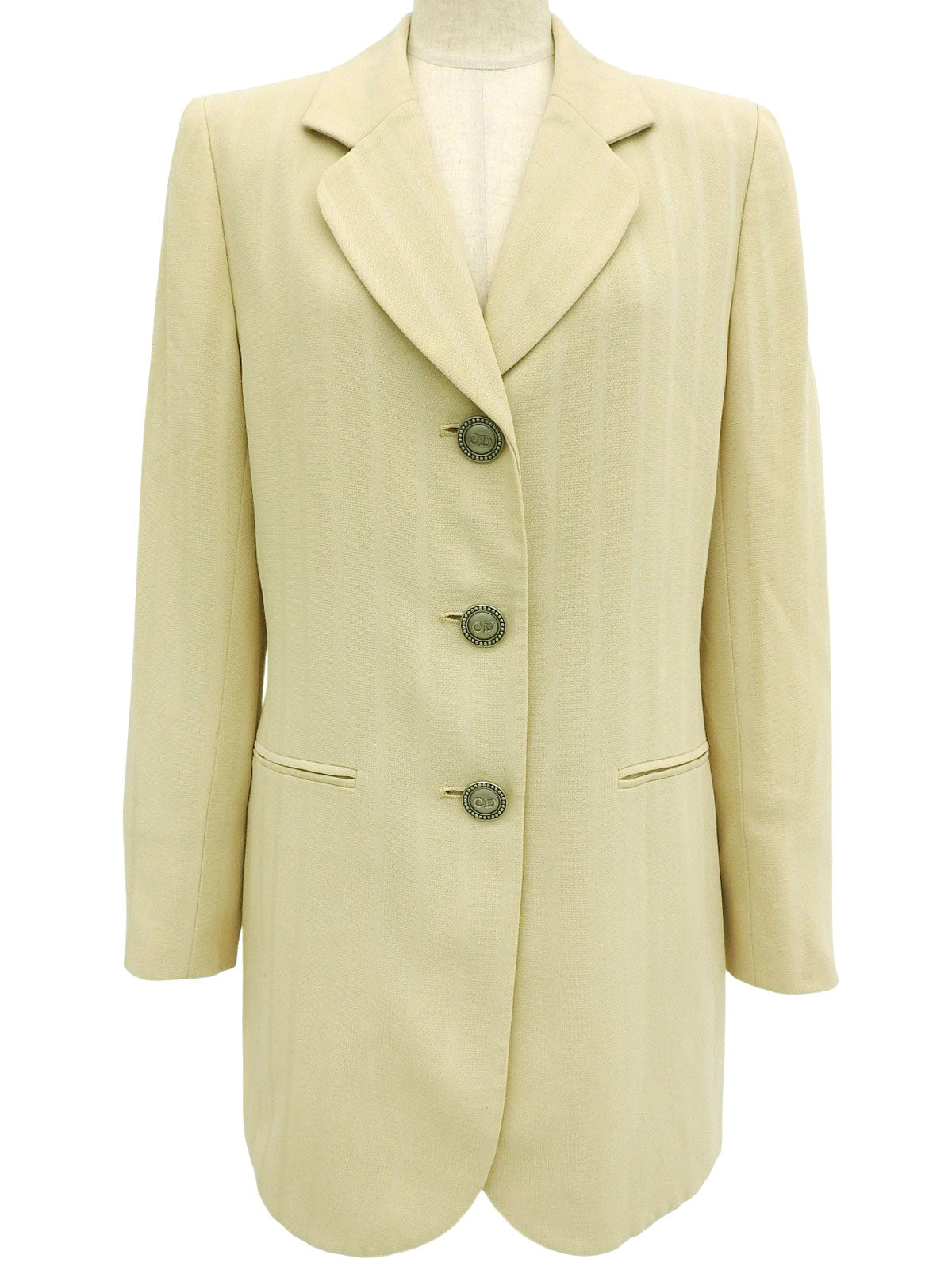 象牙色羊毛条纹图案Logo纽扣夹克