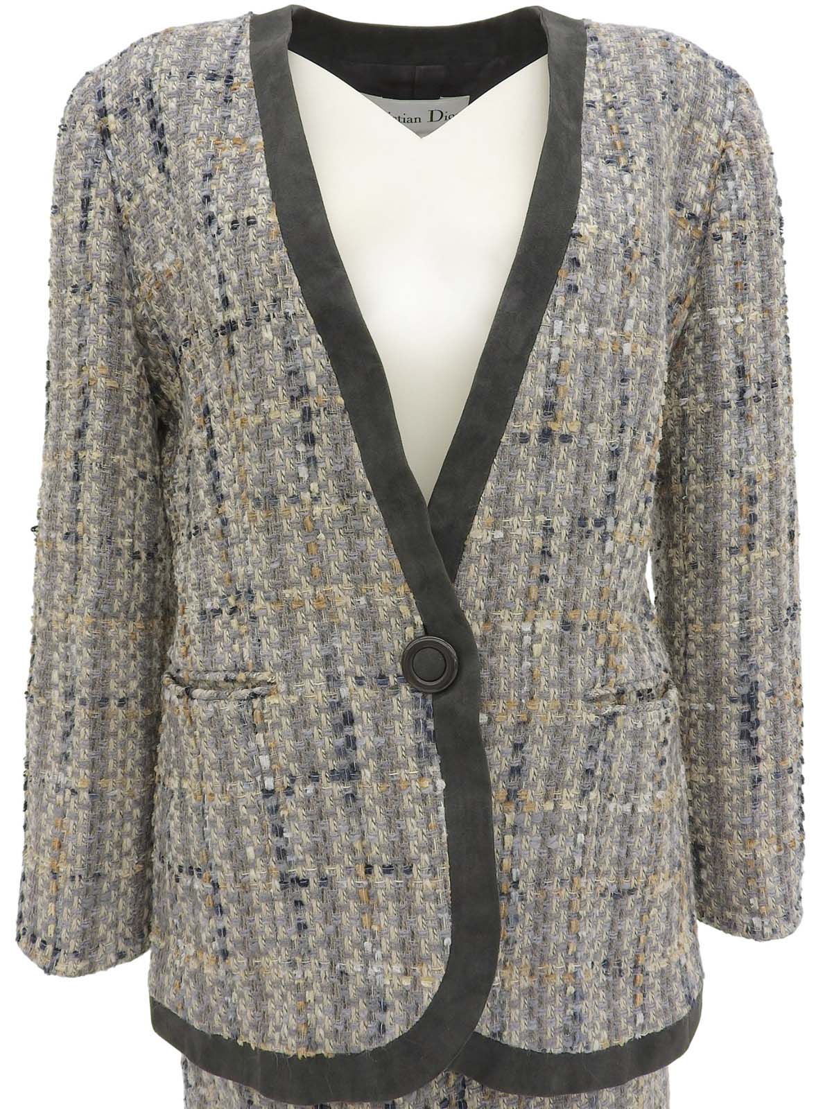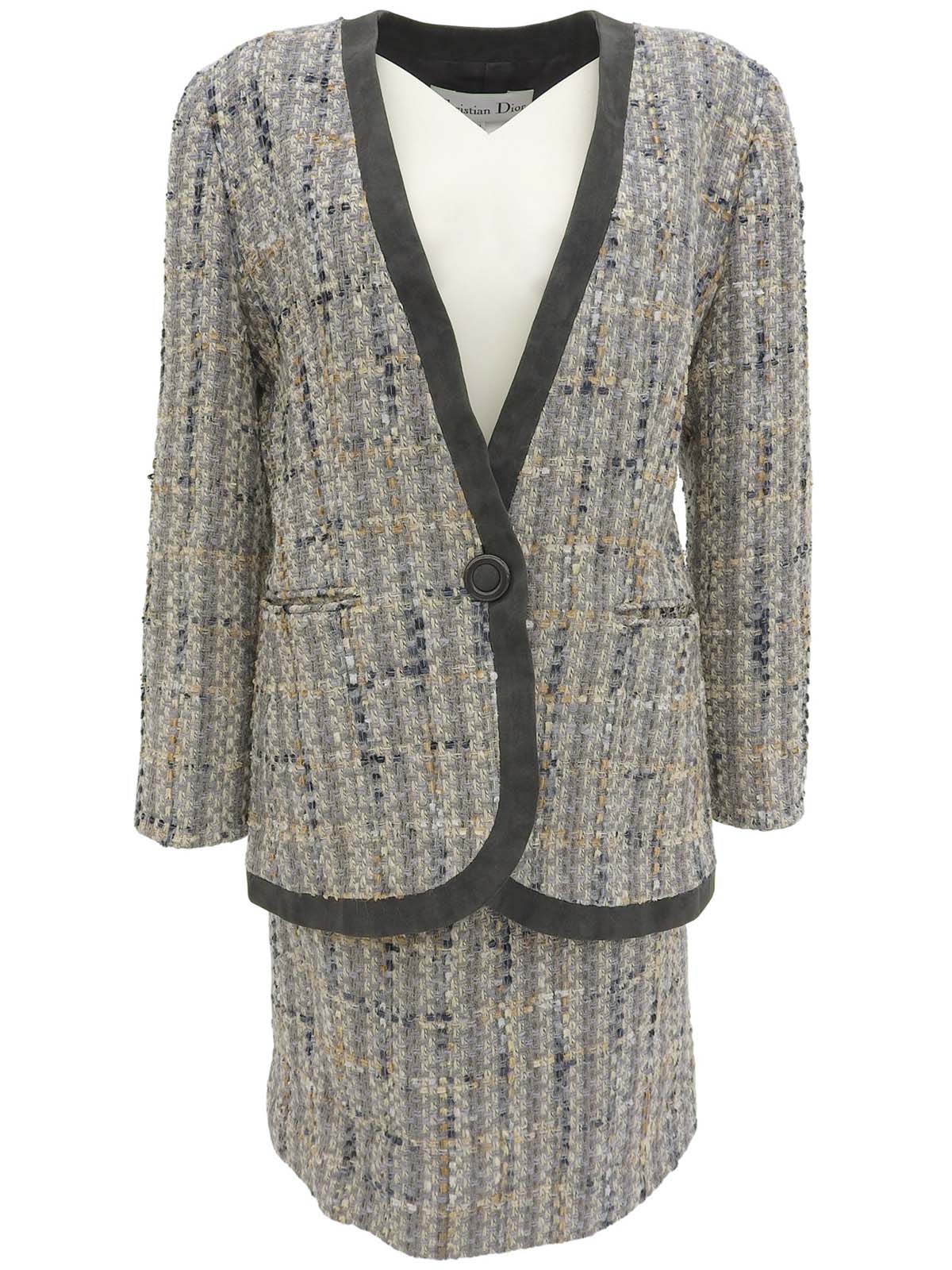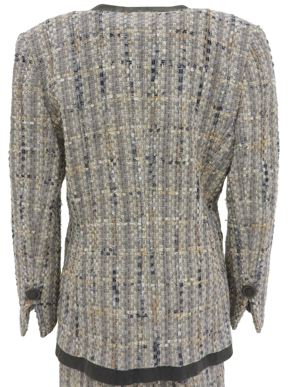 灰色/多色斜纹软呢无领套装
