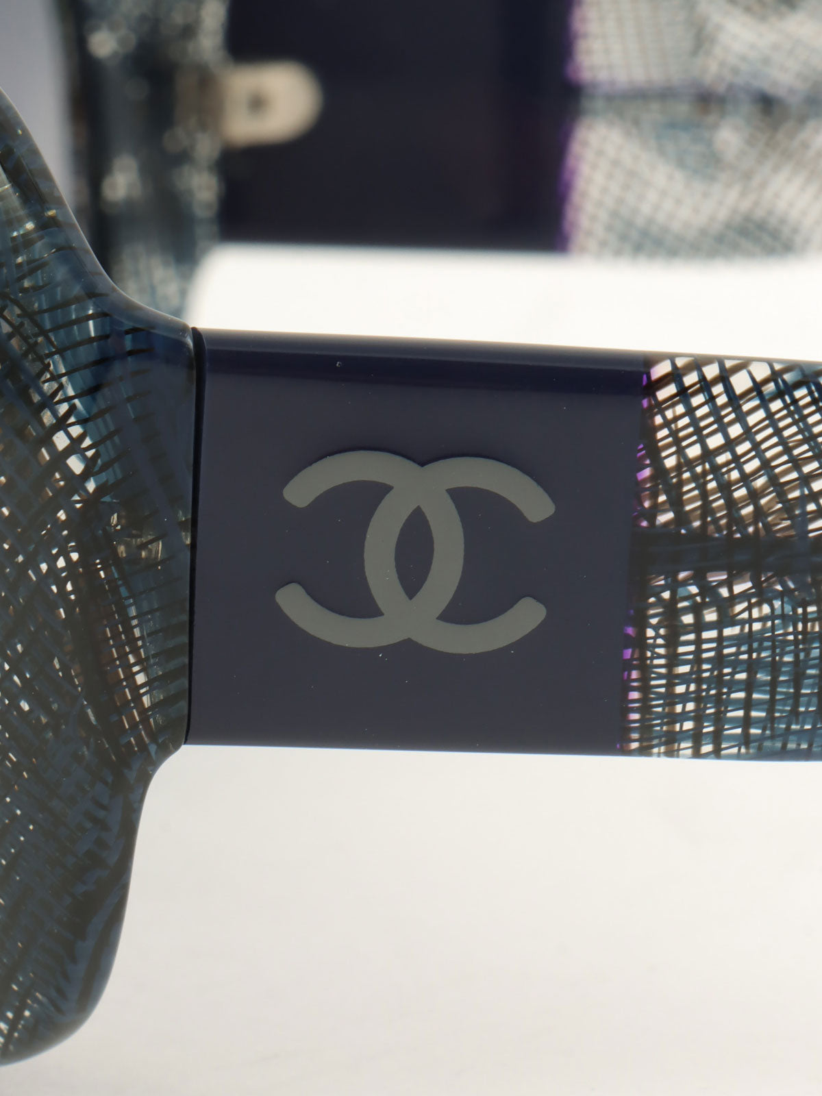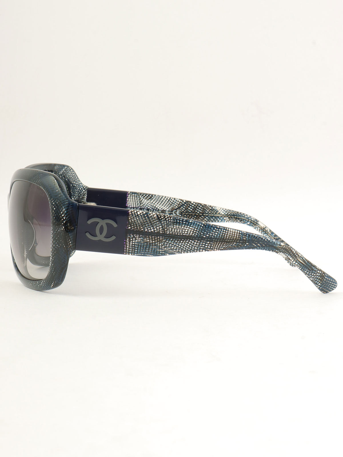 斜纹软呢图案 CC 标志太阳镜 海军蓝