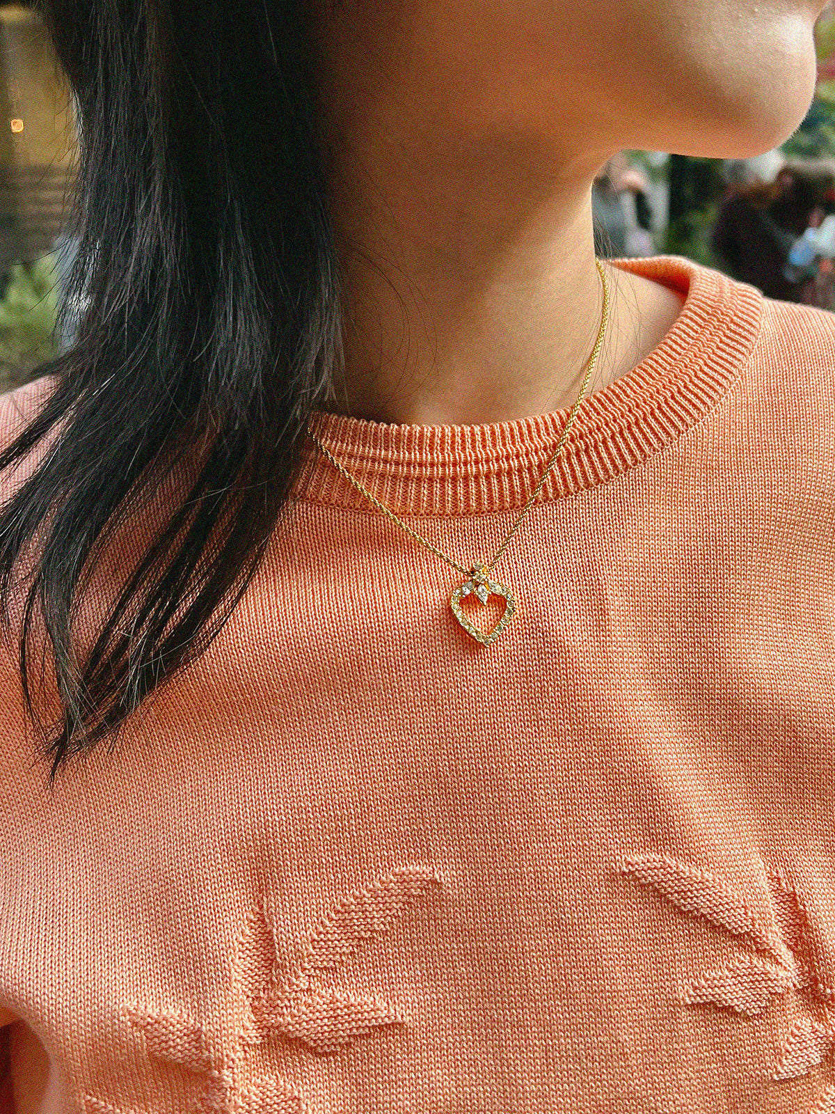 镶钻心形图案金项链