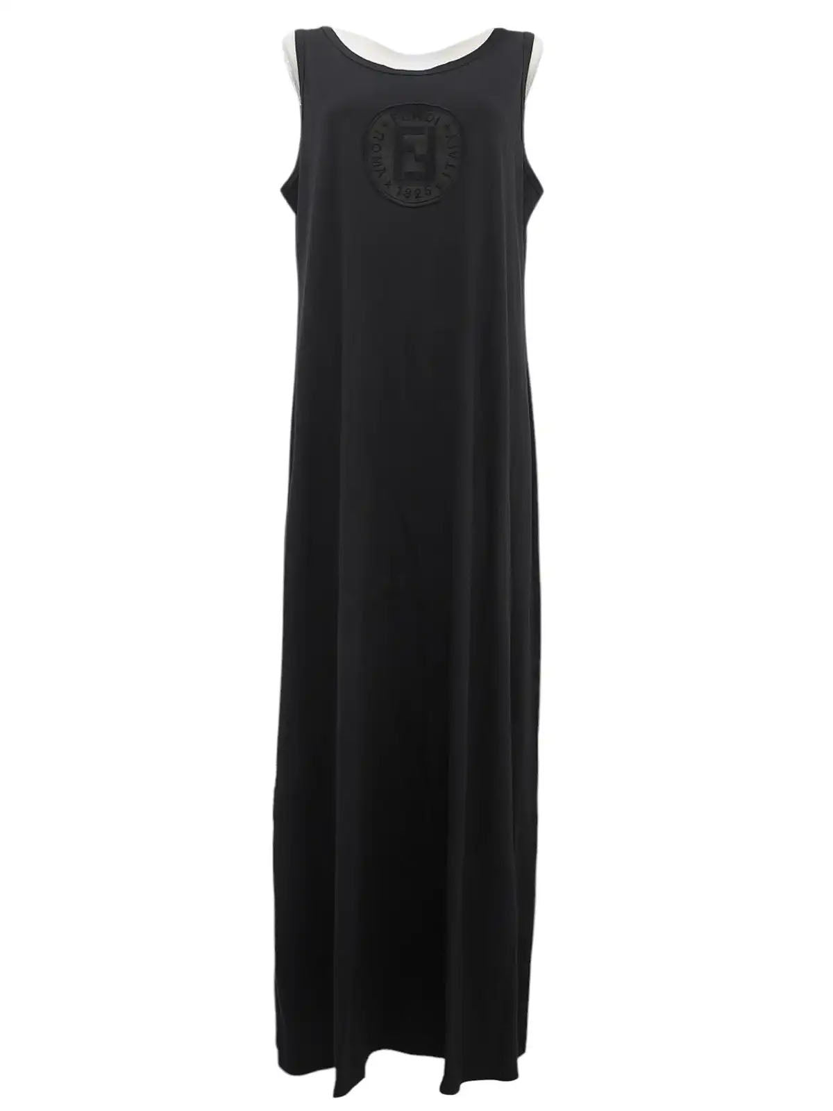 黑色Logo缝线无袖连衣裙