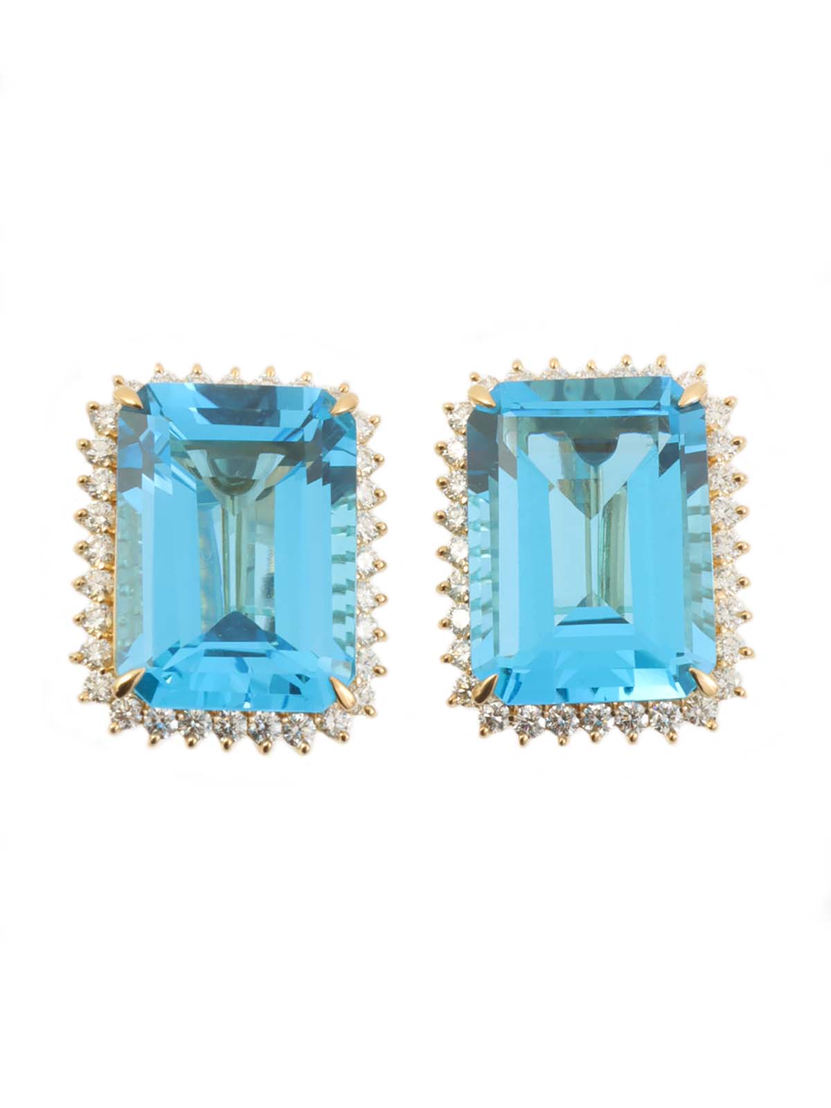 18K金/蓝色托帕石钻石方形耳环