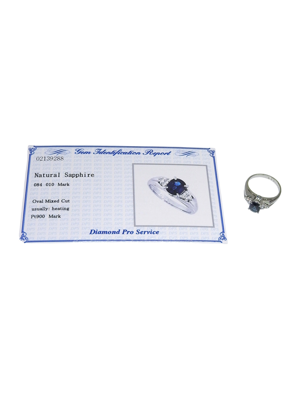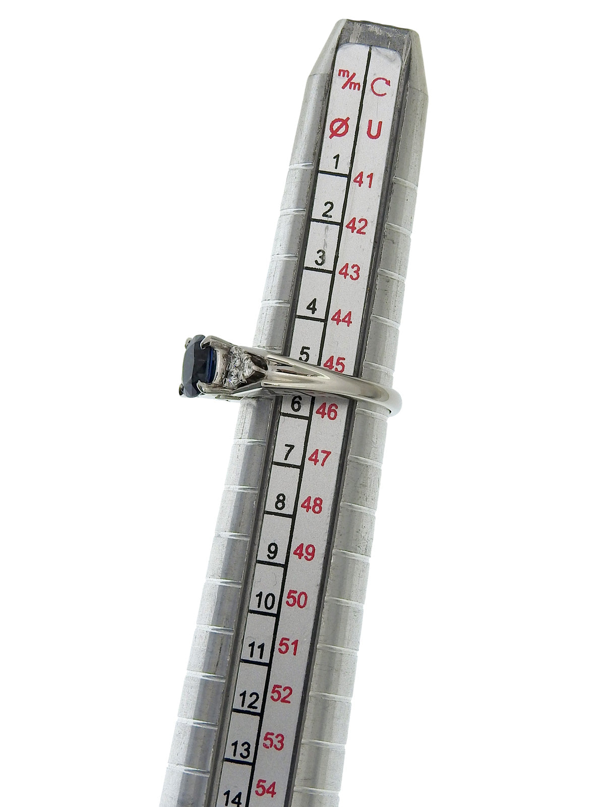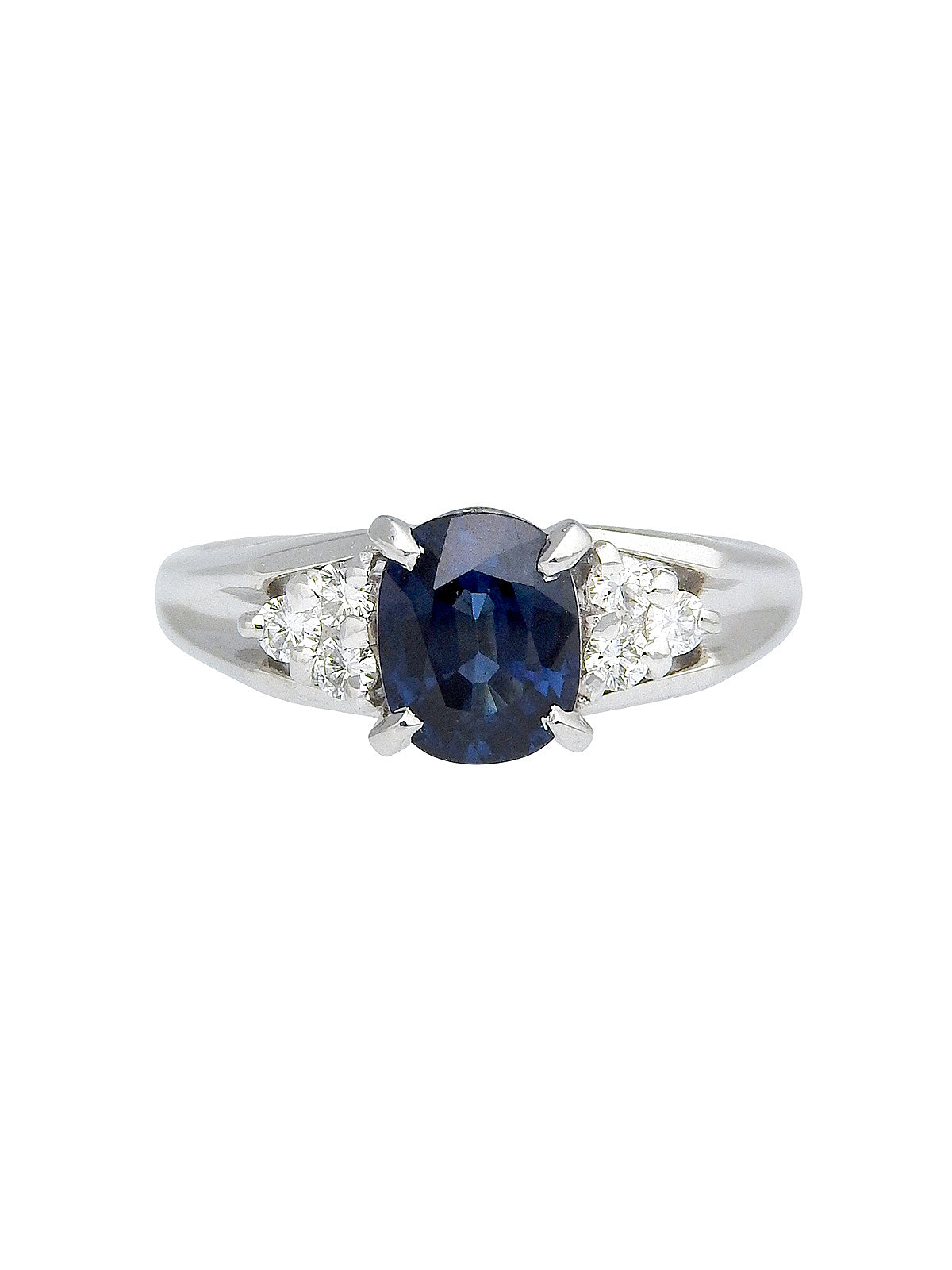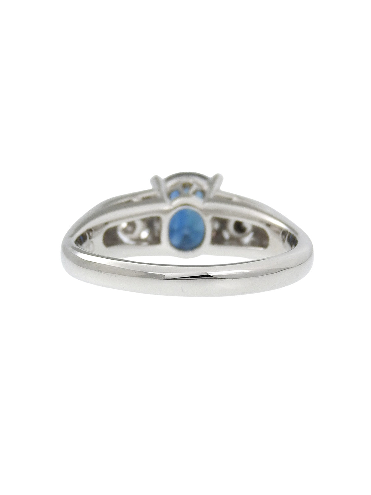 铂金蓝宝石钻石椭圆形戒指,银色/蓝色