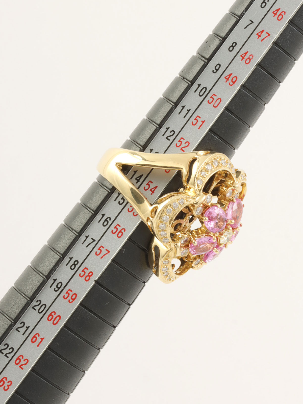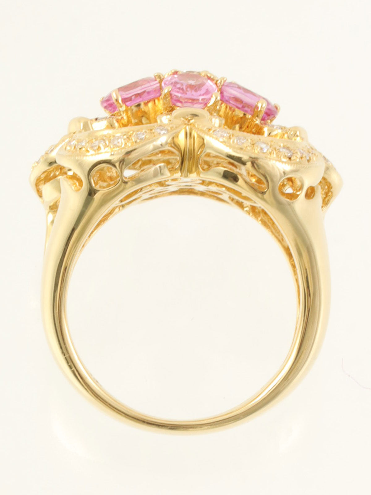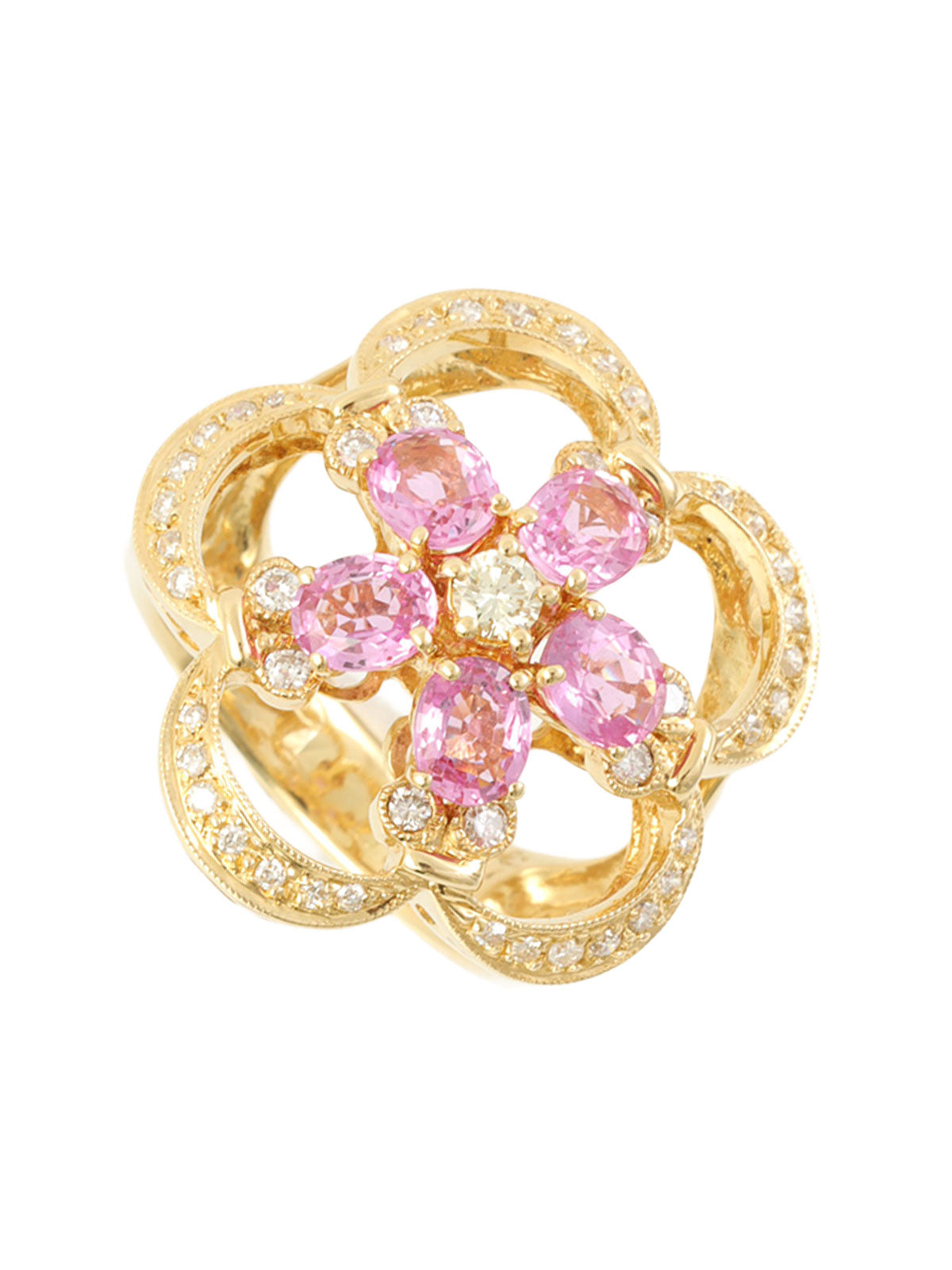 18K蓝宝石钻石花朵造型戒指,粉金/金