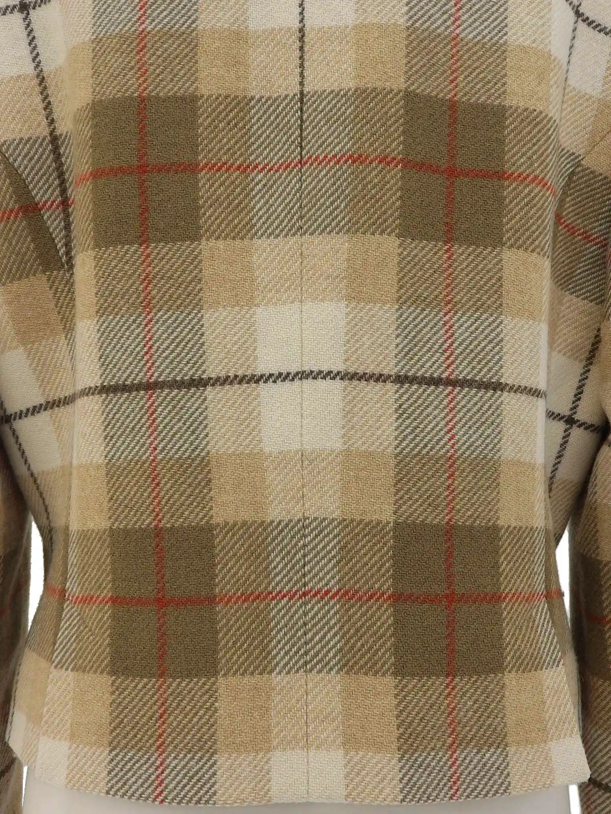 米色/棕色羊毛格纹徽标纽扣夹克