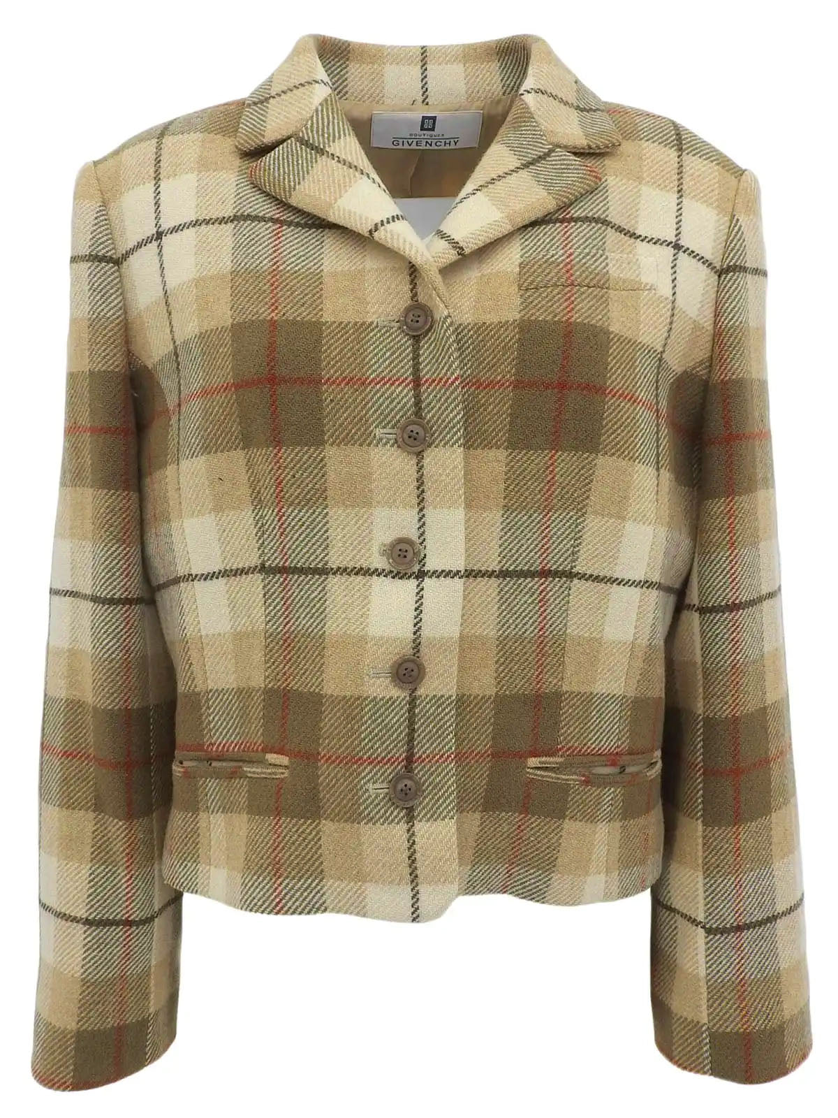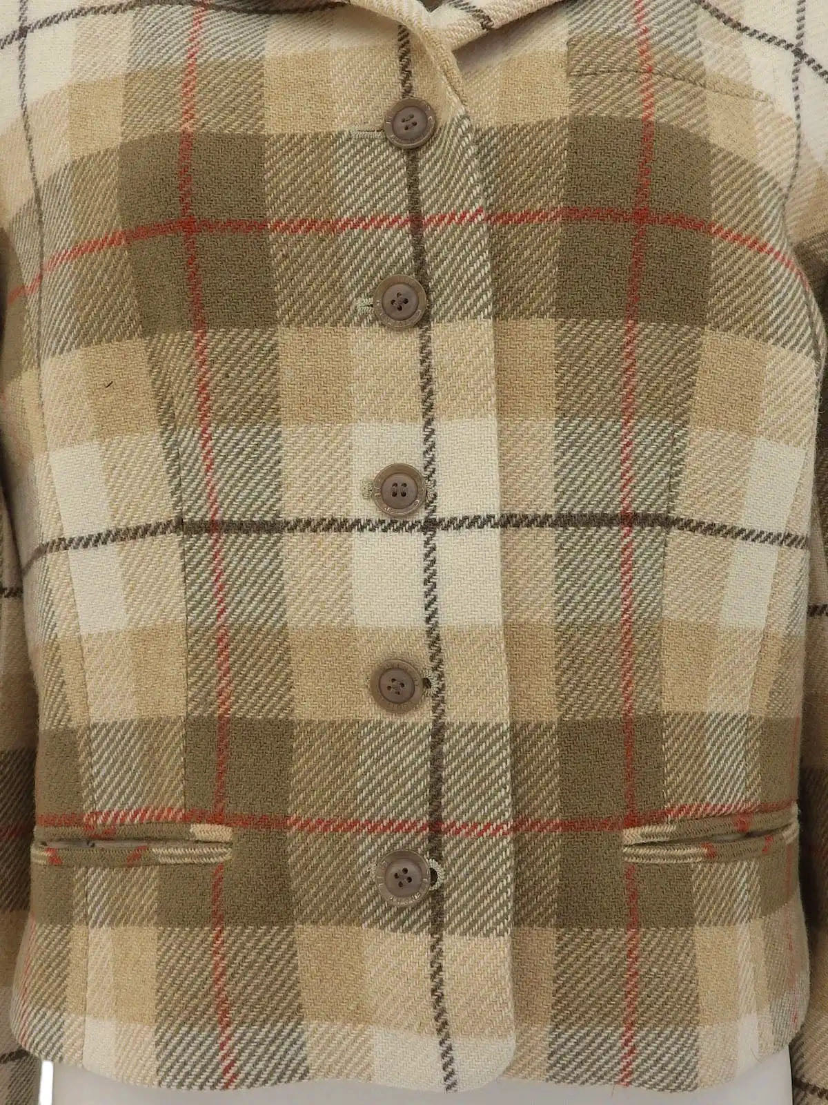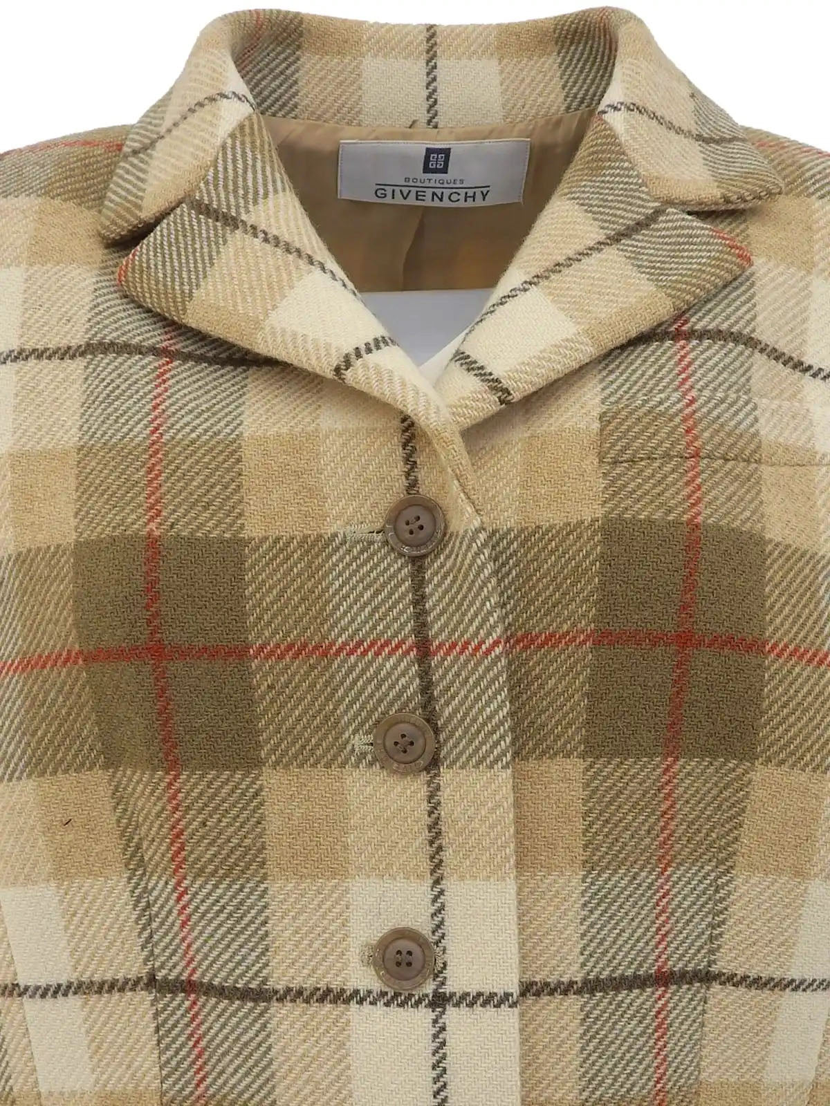 羊毛格纹标志纽扣夹克 米色/棕色