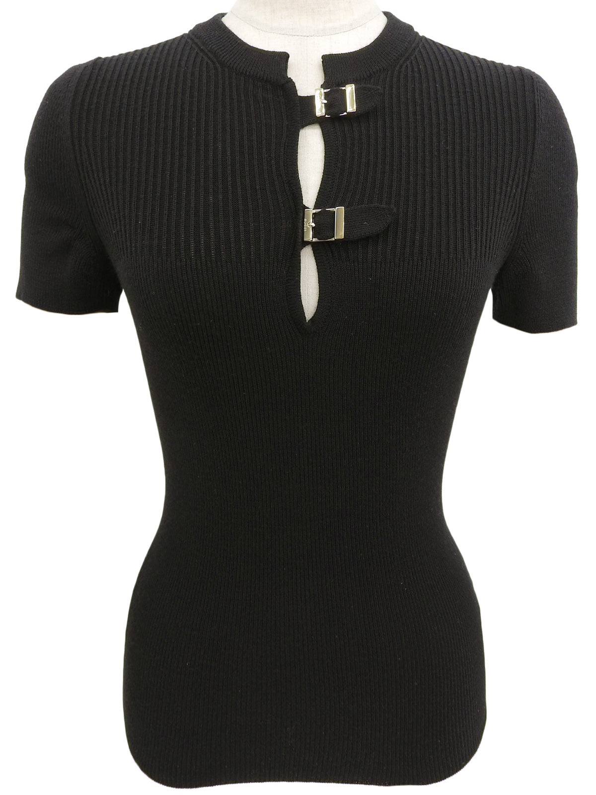 黑色腰带设计Logo扣短袖针织上衣