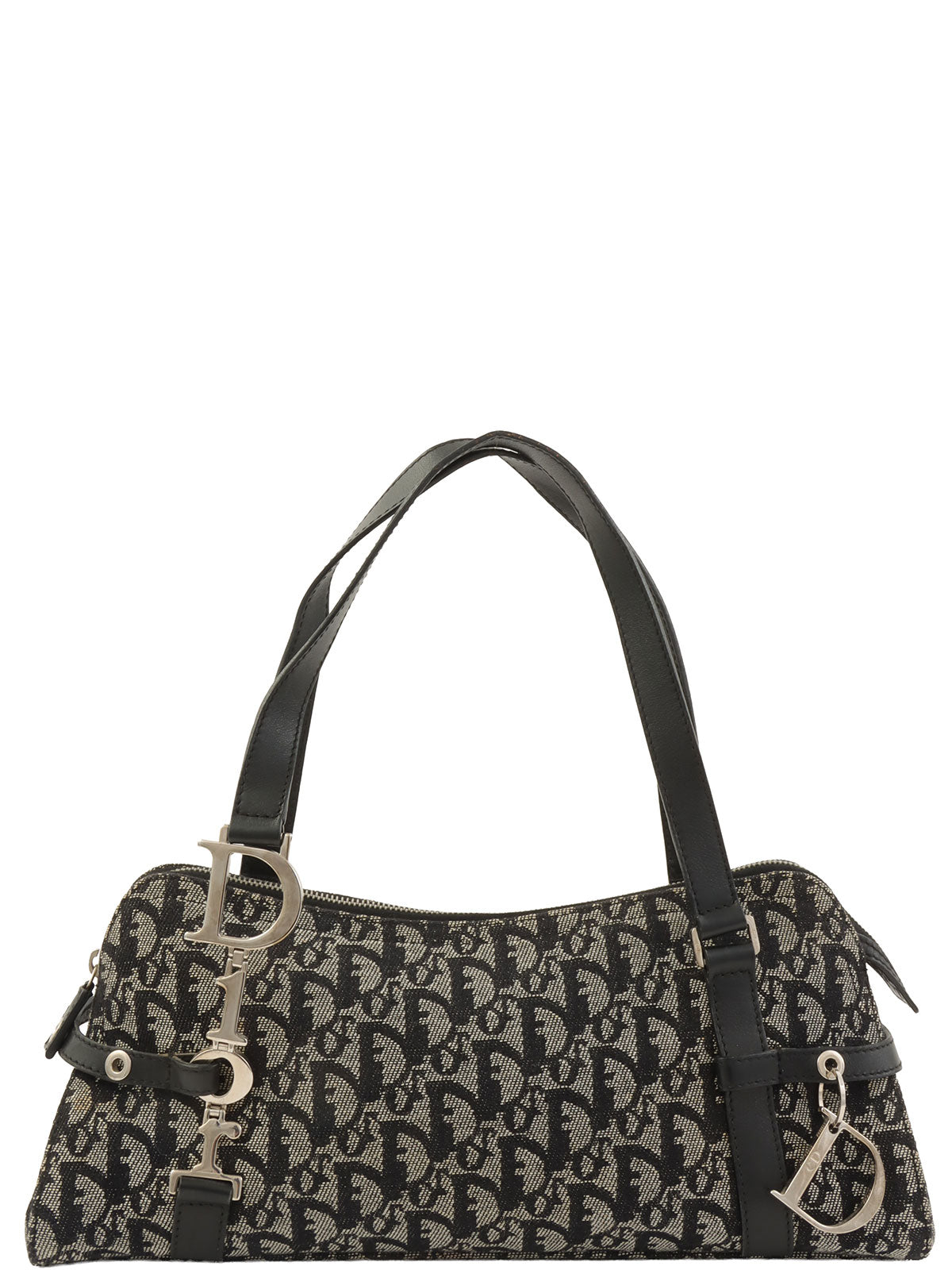Trotter 图案 Logo 铭牌单肩包 黑色/米色