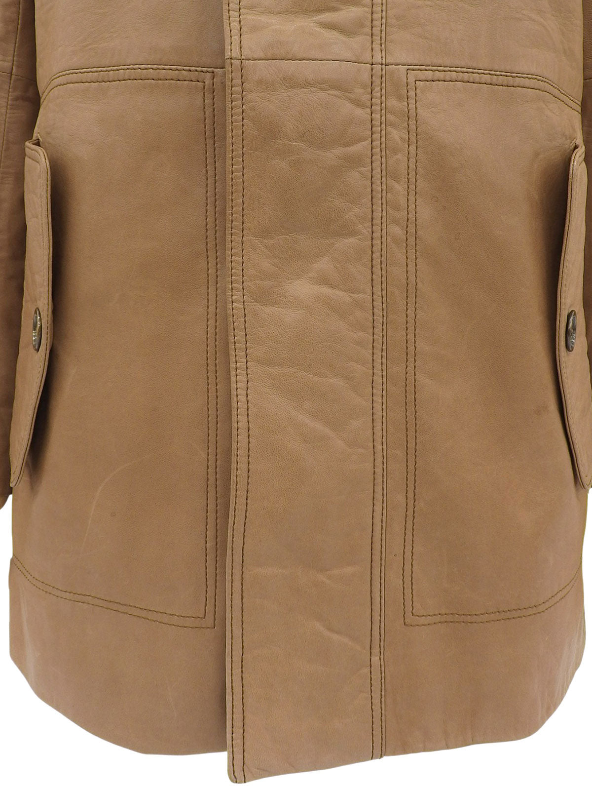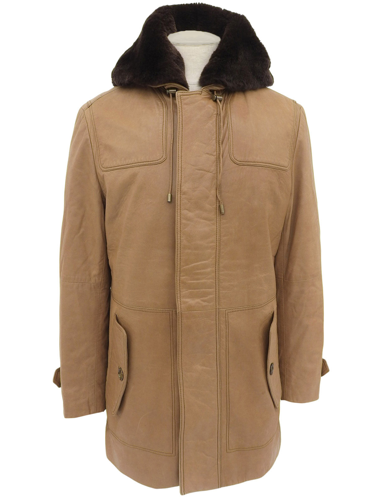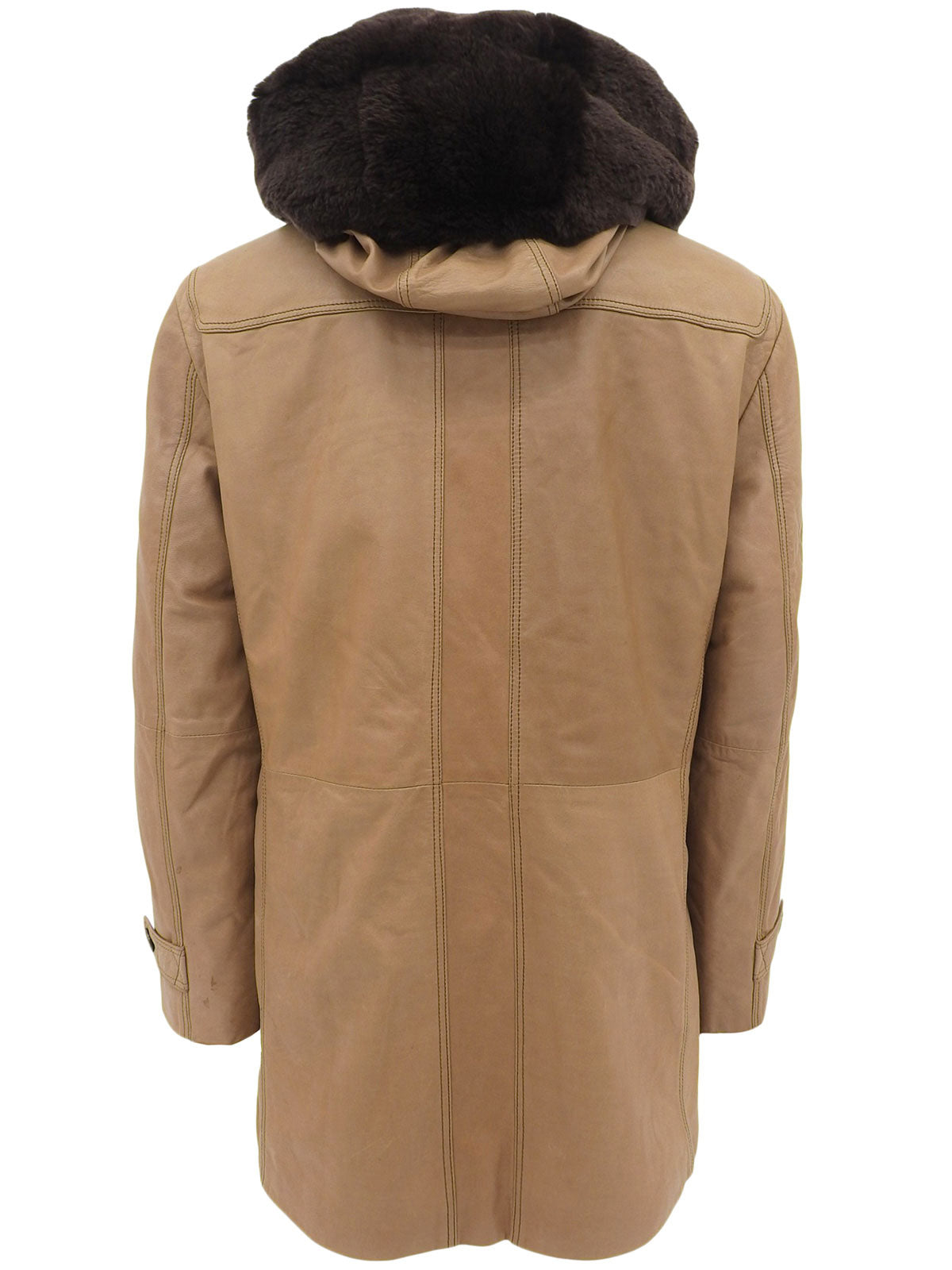 棕色真皮毛连帽带logo纽扣外套