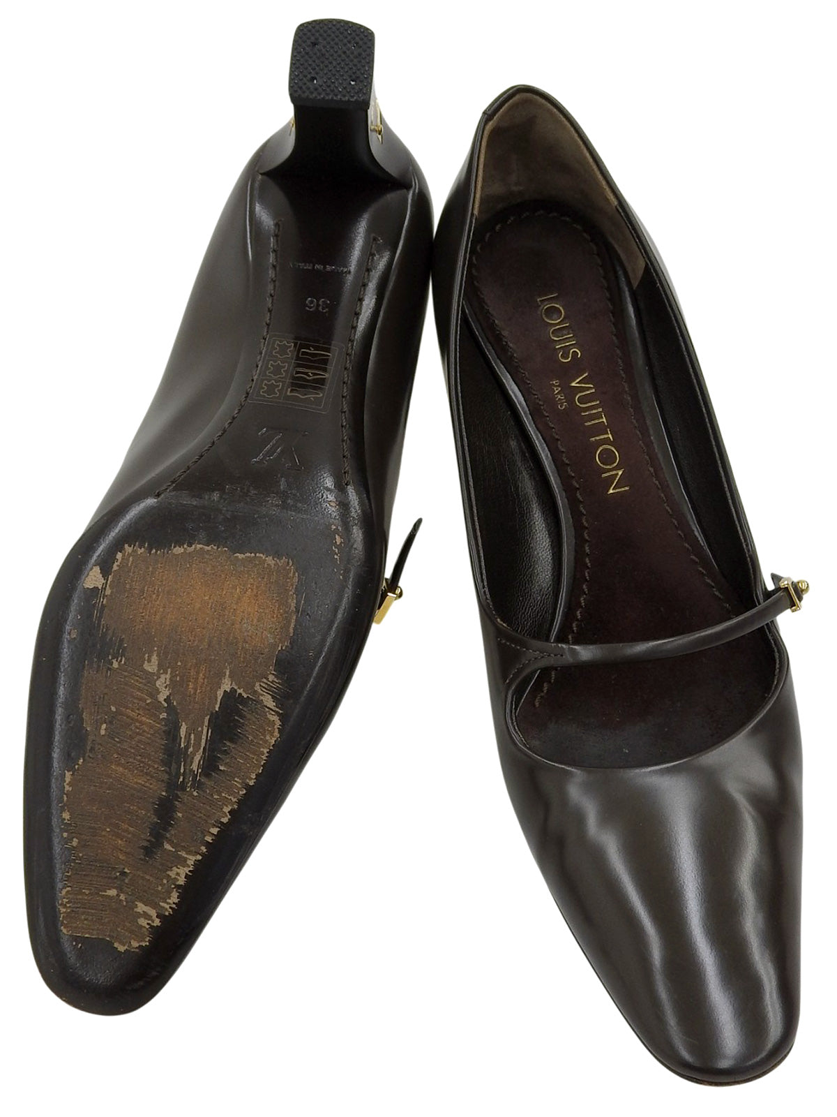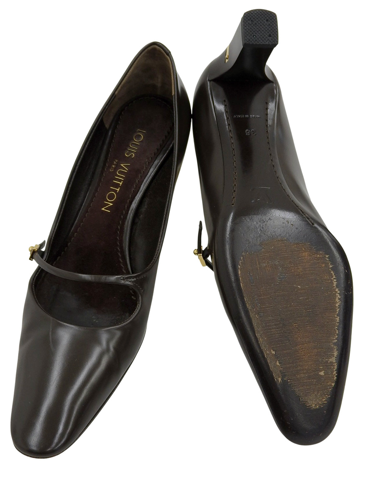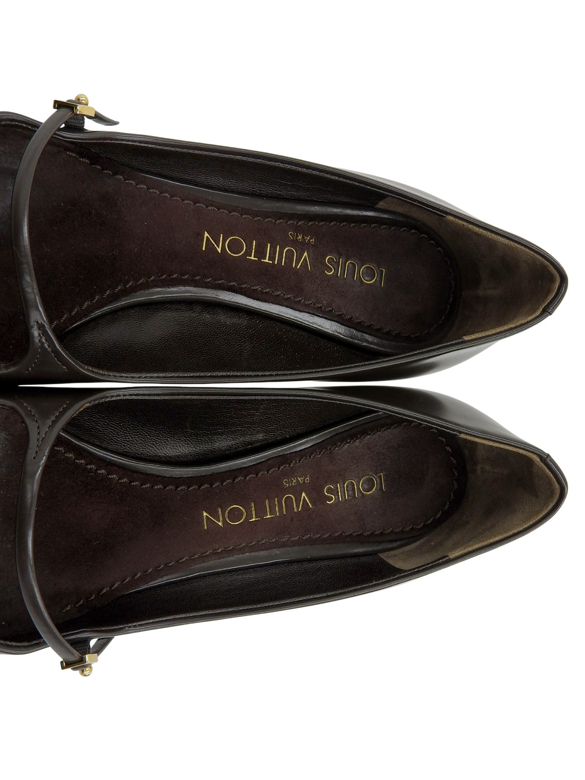 深棕色细带高跟鞋,鞋跟饰有品牌标志