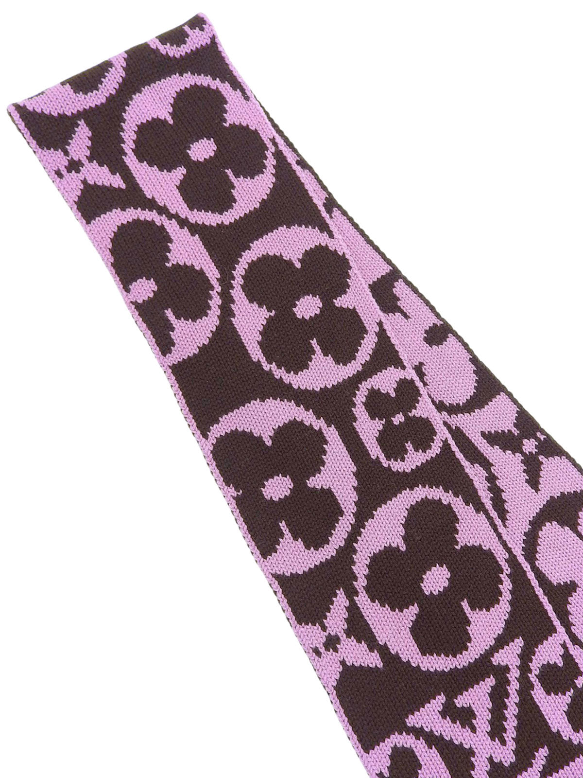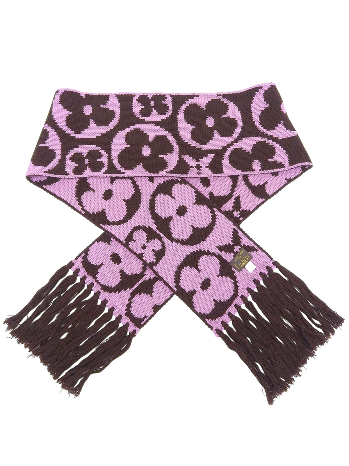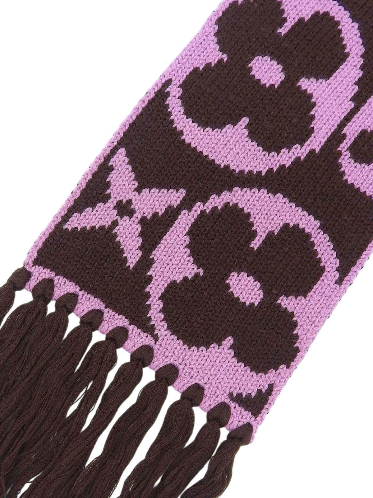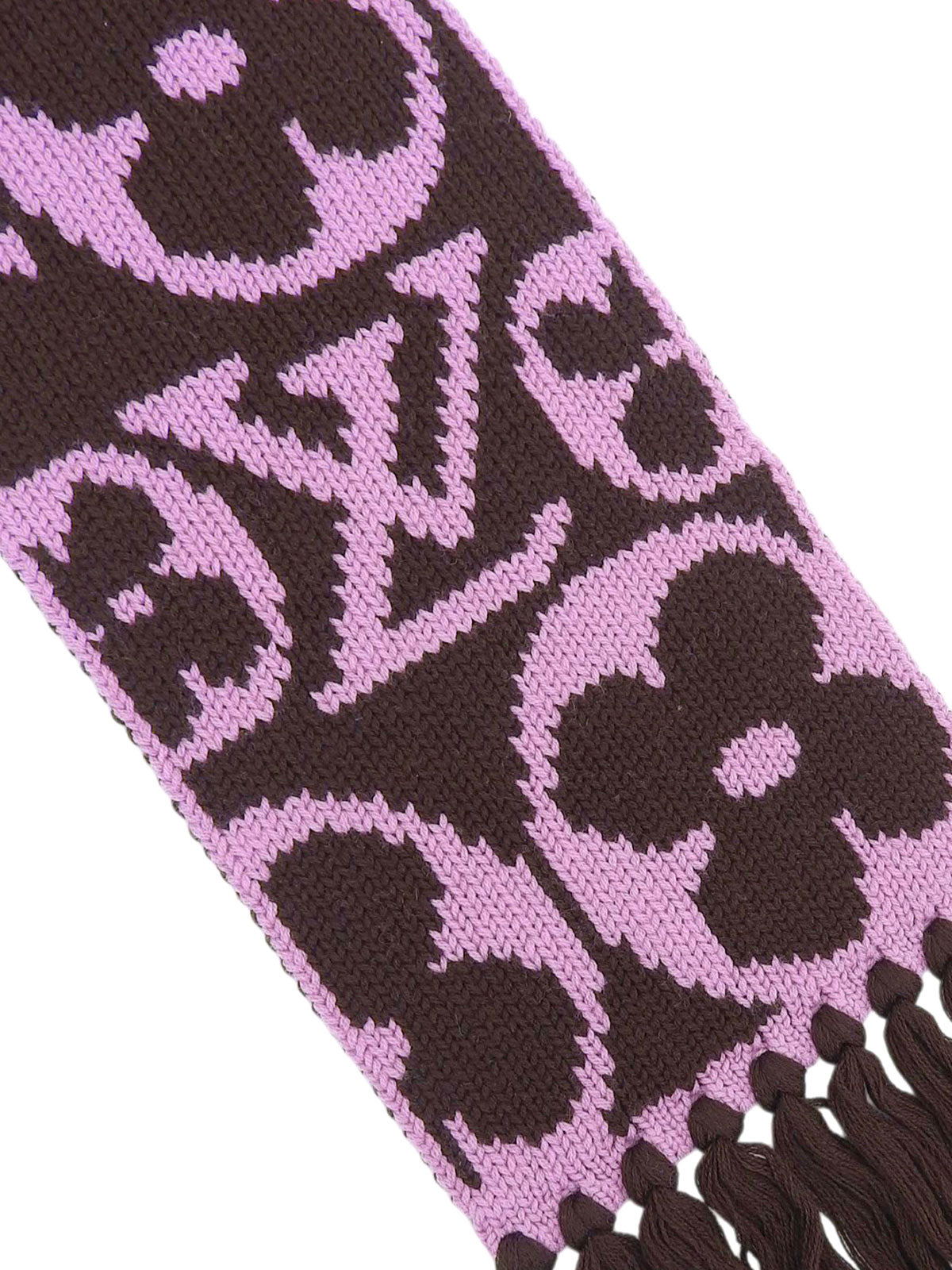 棕色/粉色羊毛字母图案围巾