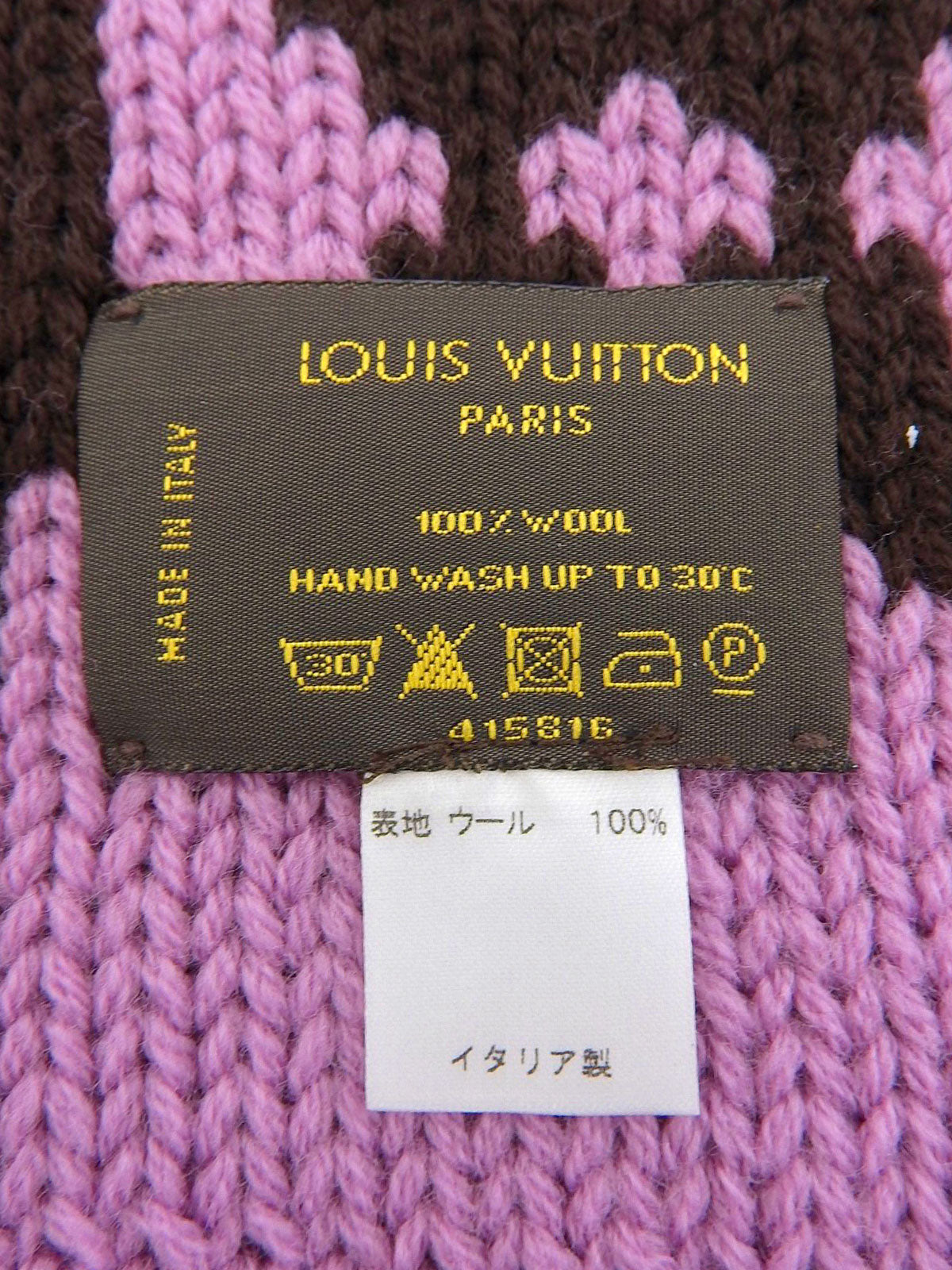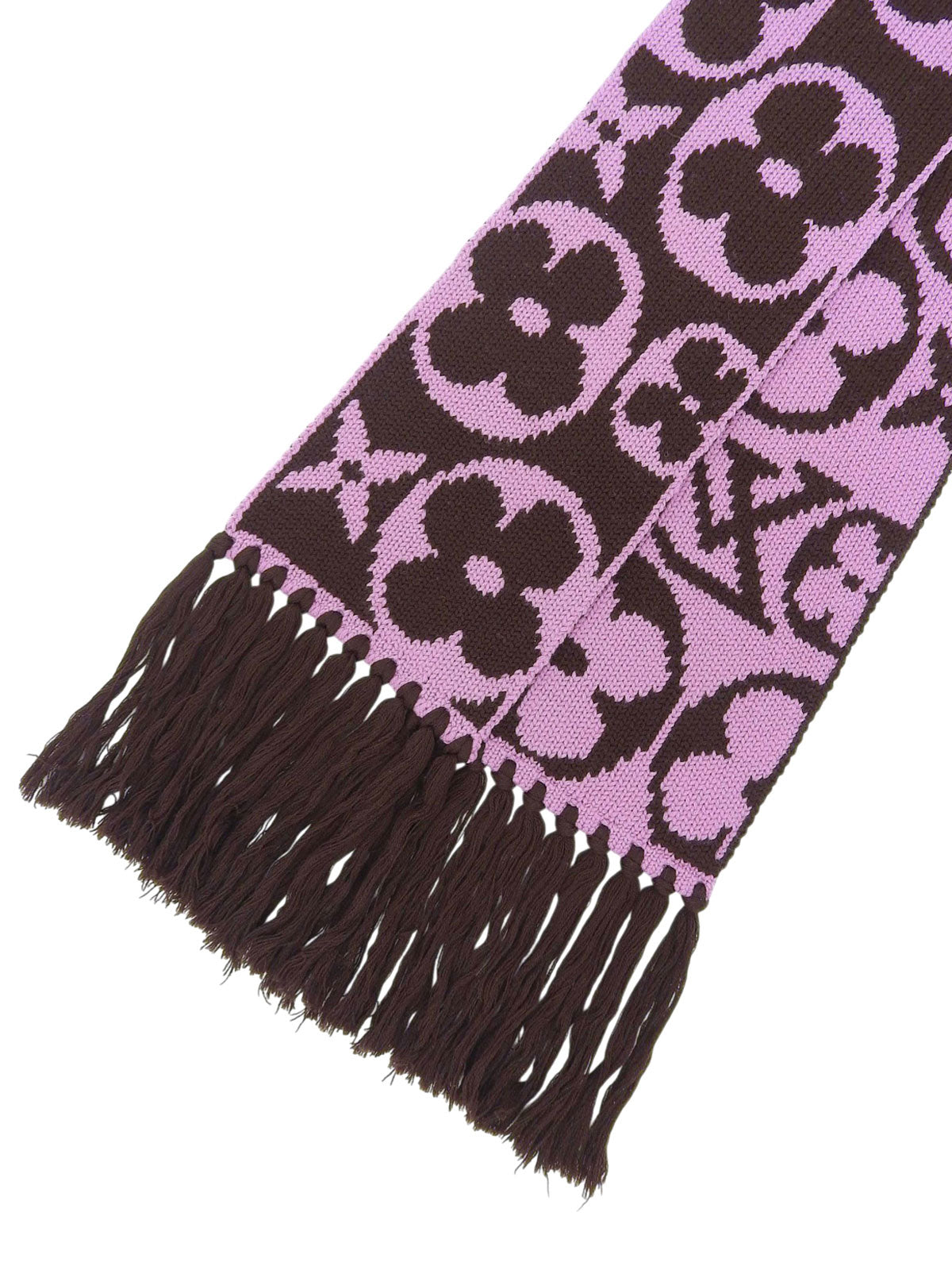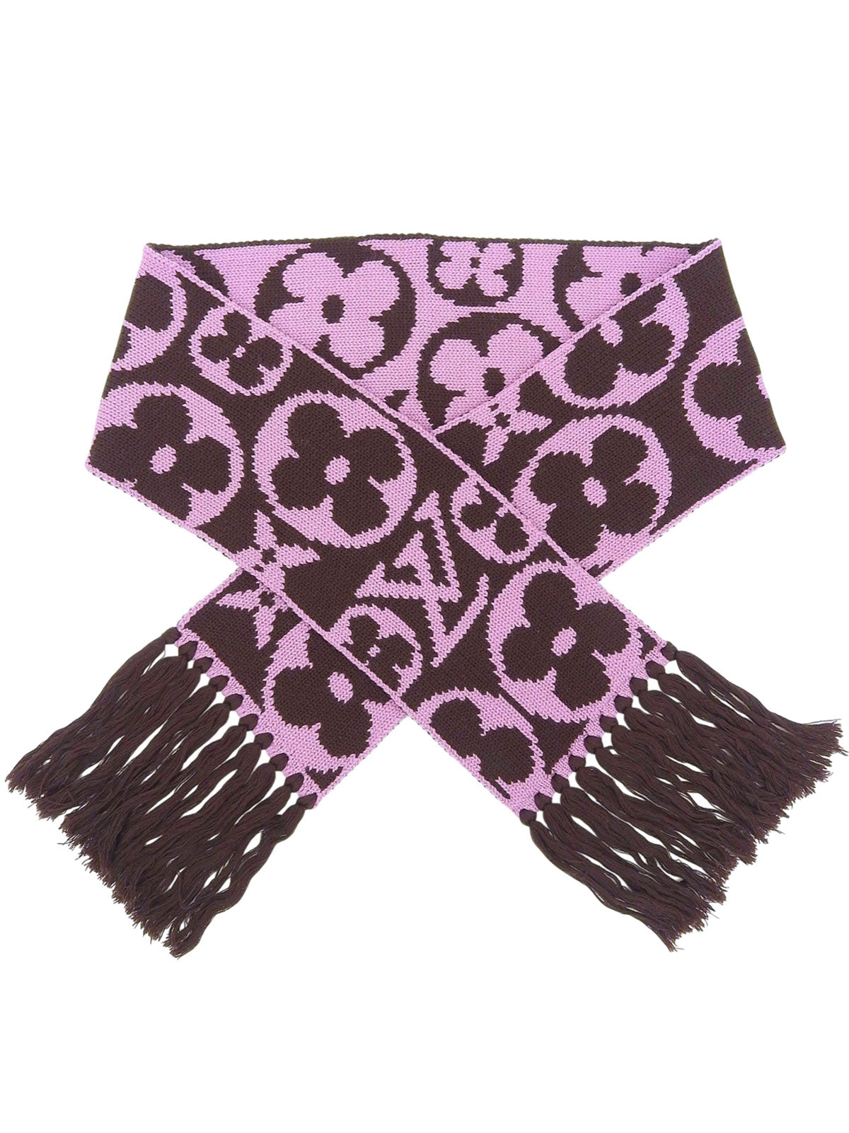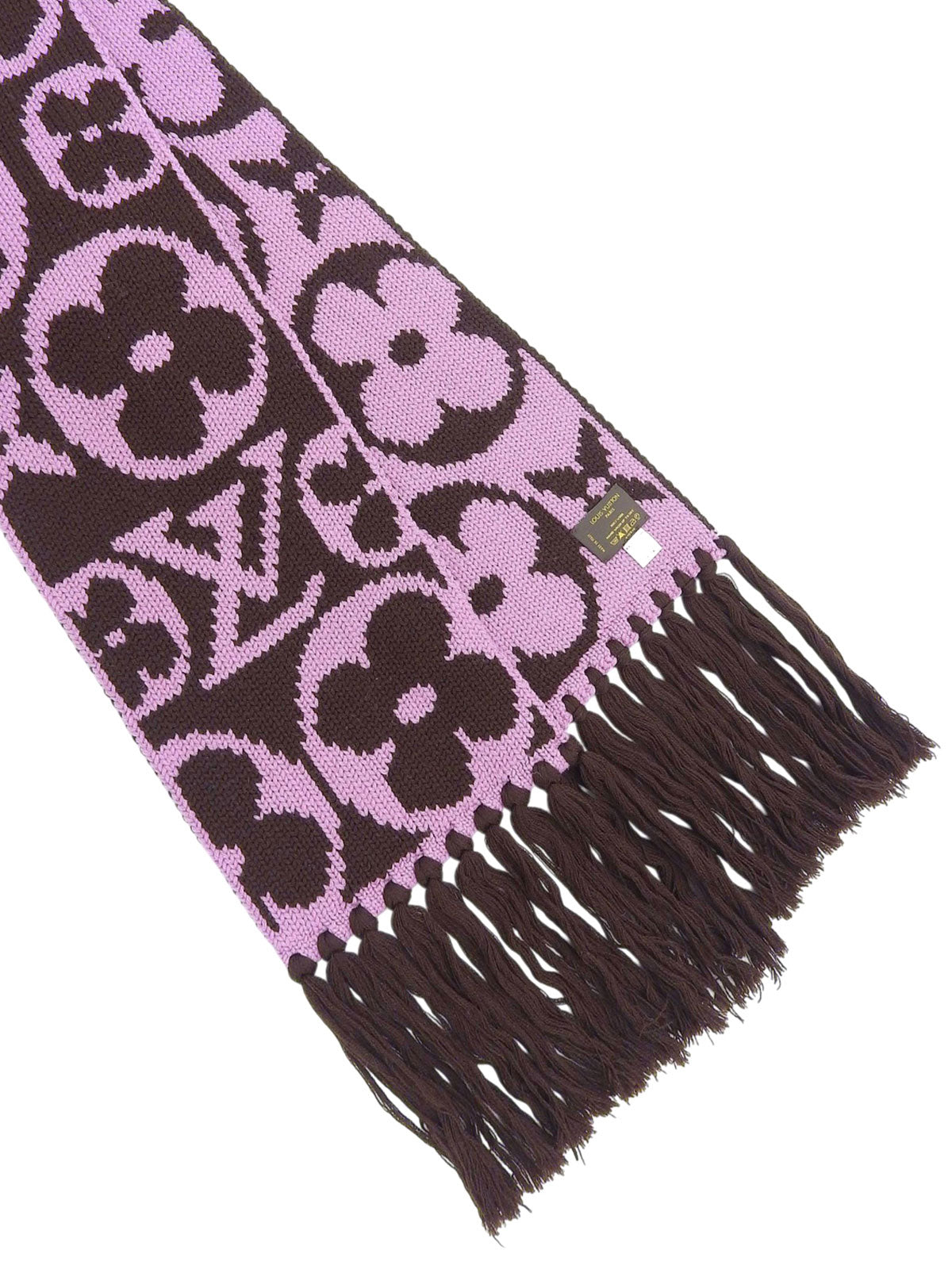 棕色/粉色羊毛字母图案围巾
