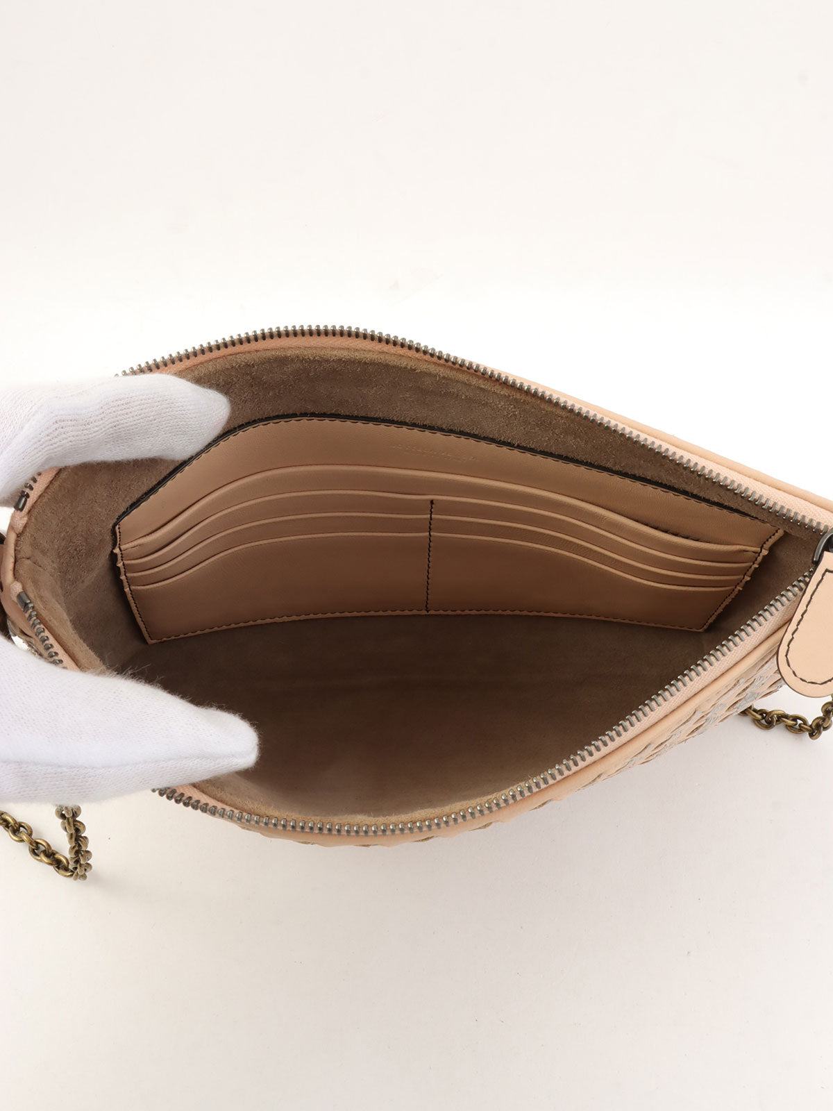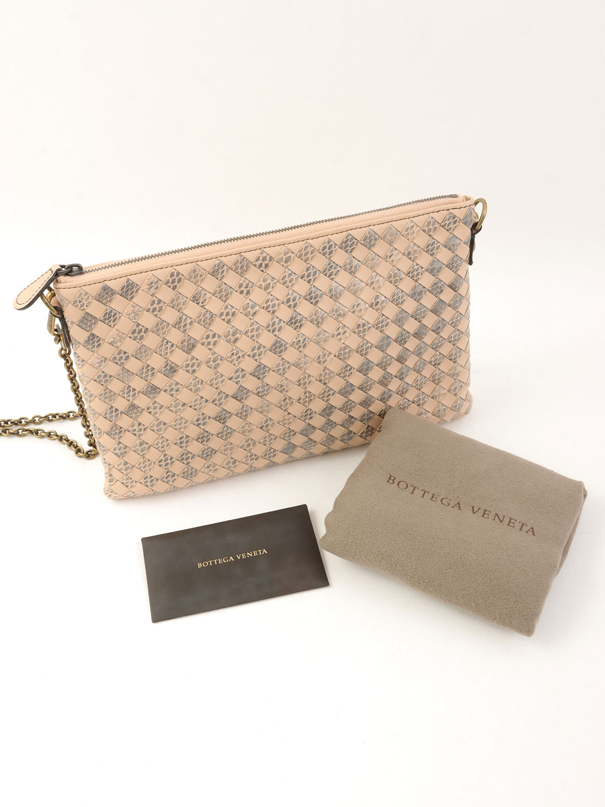 Intrecciato 链条钱包 粉色 米色