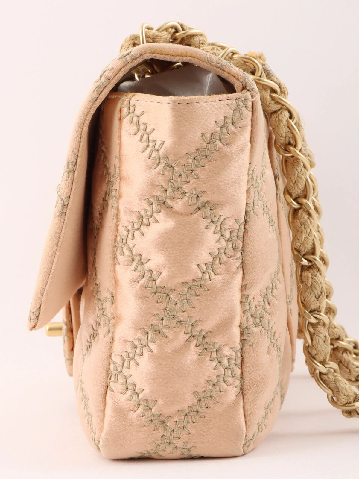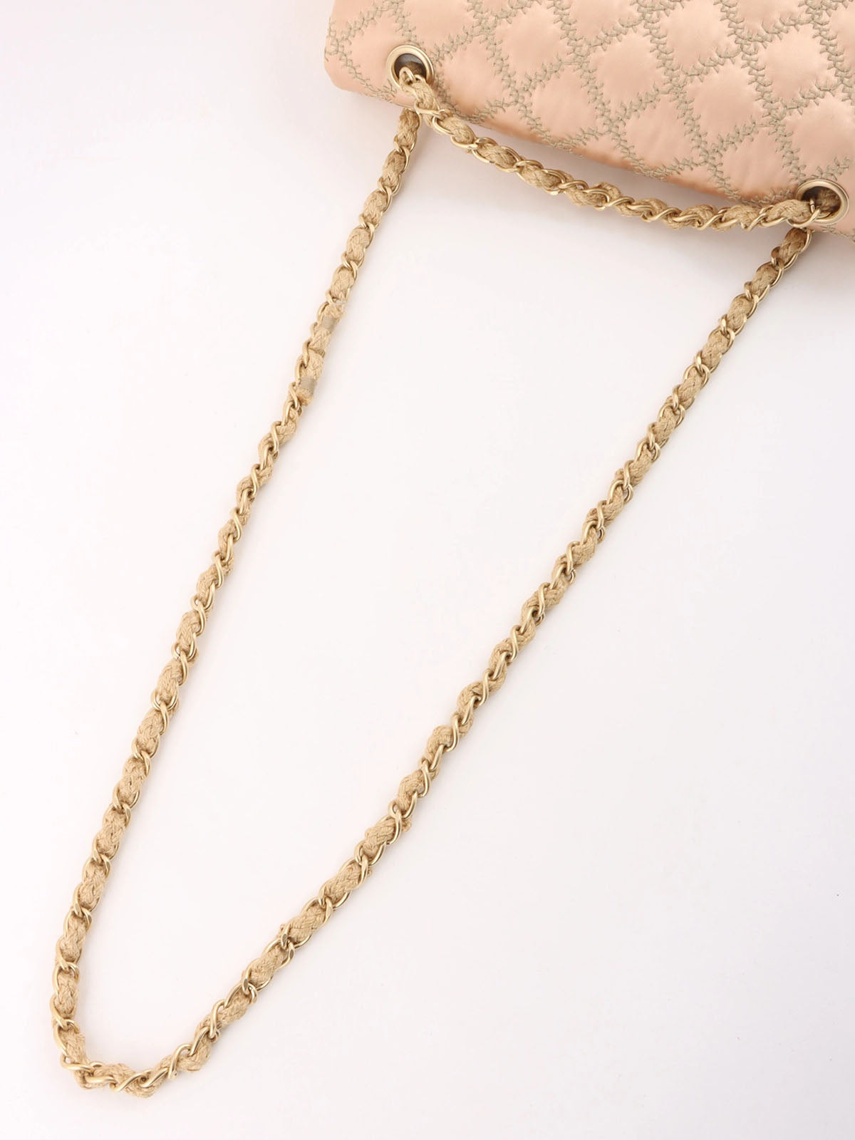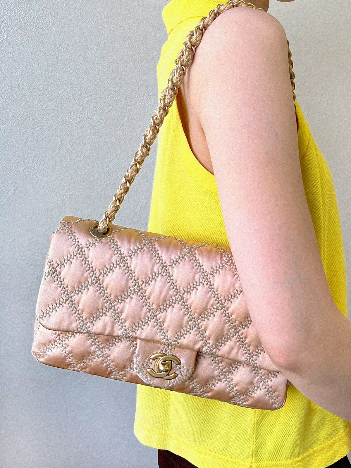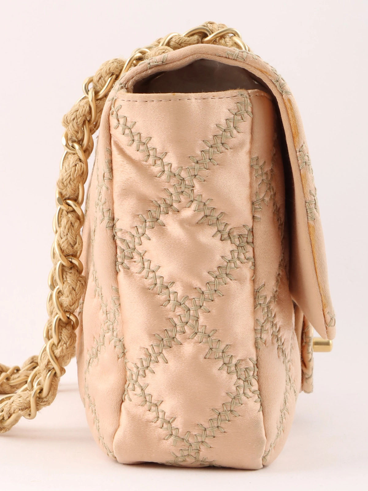 2009年左右丝绸缎CC旋锁链条单肩包(粉色/卡其色)