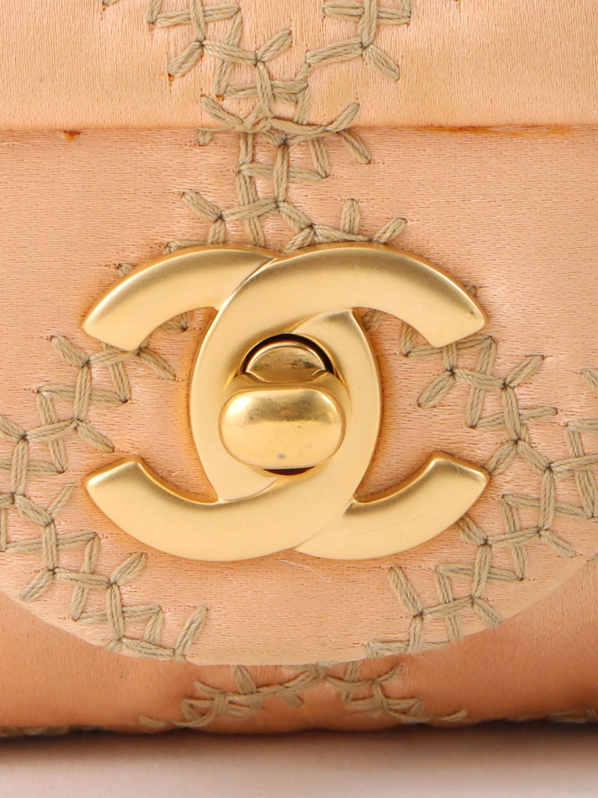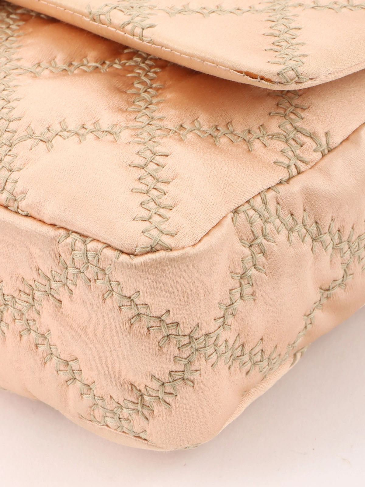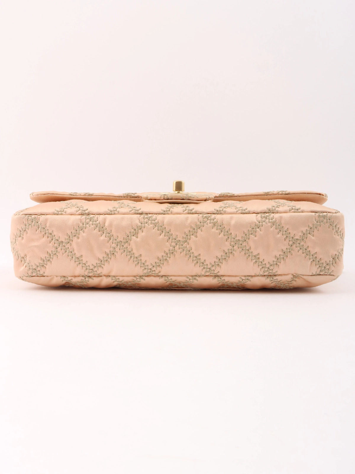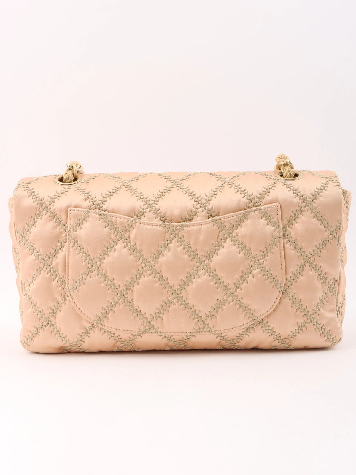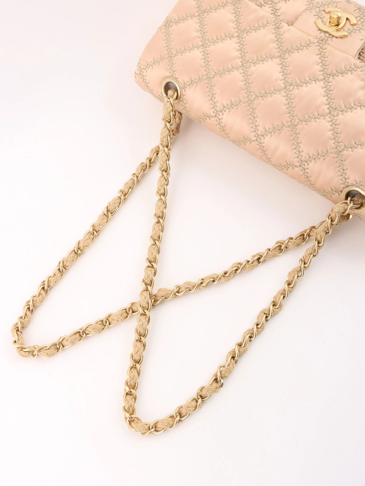 2009年左右丝绸缎CC旋锁链条单肩包(粉色/卡其色)