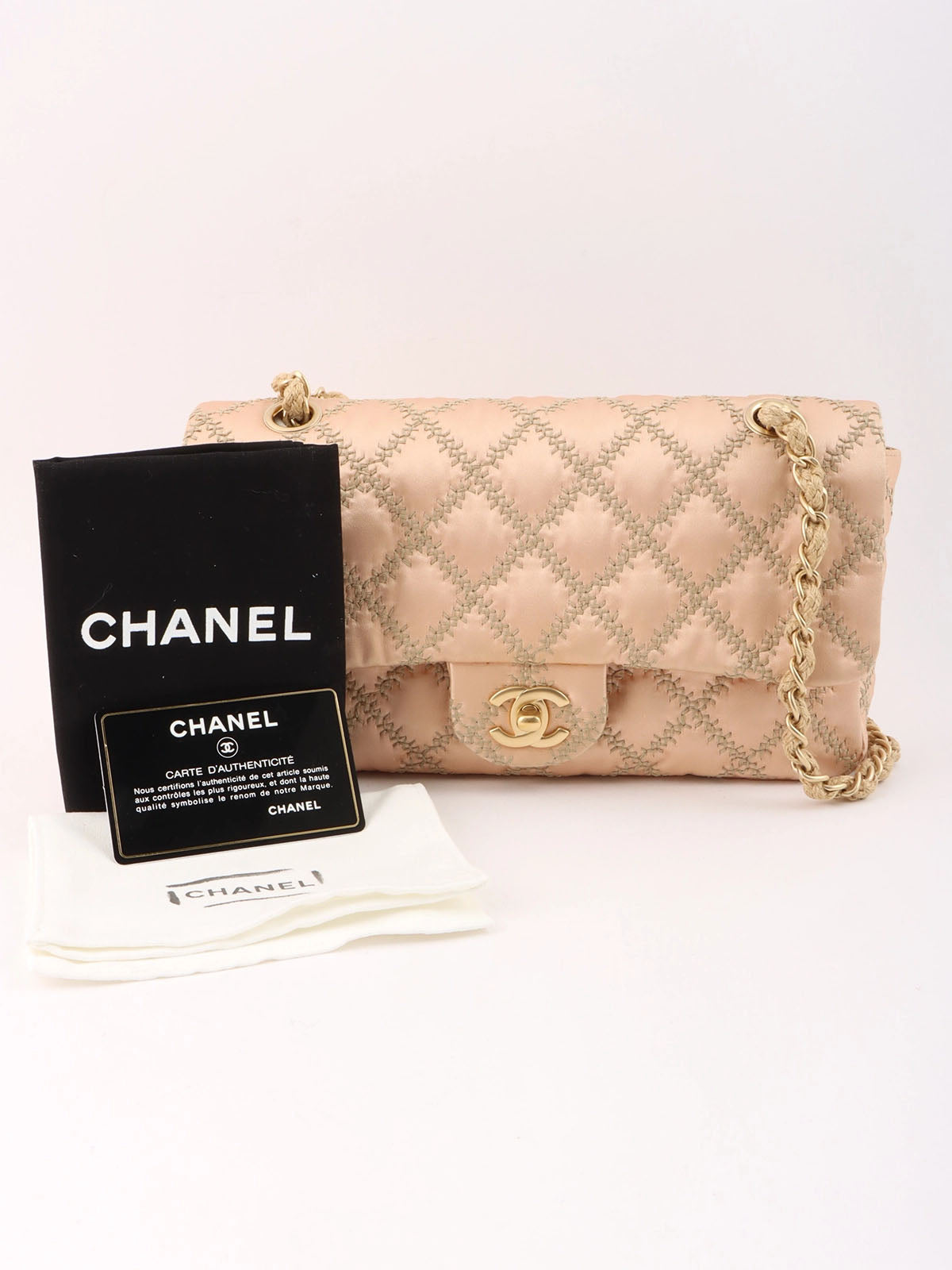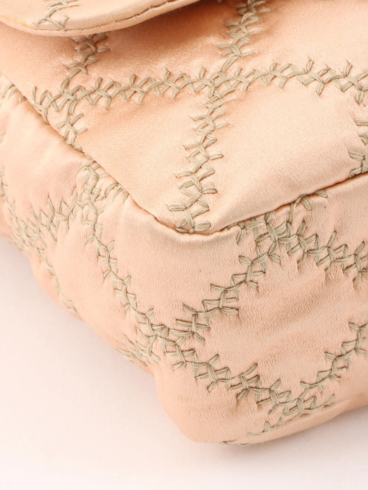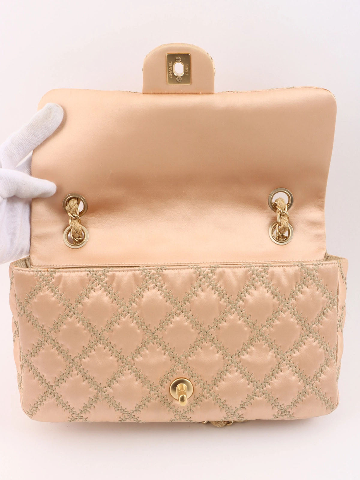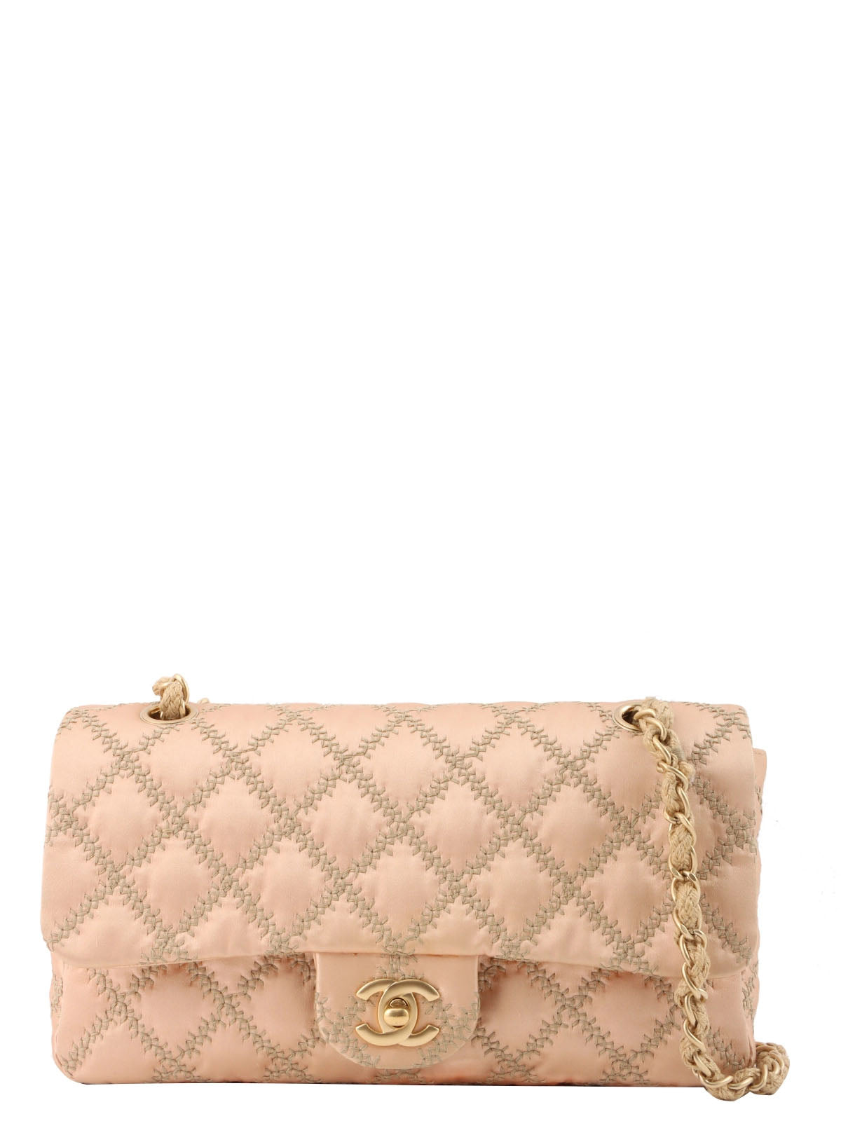 2009年左右丝绸缎CC旋锁链条单肩包(粉色/卡其色)