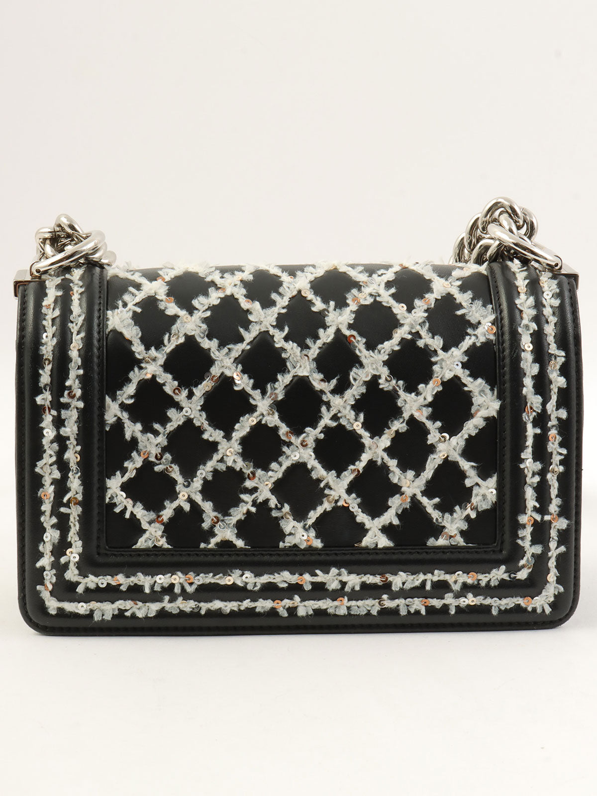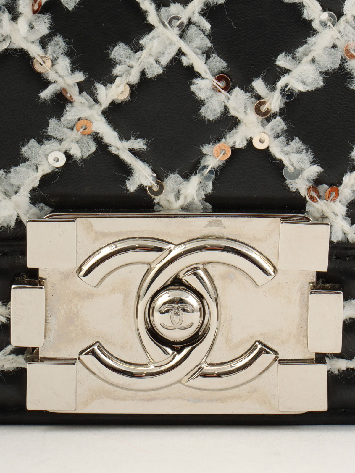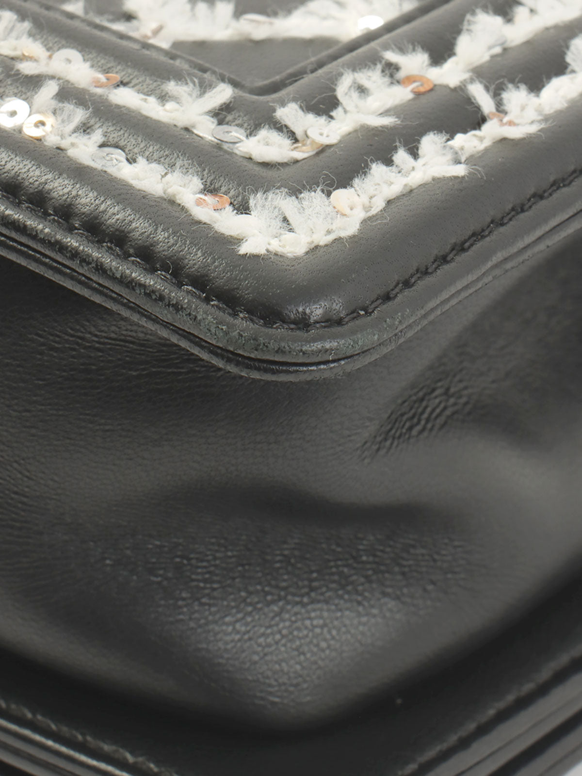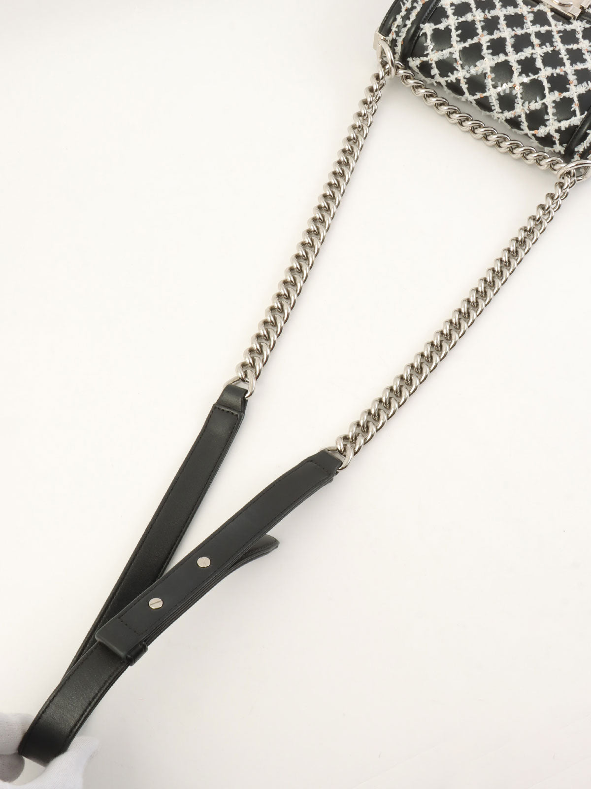 2017款香奈儿亮片链条单肩包,黑色/白色