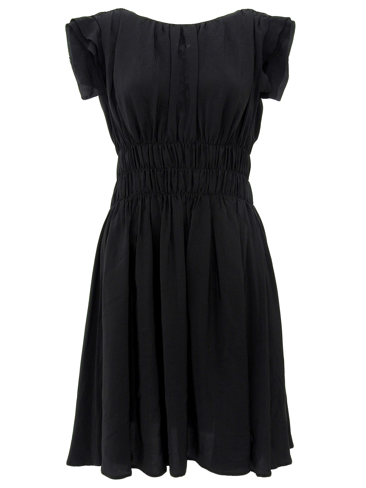 黑色丝绸无袖连衣裙