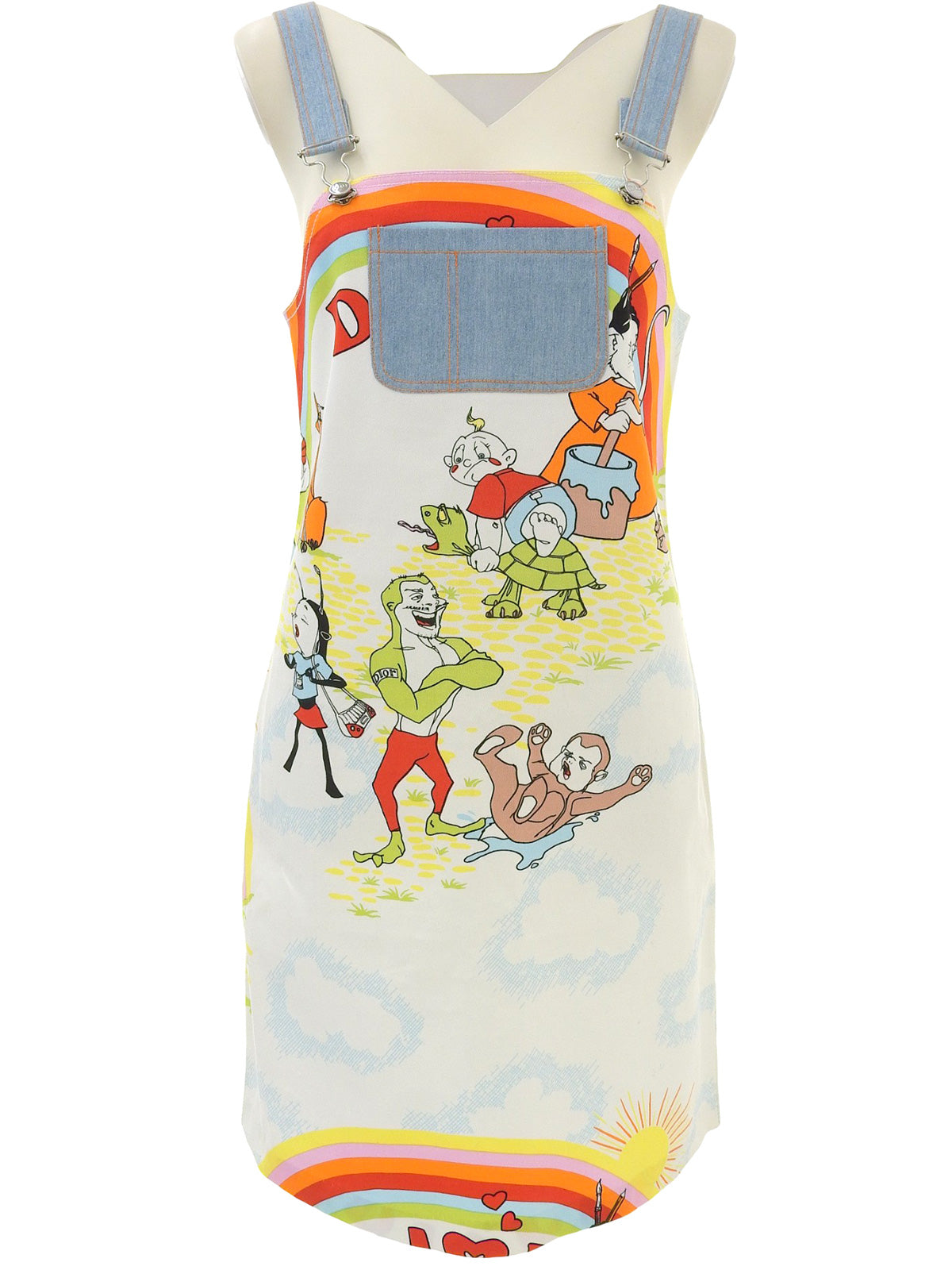 John Galliano 漫画印花连身裙,浅蓝色/多色
