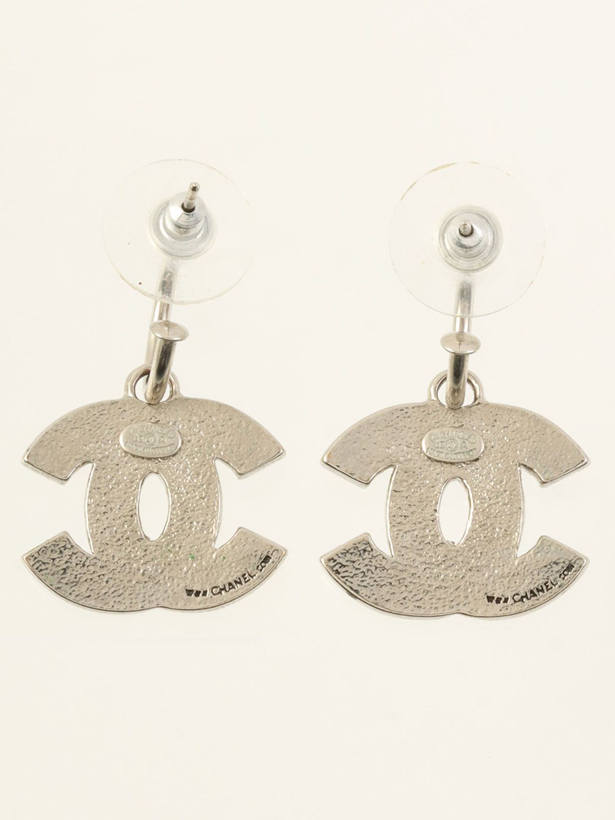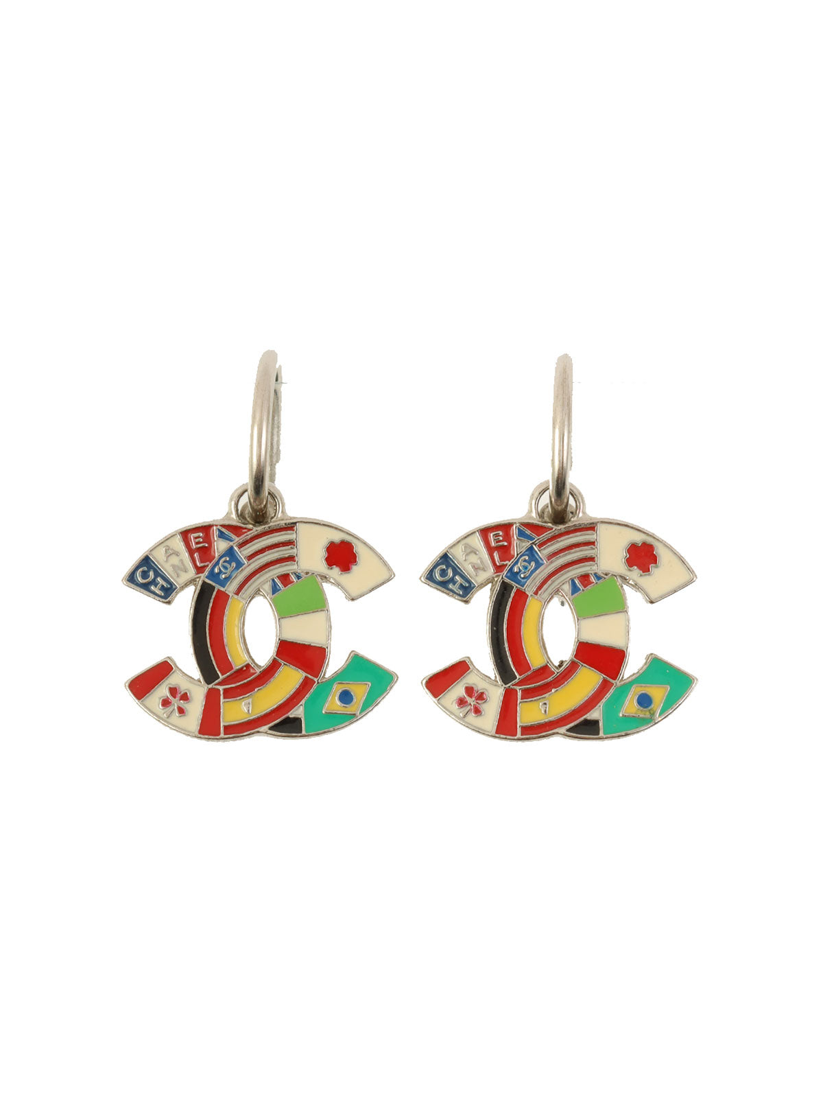 2005 CC 标志国旗摇摆耳环,银色/多色